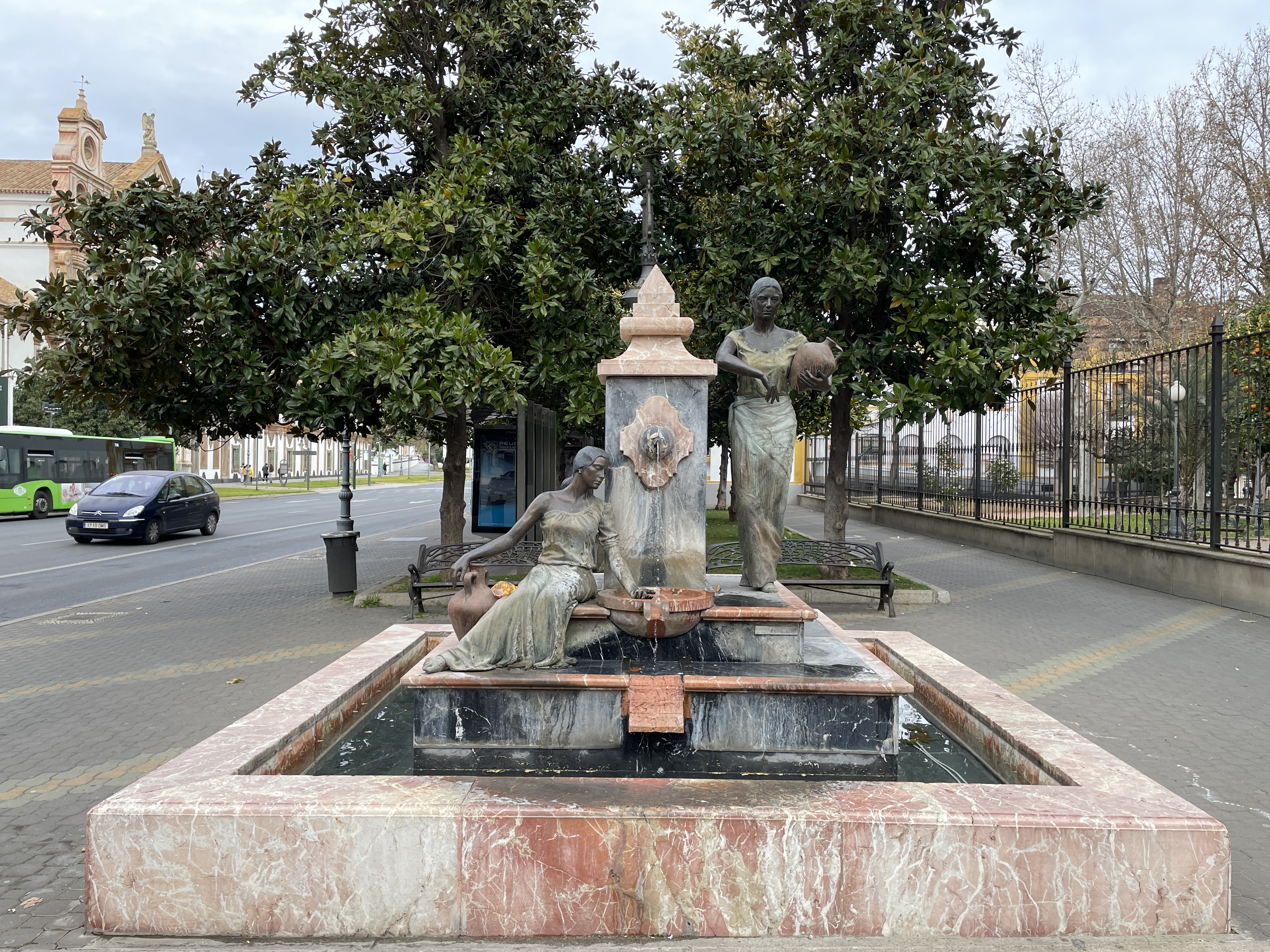 공원 입구 앞에 여인들의 동상과 분수대가 있었다.