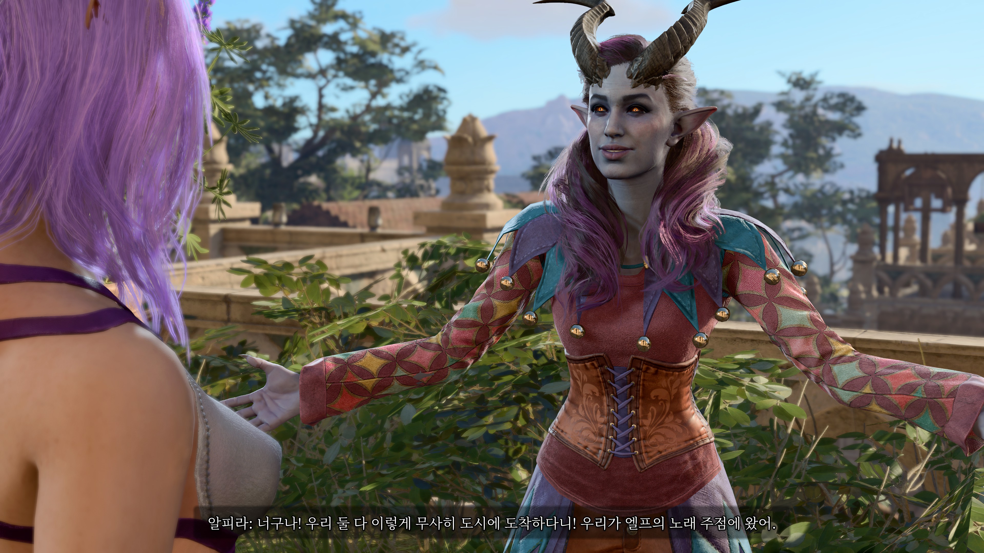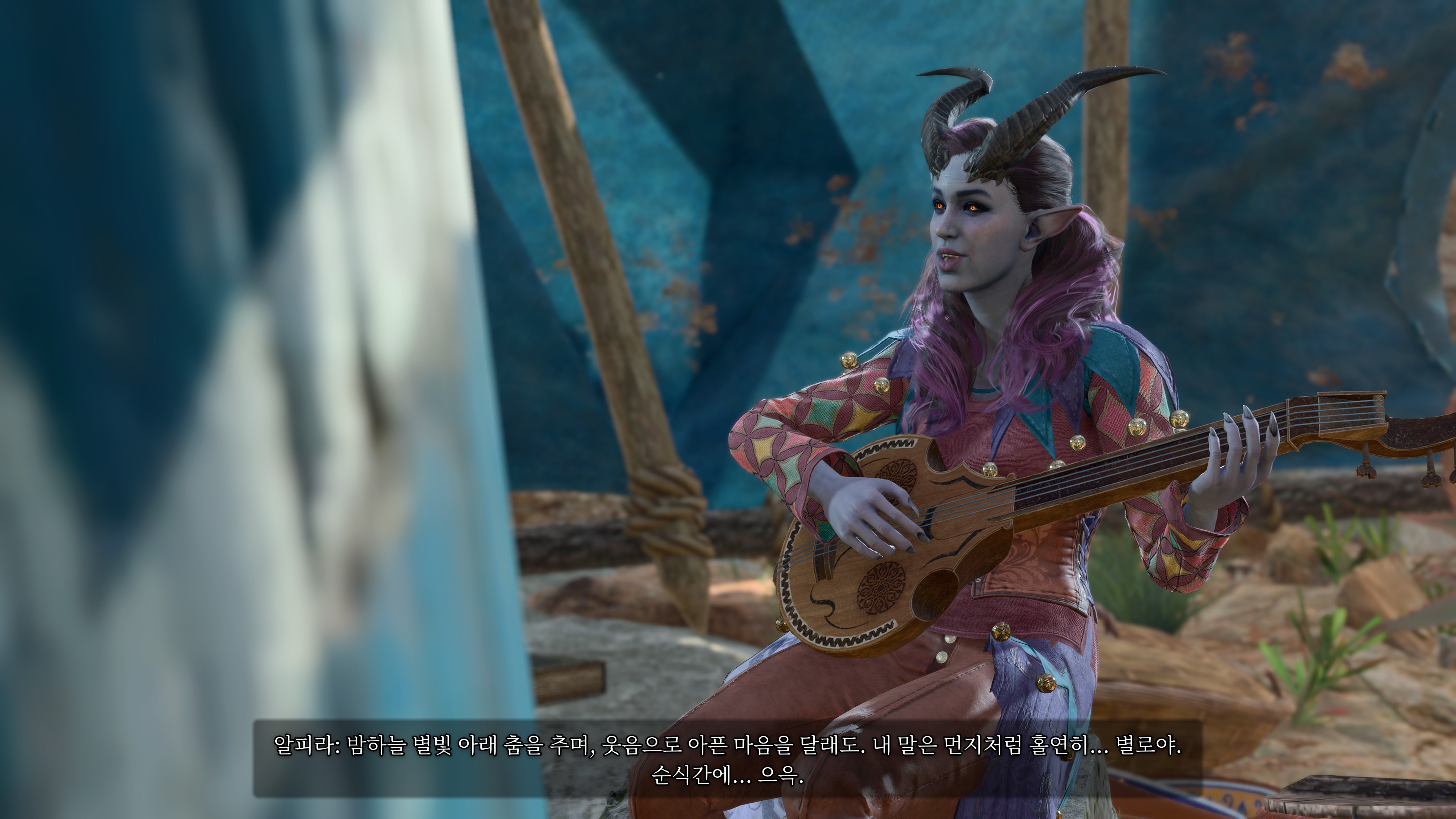 엘프의 노래 주점 옥상에 노래를 잘 부르던 티플링 알피라를 만나 이야기를 나눴다.