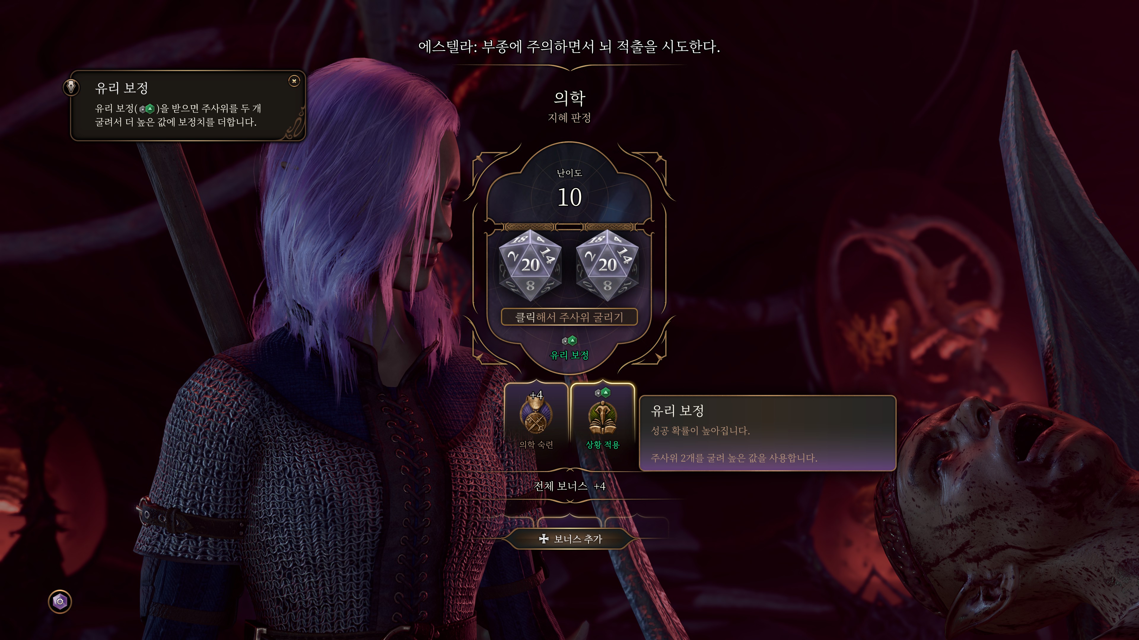 주사위 20이 뜨면 무조건 성공이긴 한데 크게 결과가 달라지지는 않았다.