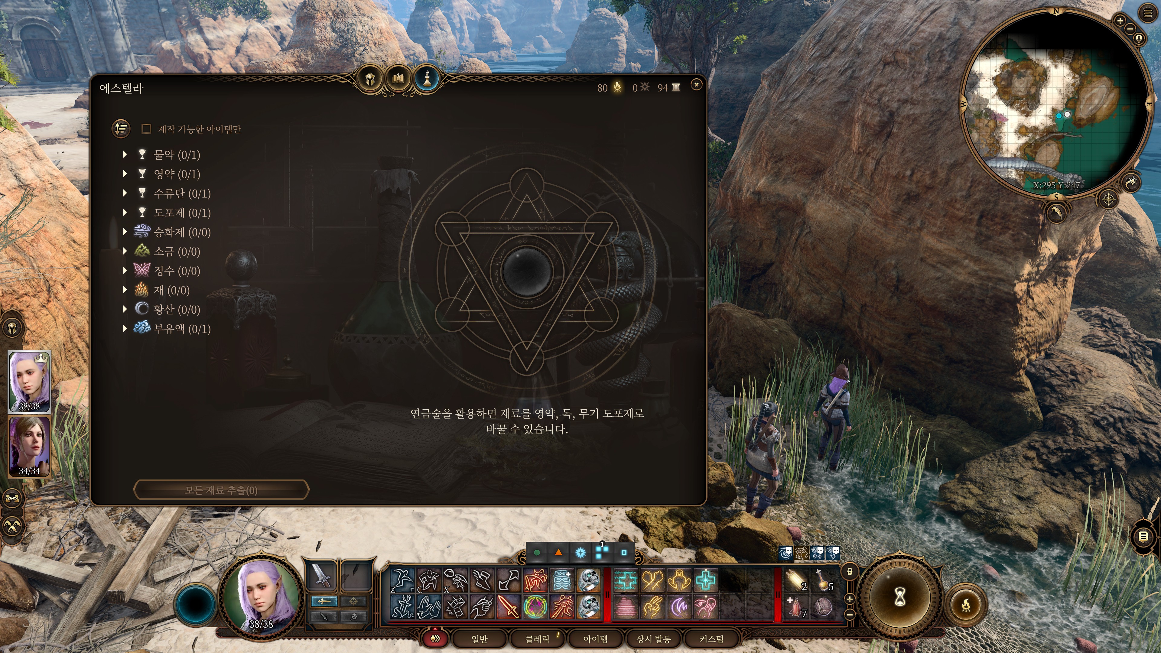 재료를 모으면 추출해서 물약을 제작할 수 있다.