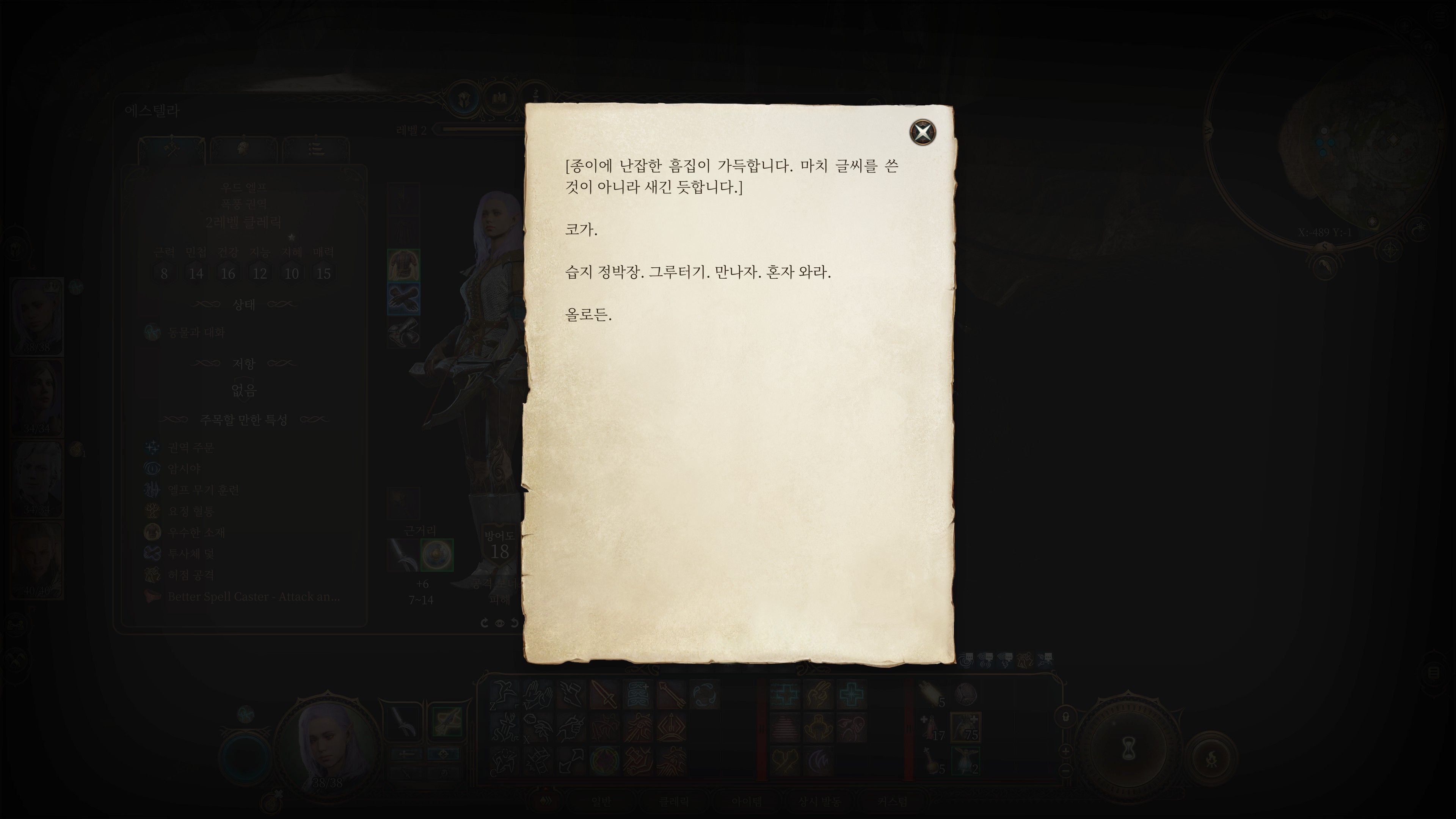 명작이라 그런가 재미는 있는데 다른 CRPG도 플레이해볼까 하는 마음이 들고 있다.