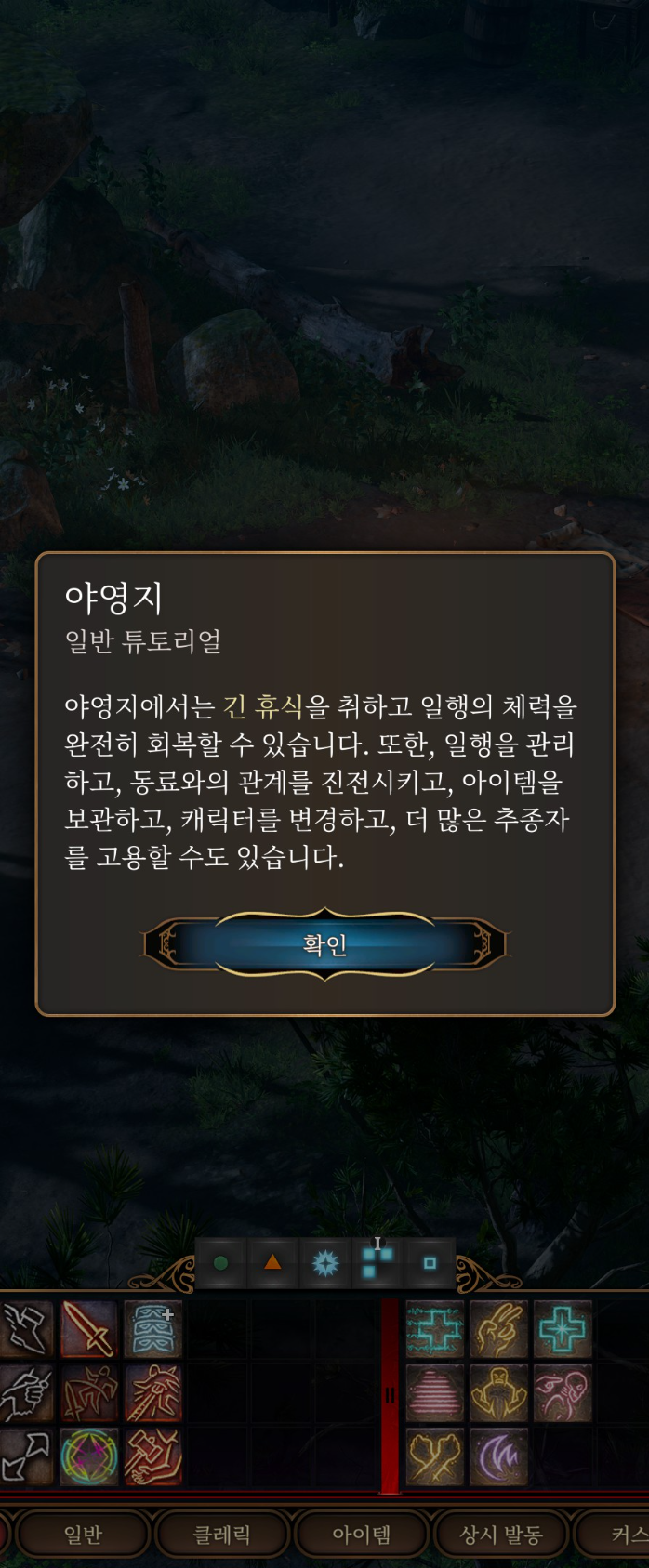 전투 2번 정도 하면 쓸 수 있는 마법 등이 거의 다 떨어지곤 하는데 야영지에서 편히 쉬면 된다.