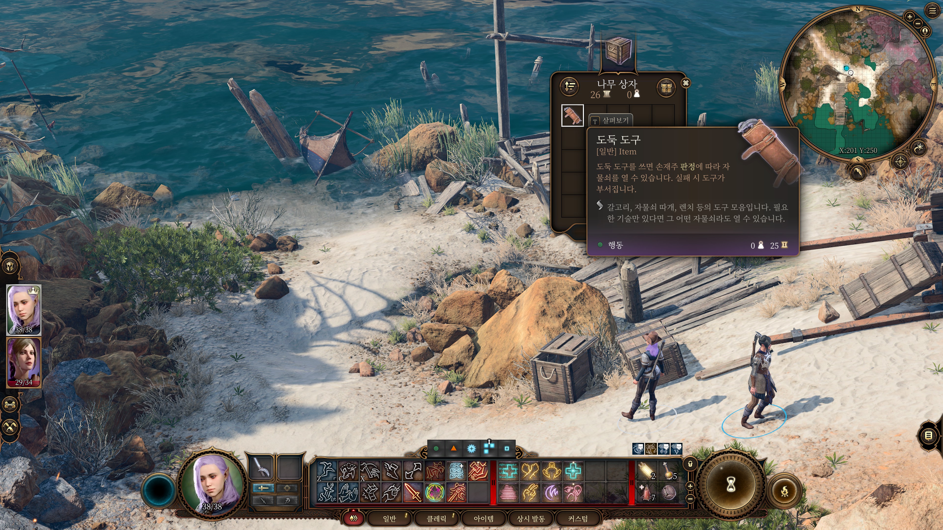 상자나 문이 잠겨있으면 도둑 도구를 활용해서 열 수도 있다.