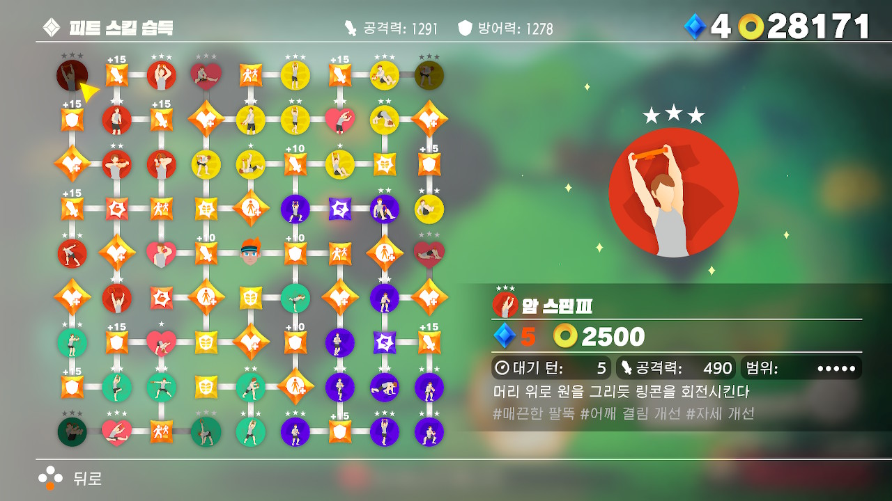 쫄따구들이 많이 나와서 범위가 넓은 스킬들을 위주로 먼저 운동을 했다.