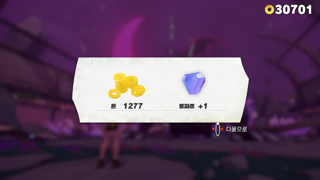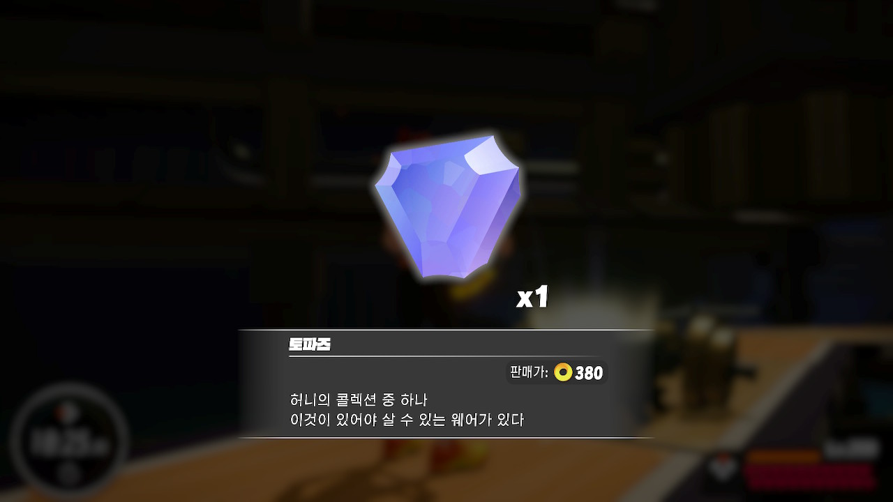 장비를 구매하는데 필요한 재료, 토파즈를 획득했다.