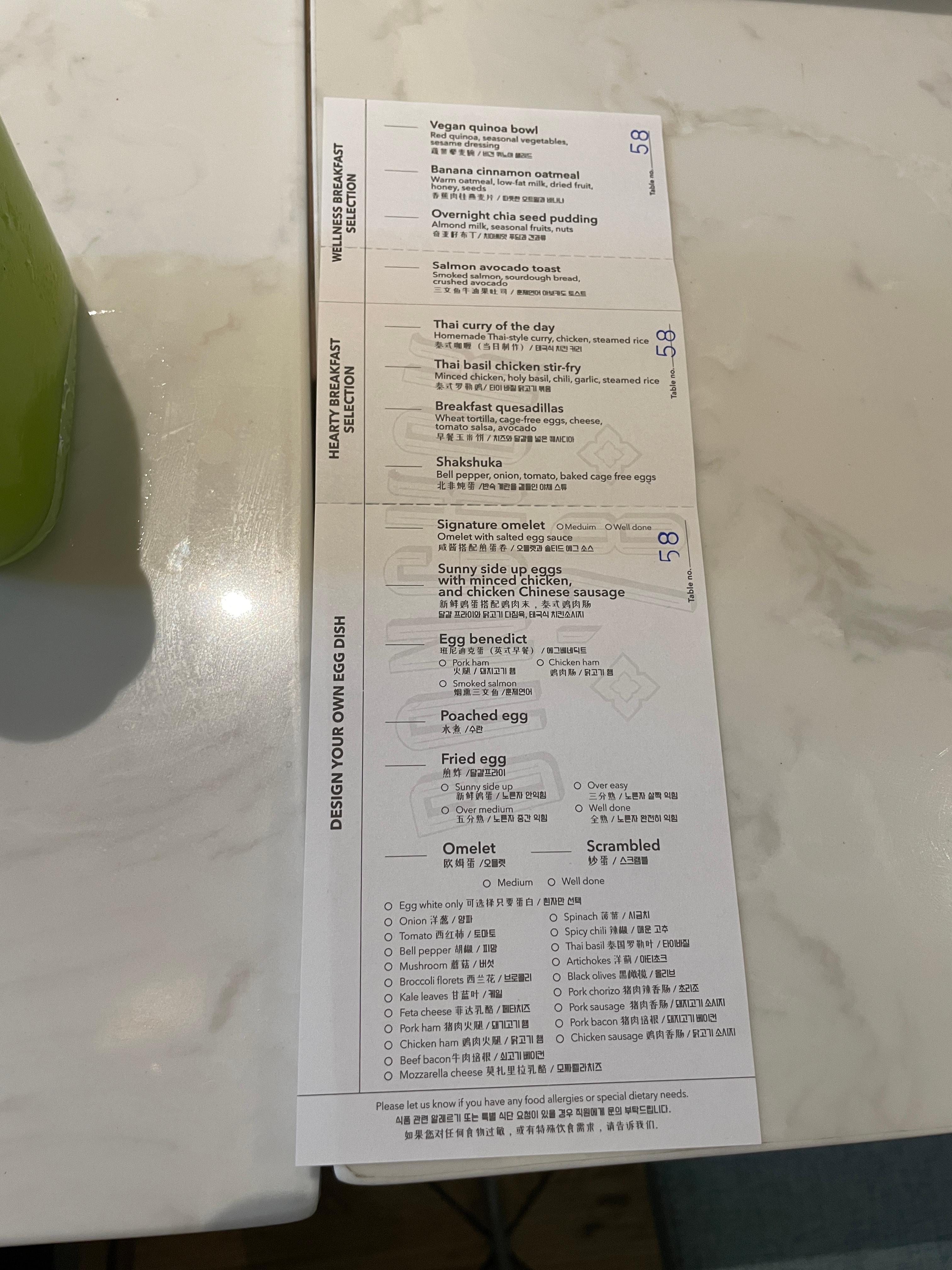 테이블에 착석하면 종이가 있는데 원하는 메뉴들을 골라서 놔두면 서버가 가져가서 나중에 음식을 가져다주셨다.