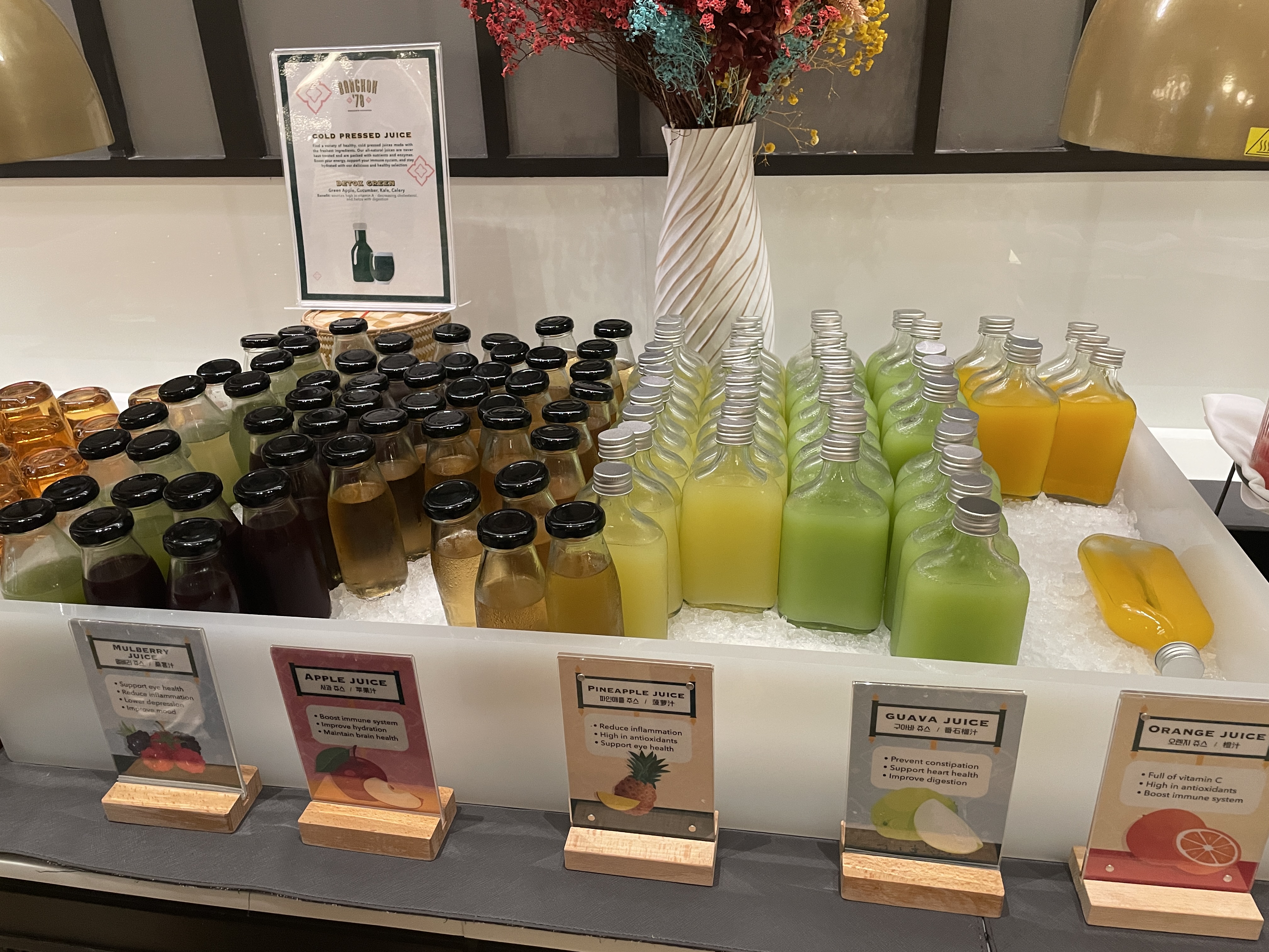 다양한 주스류들이 정리되어 있다.