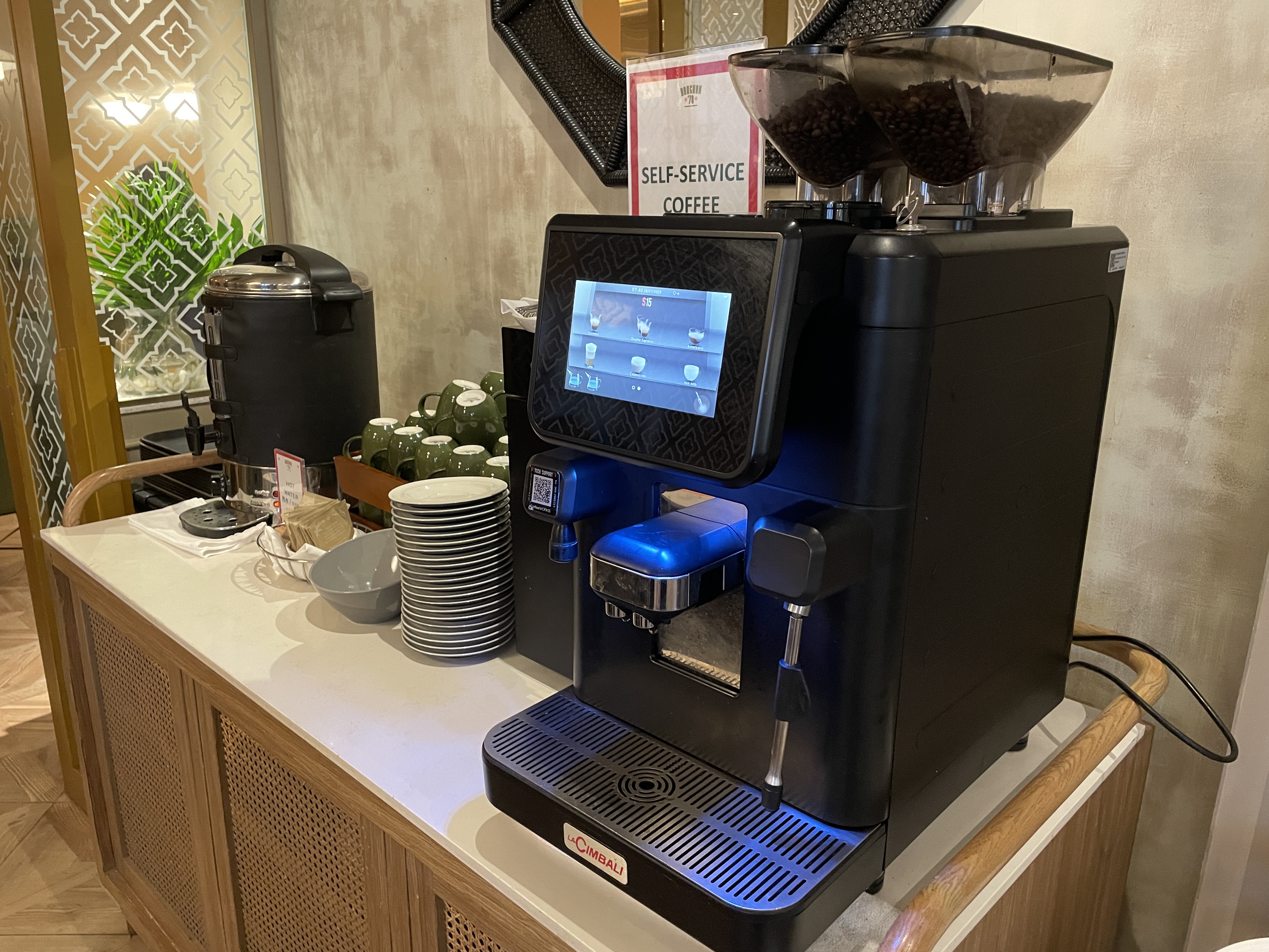 커피 머신으로 커피를 마실 수도 있고, 입구 쪽에서 음료를 주문해서 받거나 테이블에 앉았을 때, 따로 주문을 할 수도 있다.