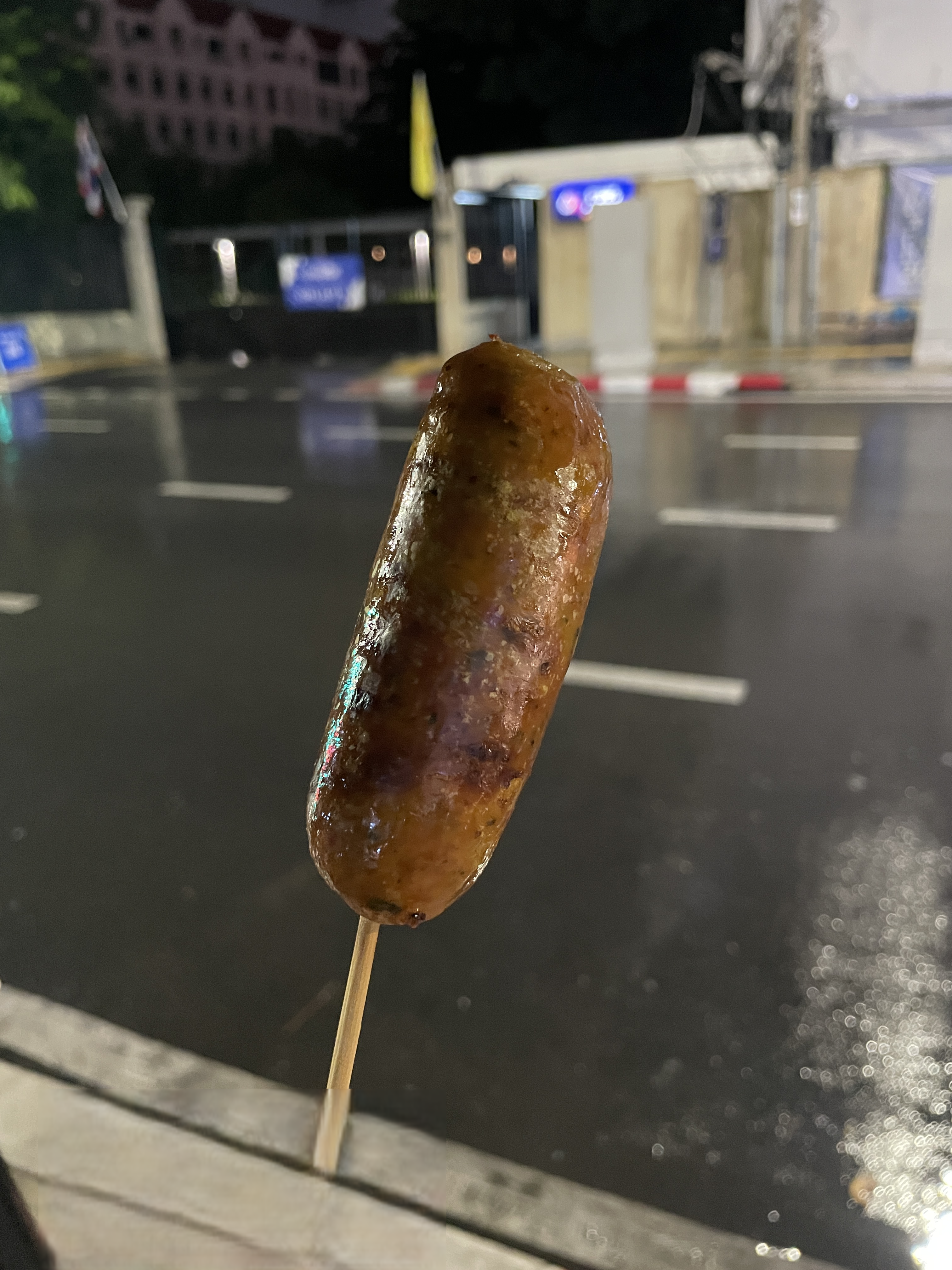 길에서 소시지를 구워서 파는 게 있어서 하나 사 먹었다.