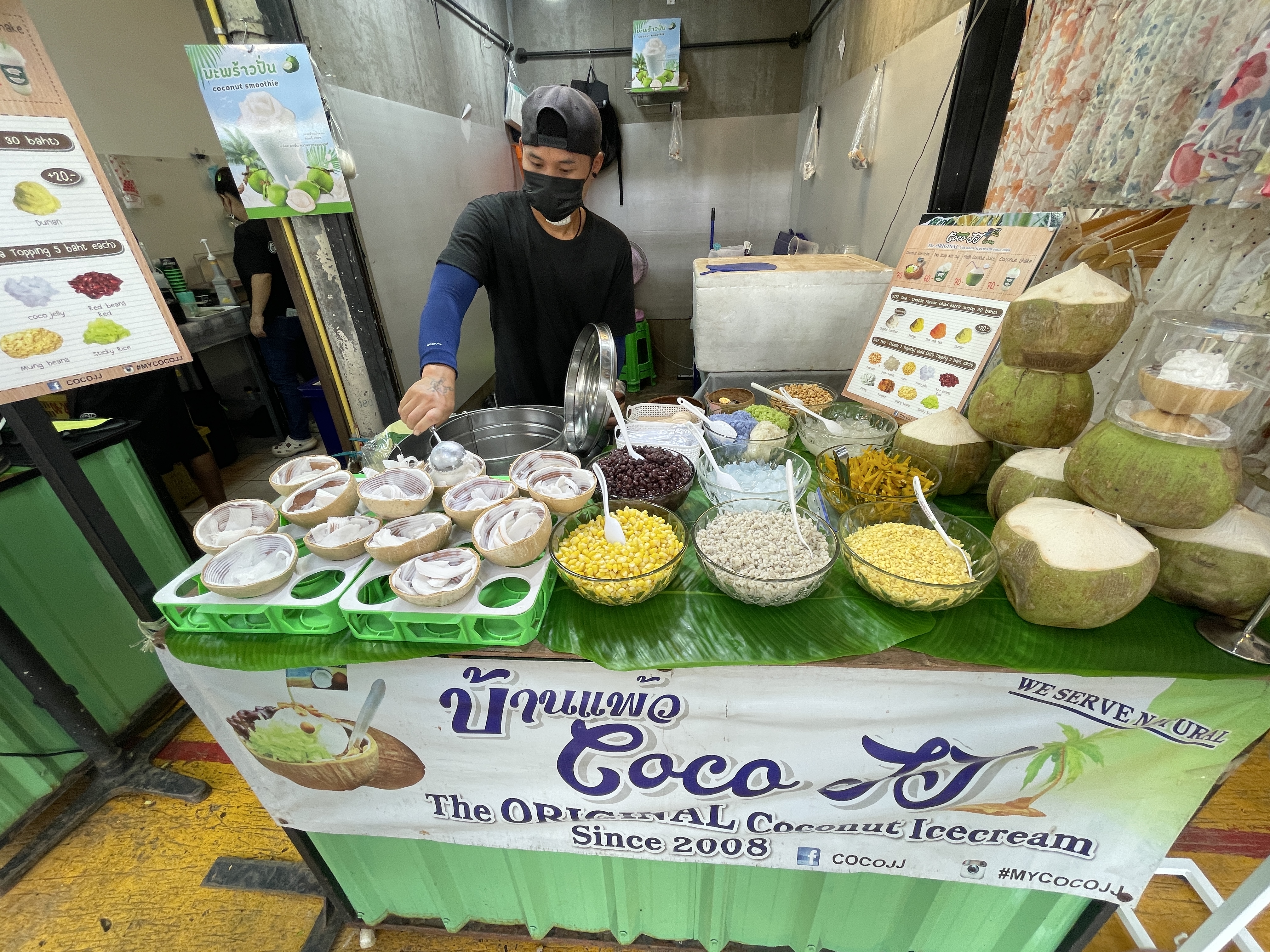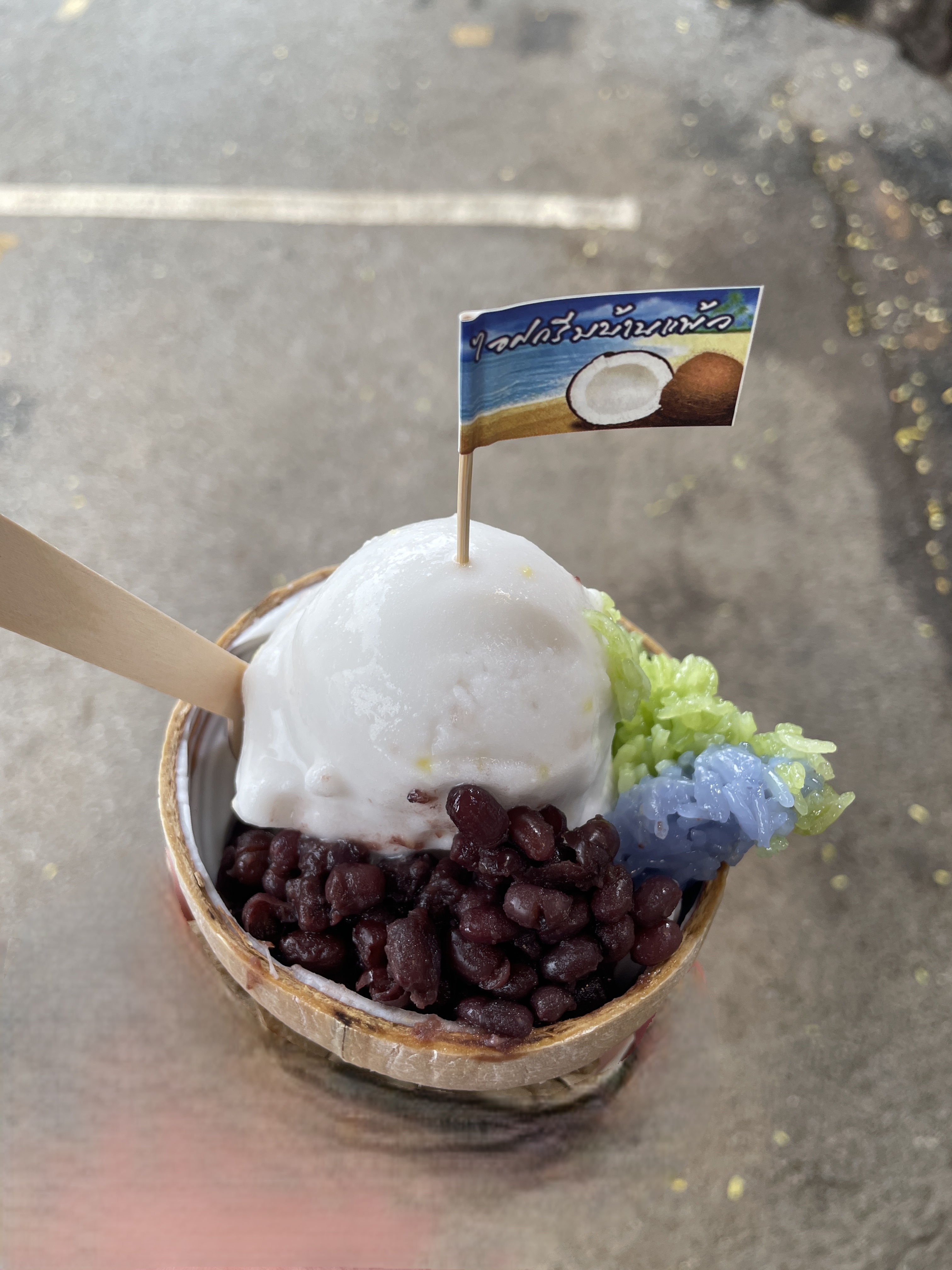 코코넛 아이스크림에 팥, 찹쌀을 올려서 먹었다.
