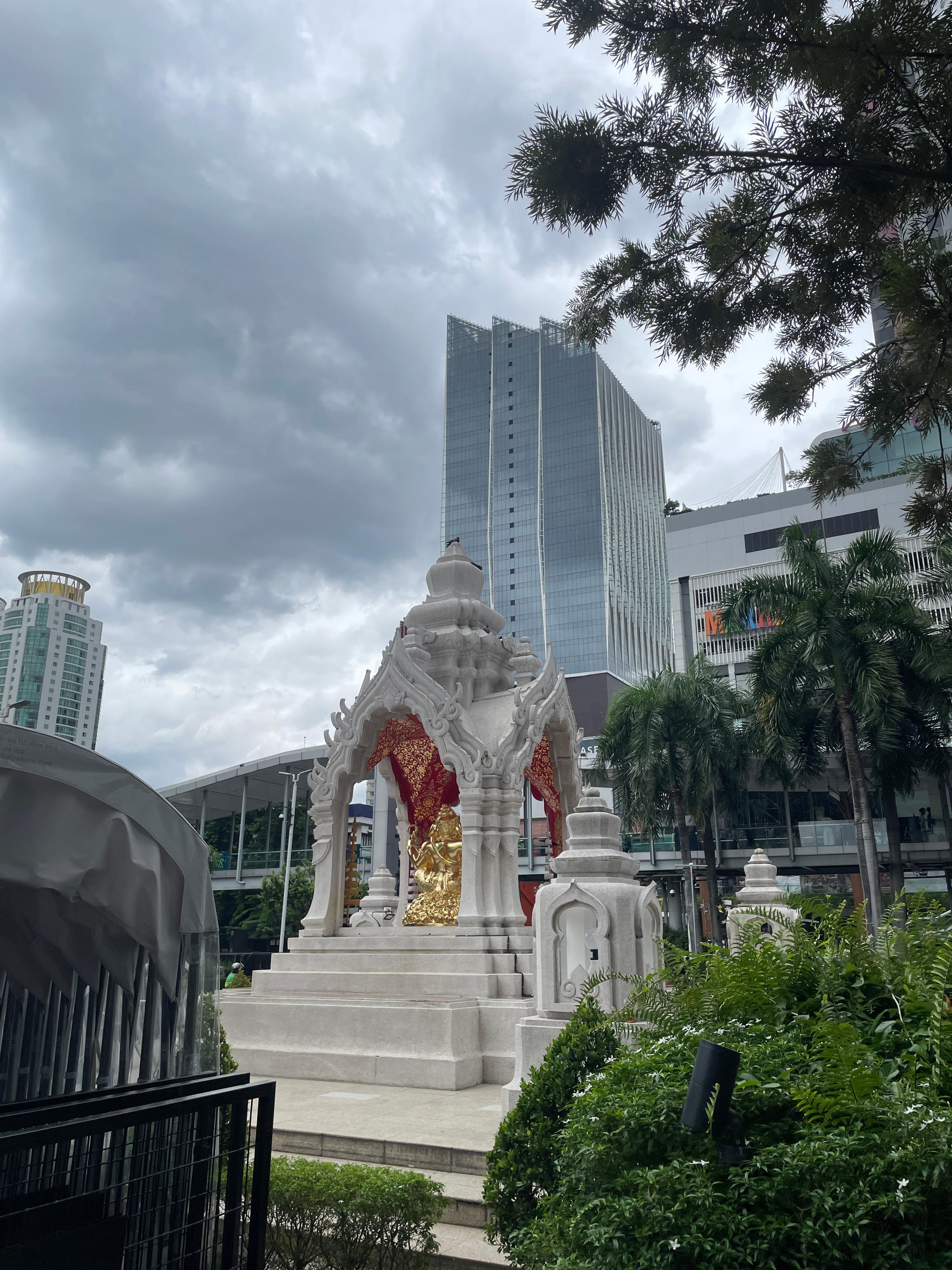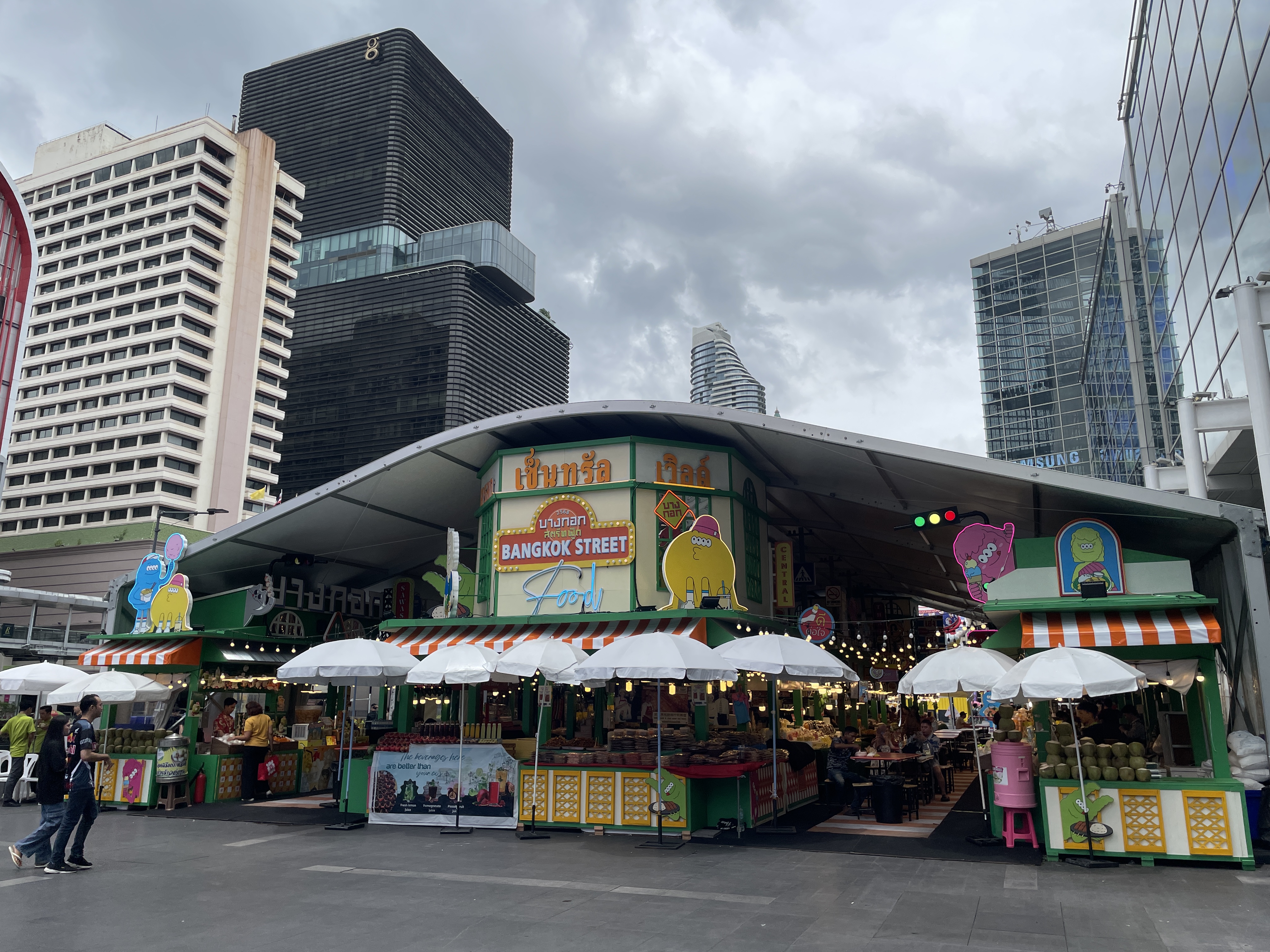앞에 조형물도 있고, 방콕 길거리 음식이 있는 작은 시장이 있었다.