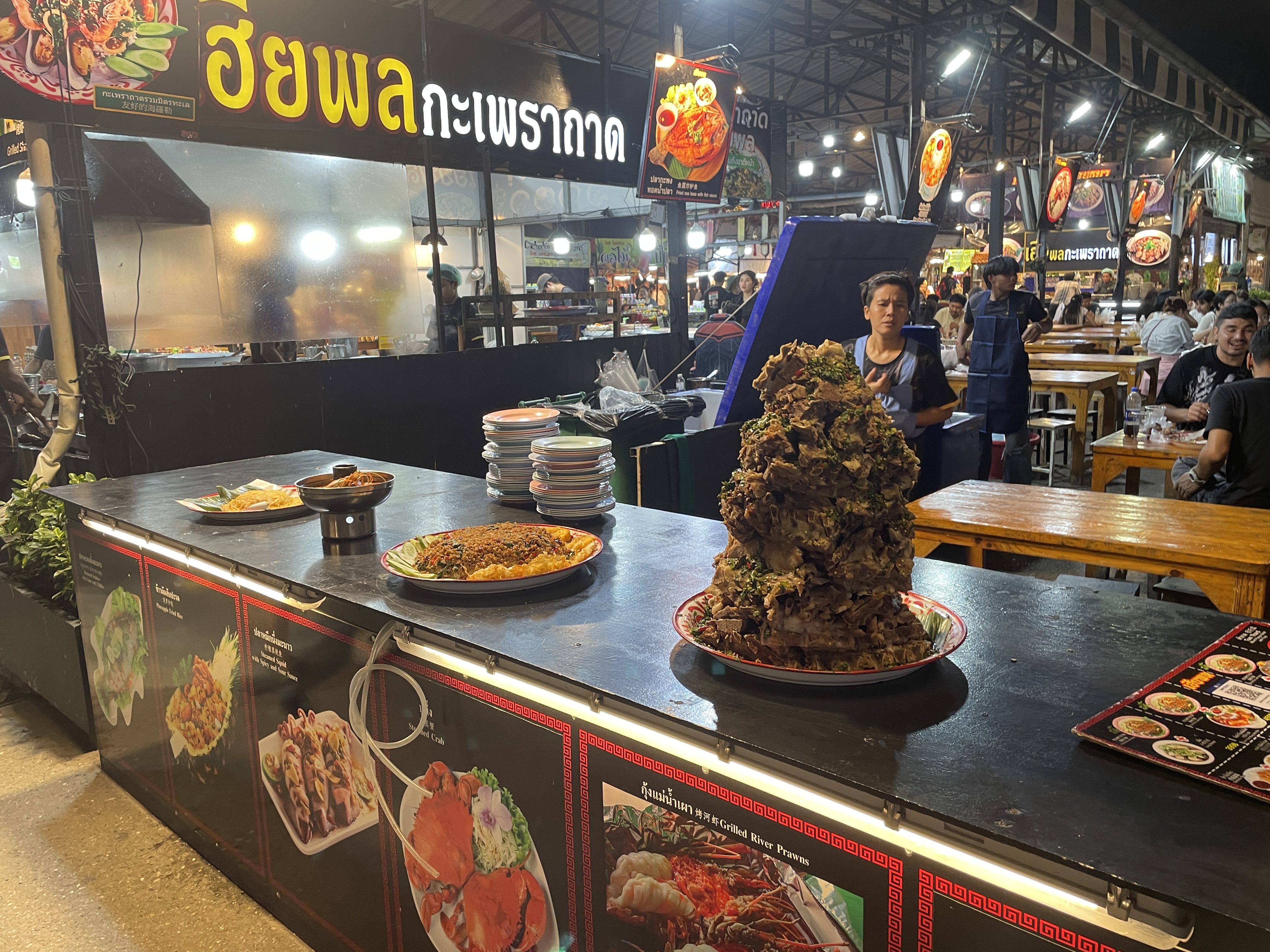 지나가는 길에 보니 랭쎕이 높게 쌓여 있고 수많은 테이블들이 있었다.