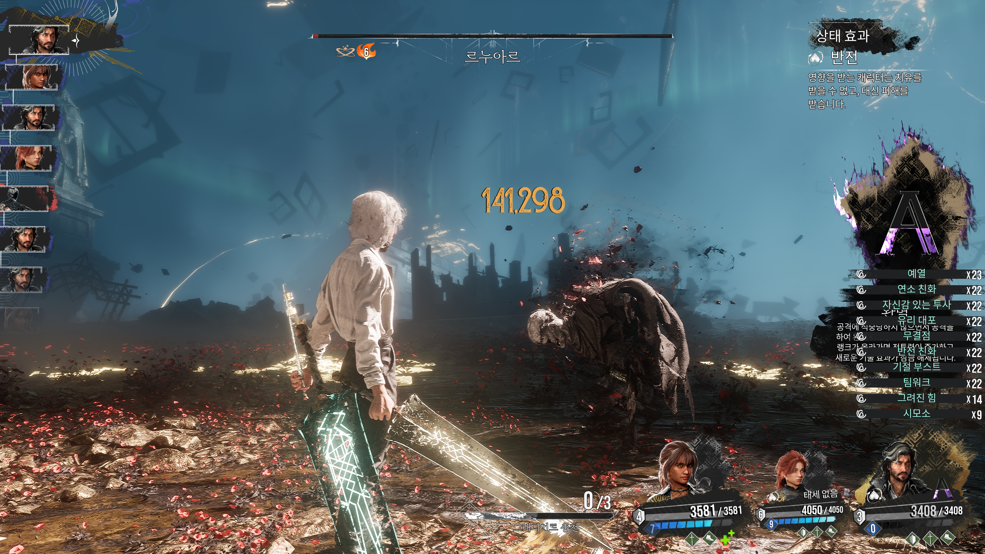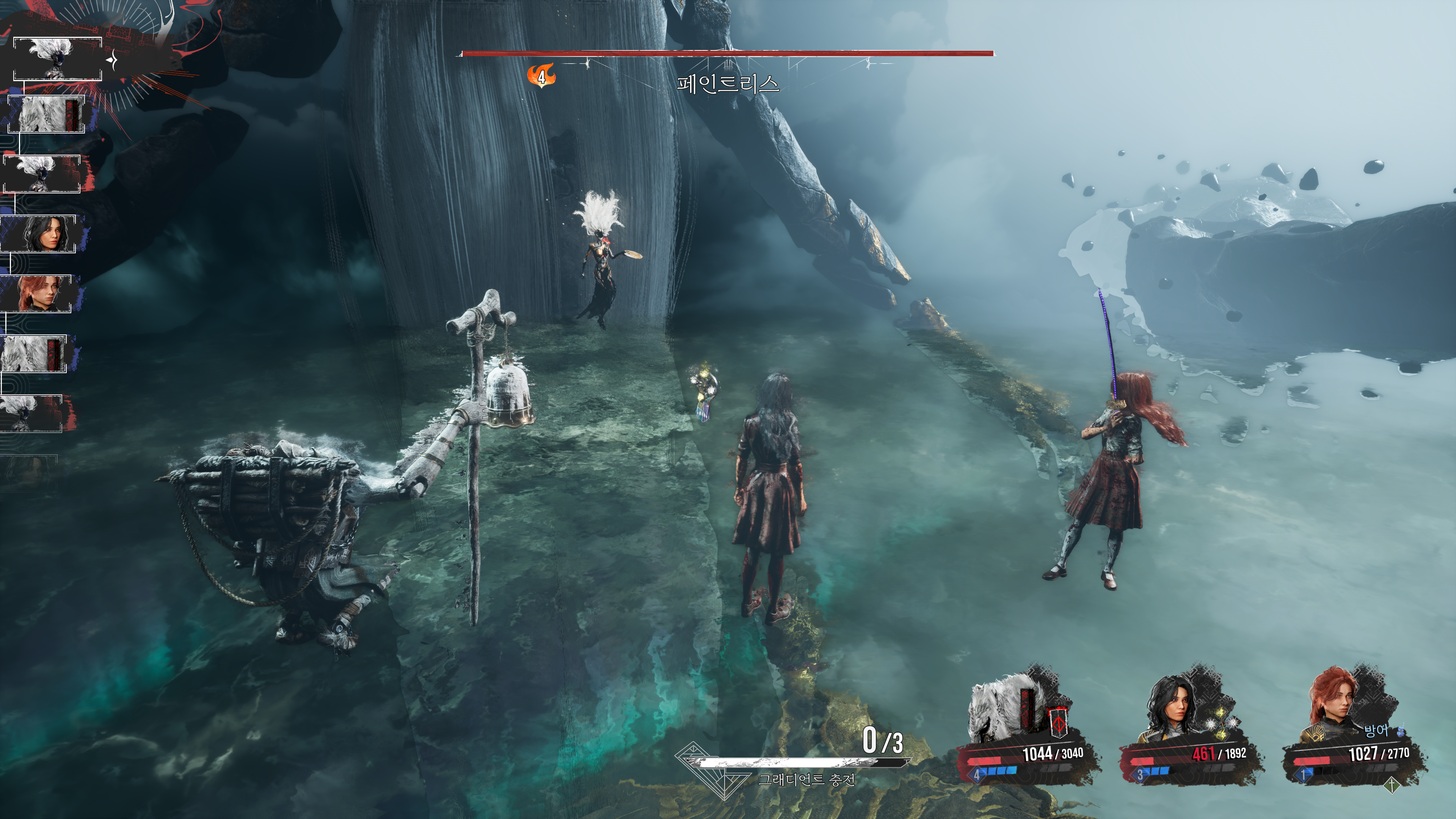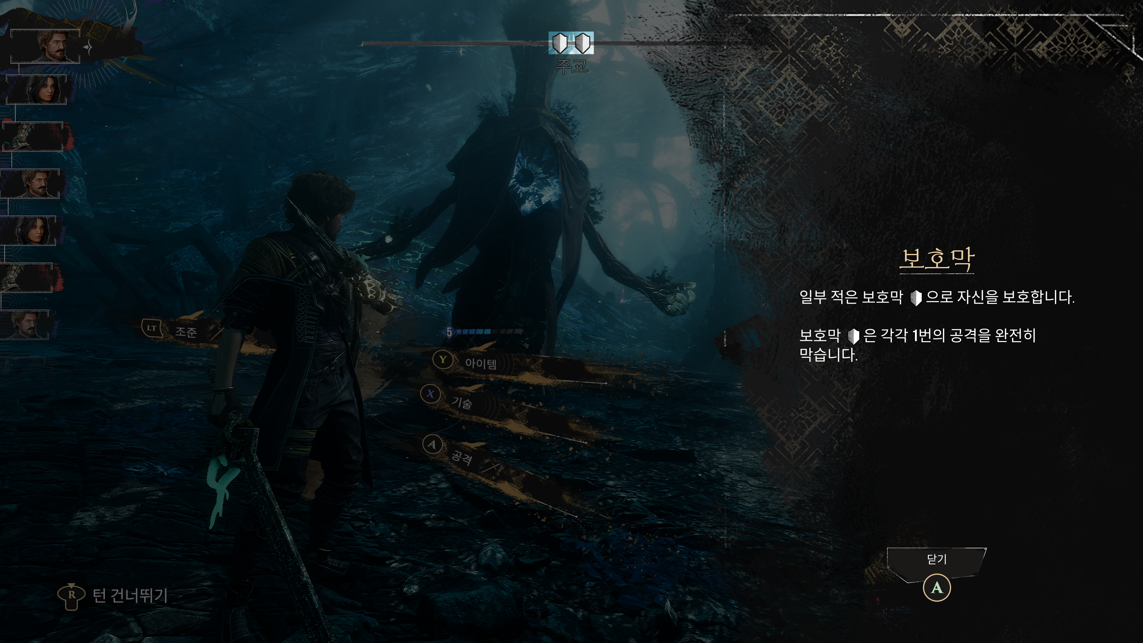 한 번에 여러 번 공격할 수 있는 사격이나 다단히트 스킬을 사용해서 보호막을 제거해야 공격이 들어간다.