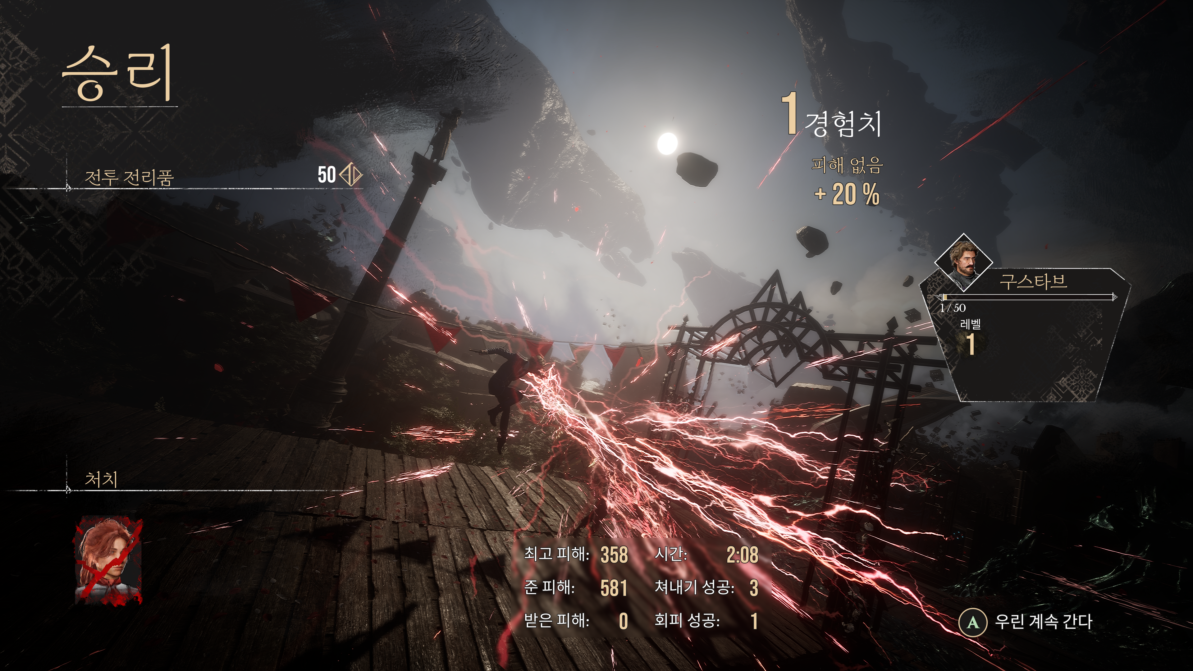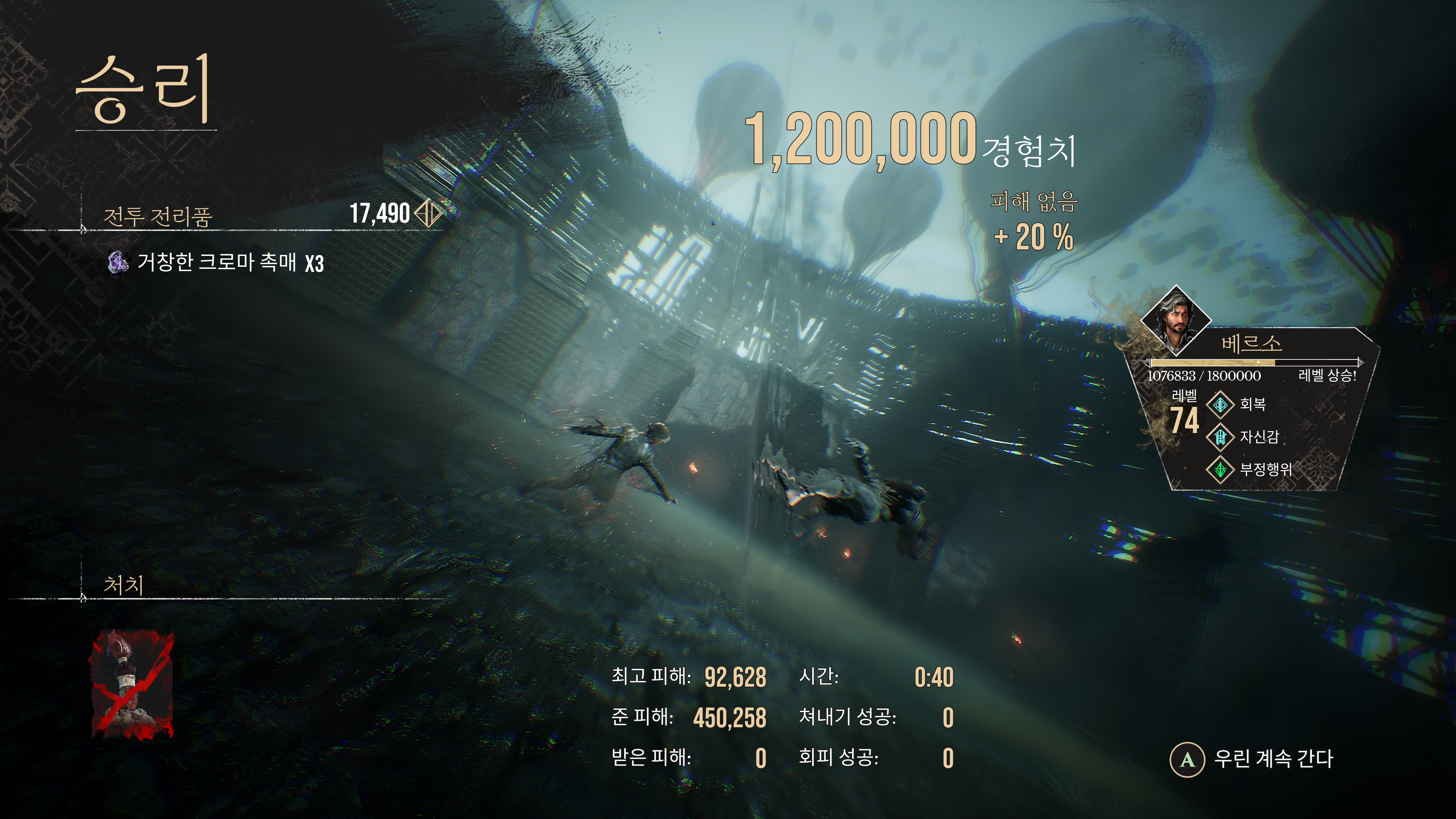 열심히 보스의 공격을 쳐내면서 보스를 처치했다.