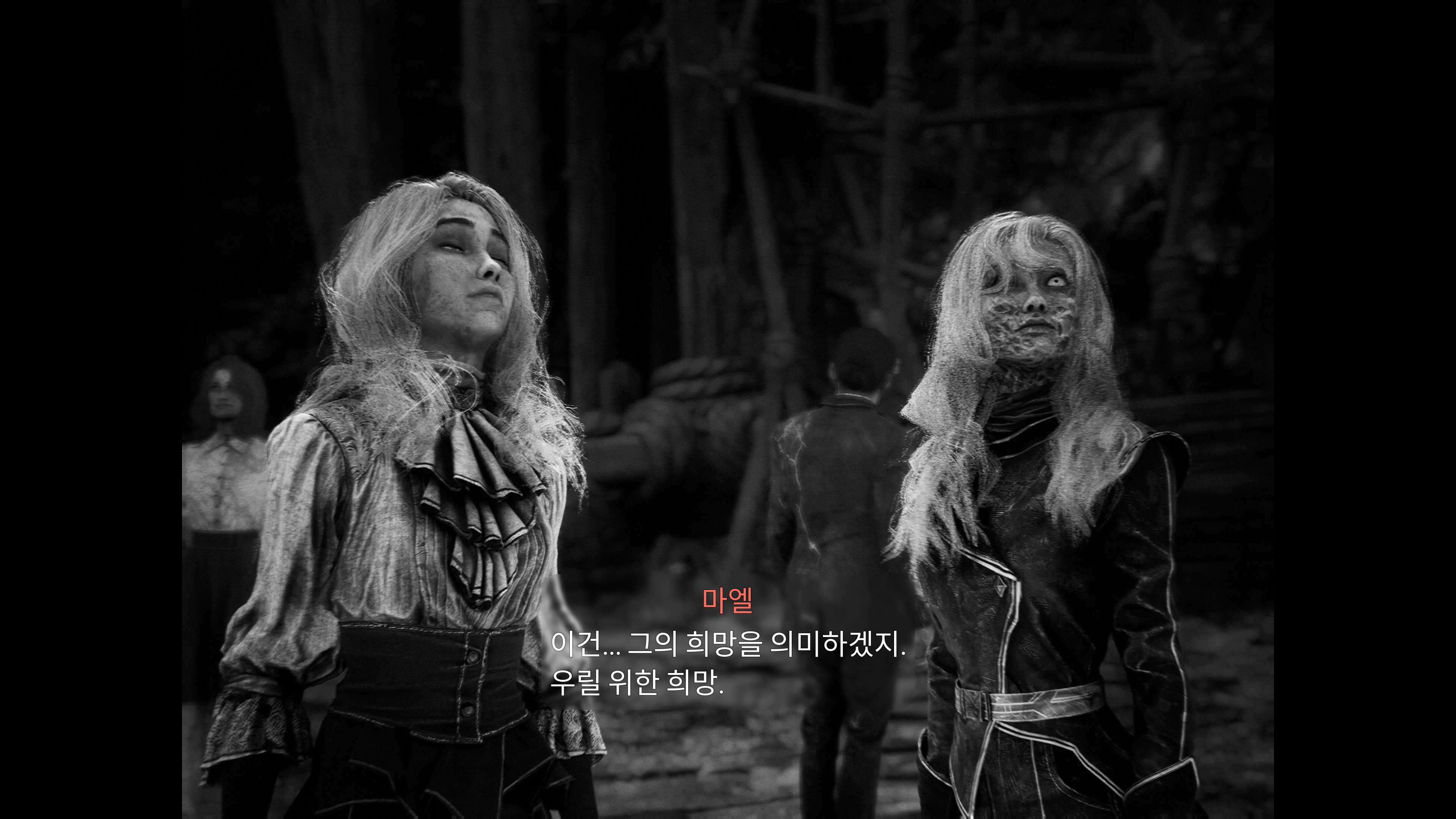 오두막에 들어가니 저택이 나왔는데 마엘이 있었다.
