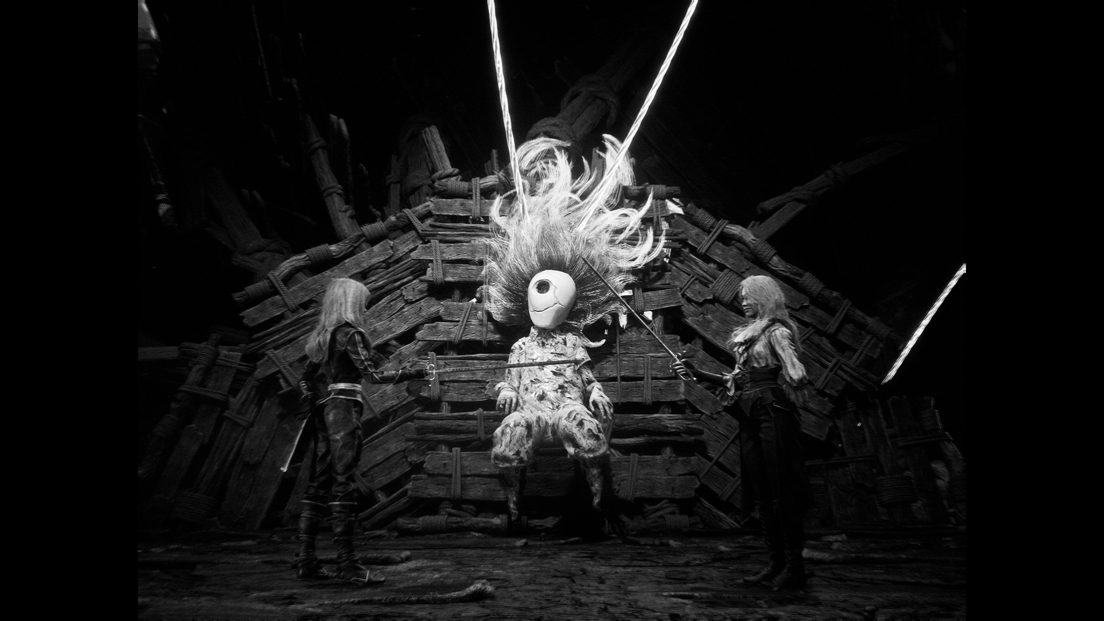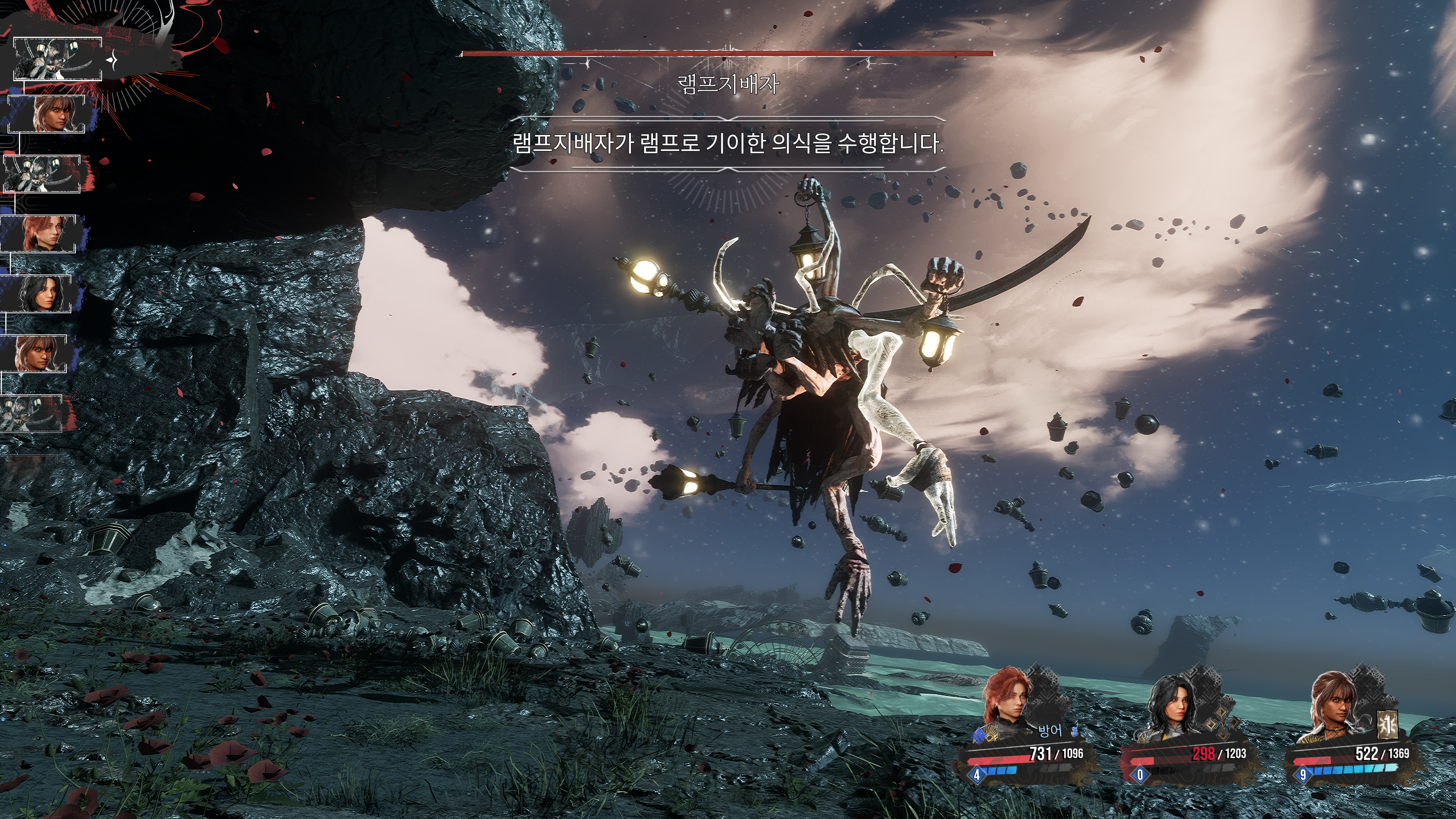 할아버지가 막 공격하고, 주변에 몬스터가 나타나서 수많은 원정대원들을 죽이기 시작했다.