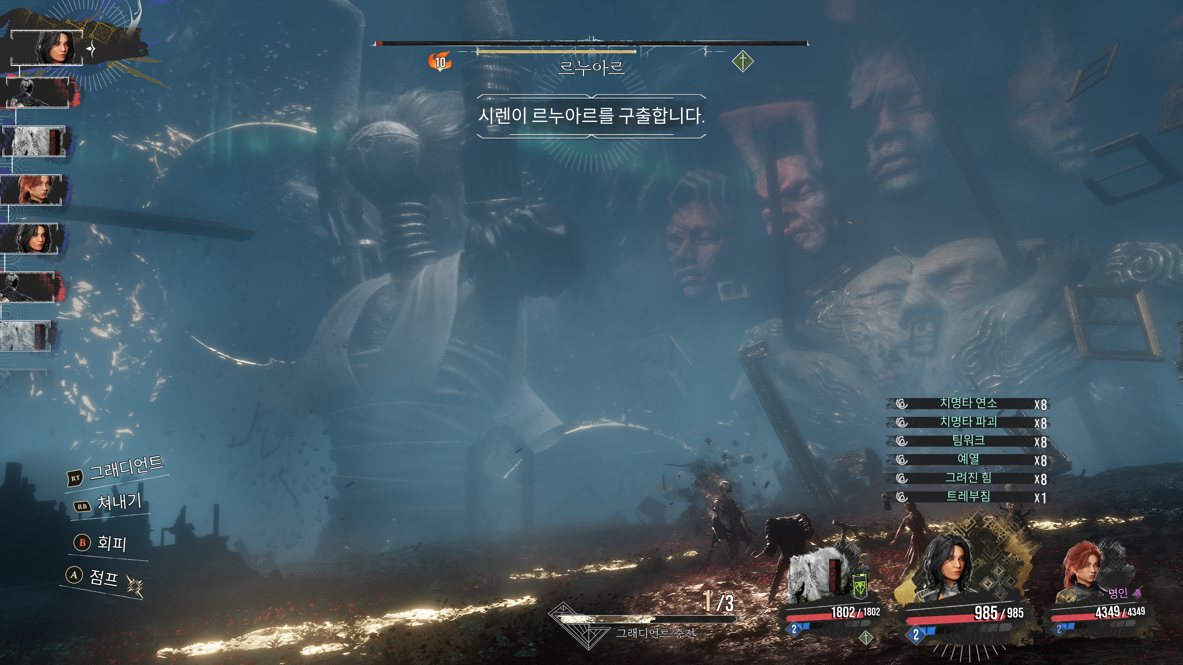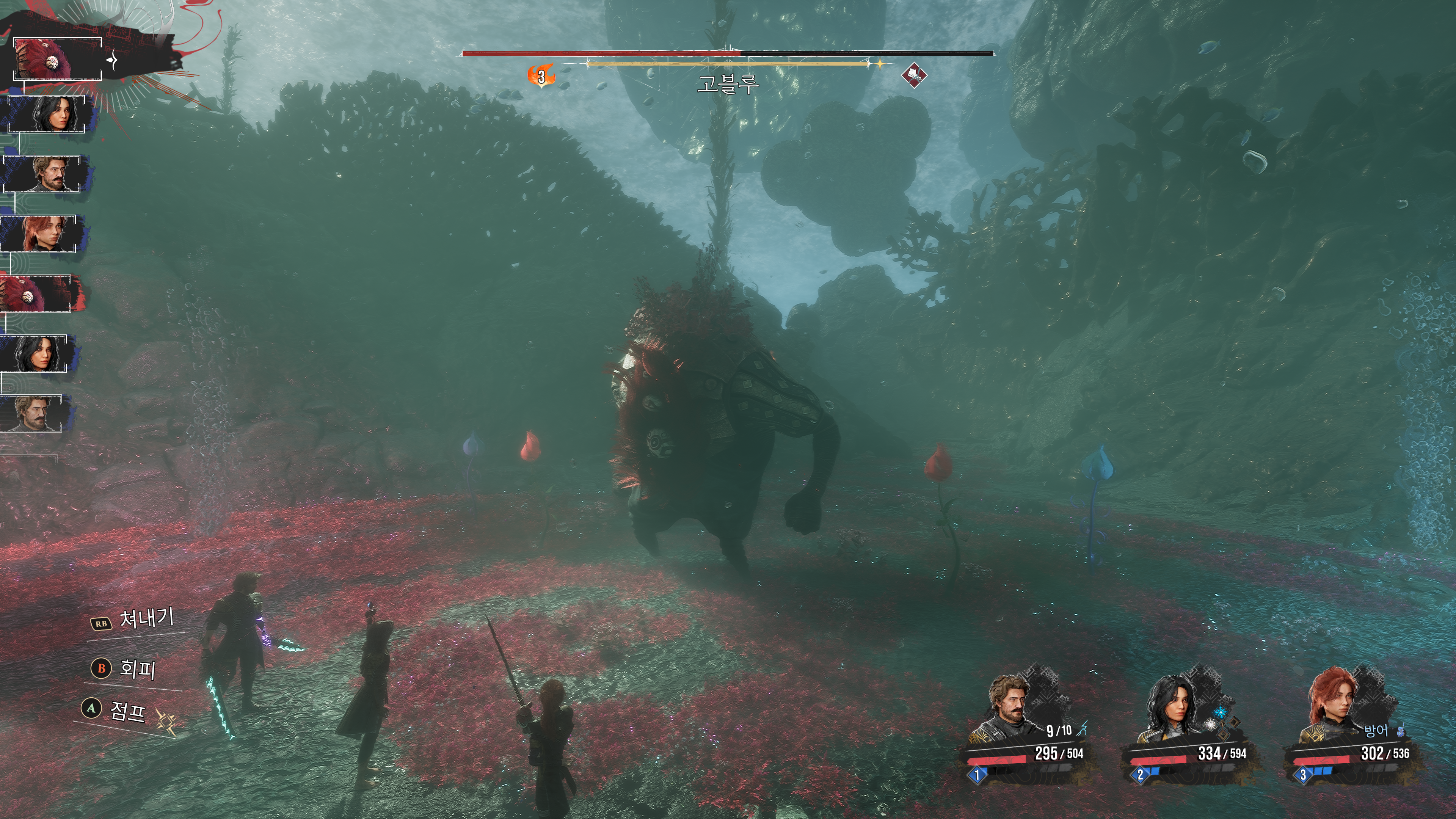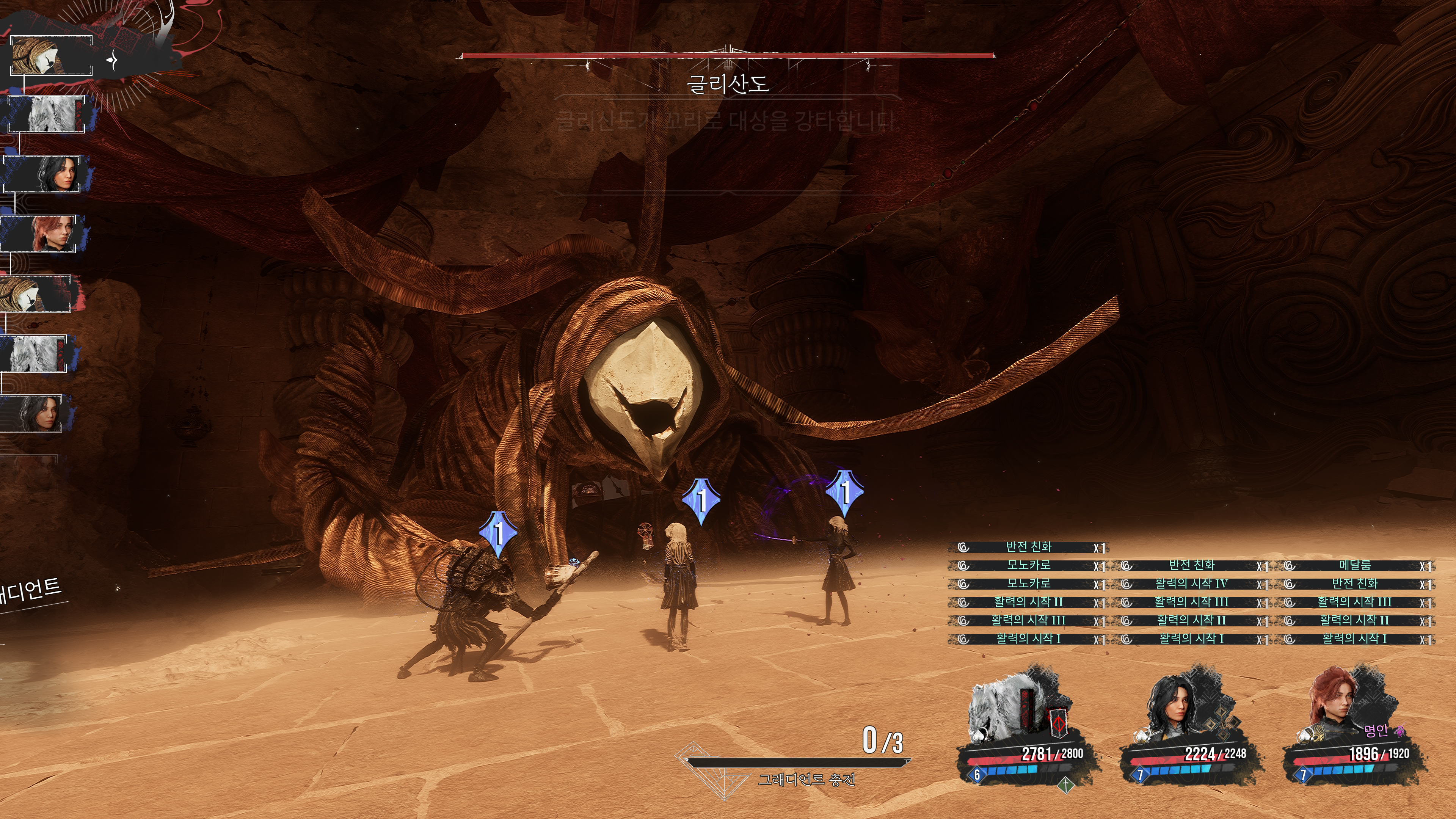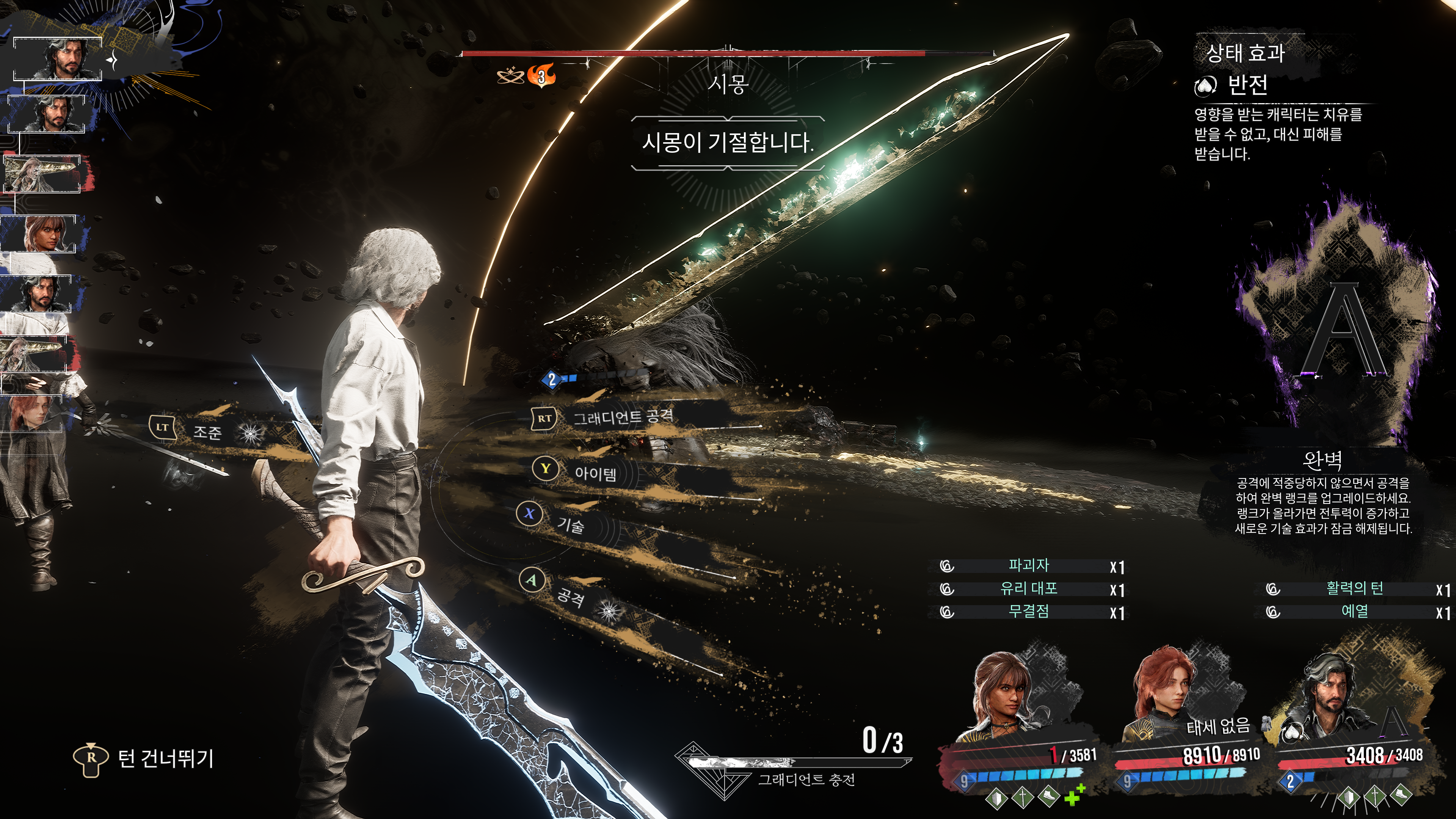 턴제 게임이긴 한데 적의 공격을 쳐내야 AP가 차면서 공격을 원활하게 할 수 있는 게임이었다.