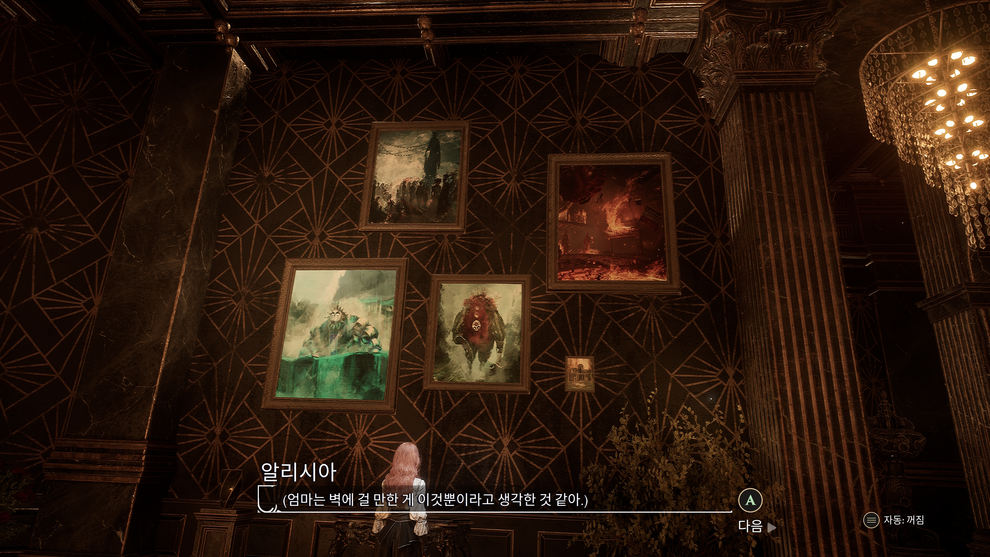 어머니 알린이 죽어서 캔버스 밖으로 쫓겨났는데 다시 캔버스로 들어왔다.