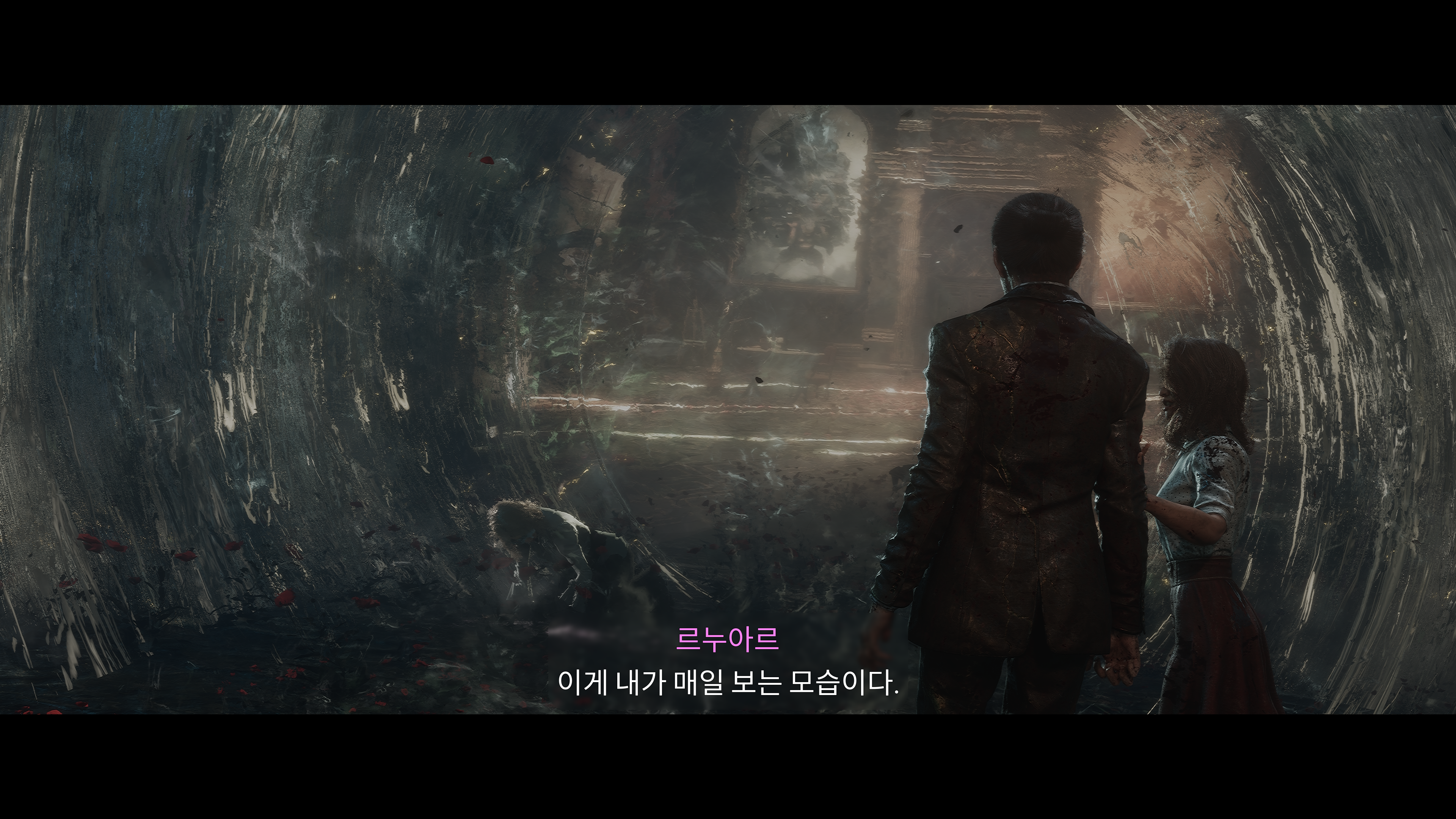 다른 공간에서 그림을 그리고 있는 어린 베르소의 영혼을 만난 베르소.