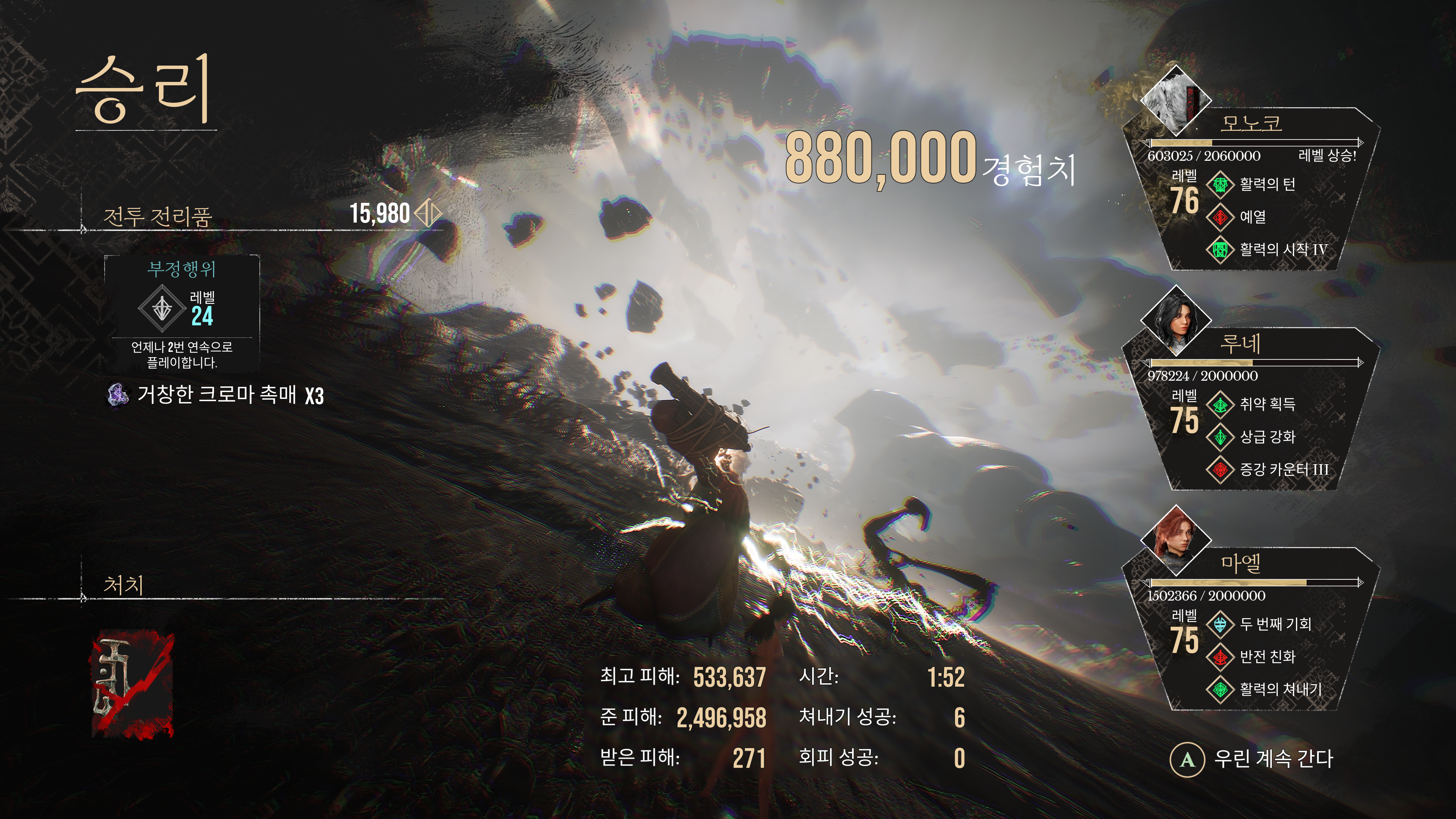 대미지 상한이 해금되면서 너무 강해서 잡기 어려웠던 크로마틱 친구들을 잡을 수 있게 되었다.