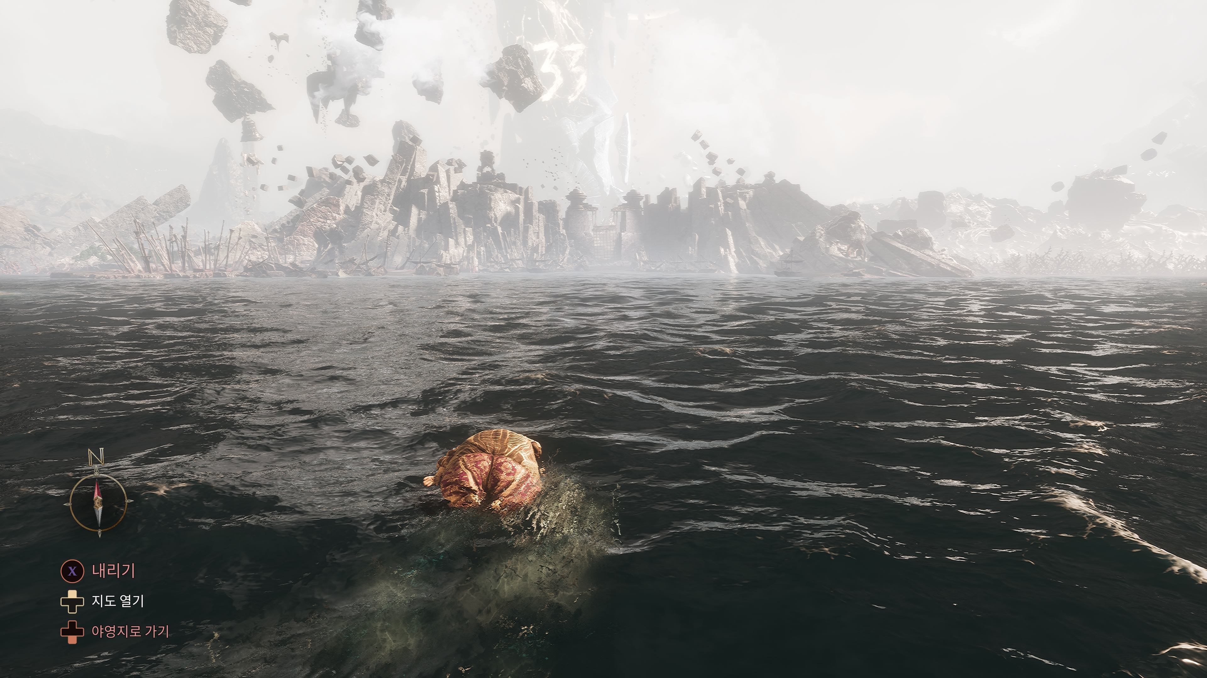 고마주를 중단시키기 위해 페인트리스를 만나러 가야 하는데 바다가 막고 있었다.