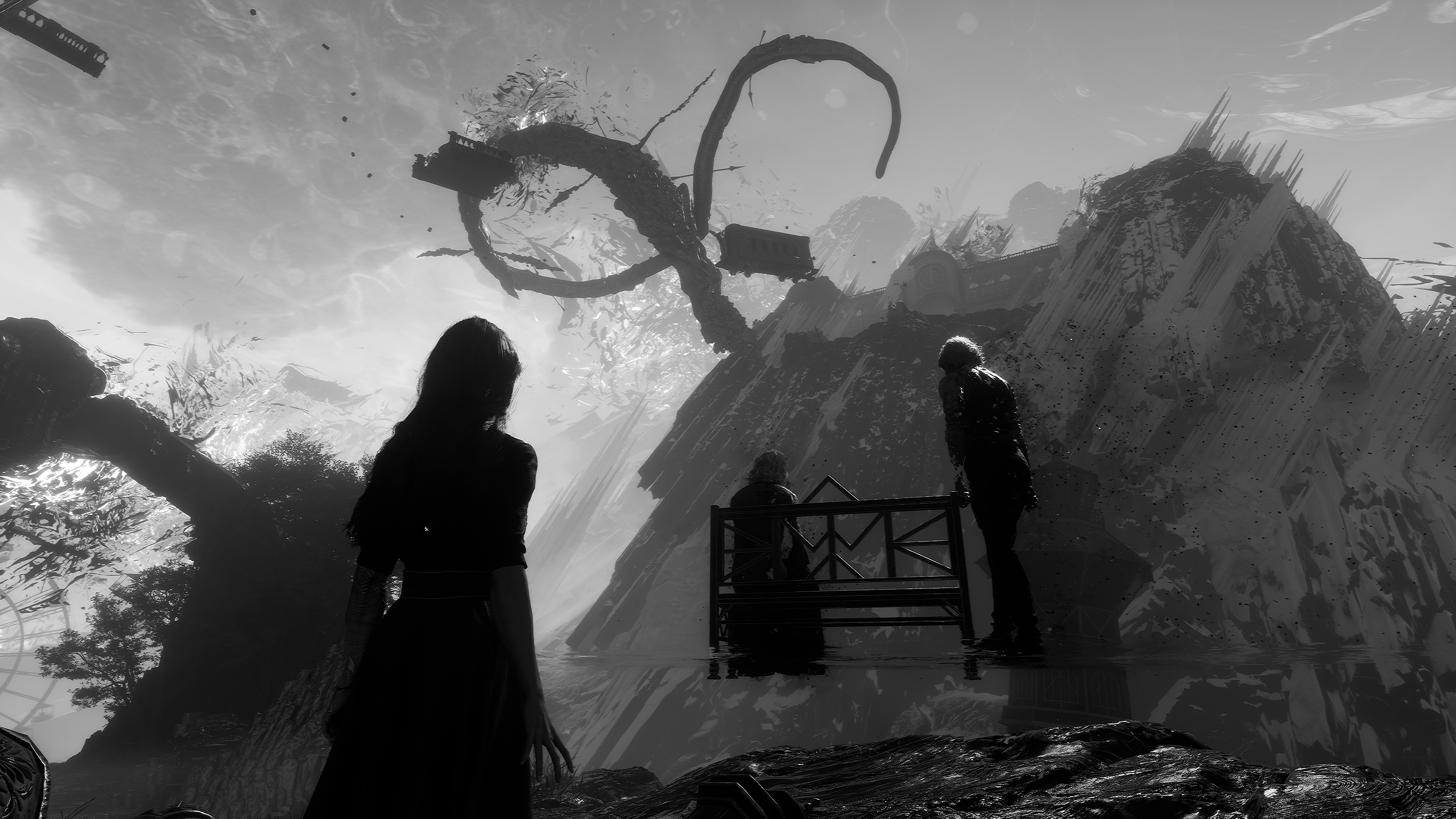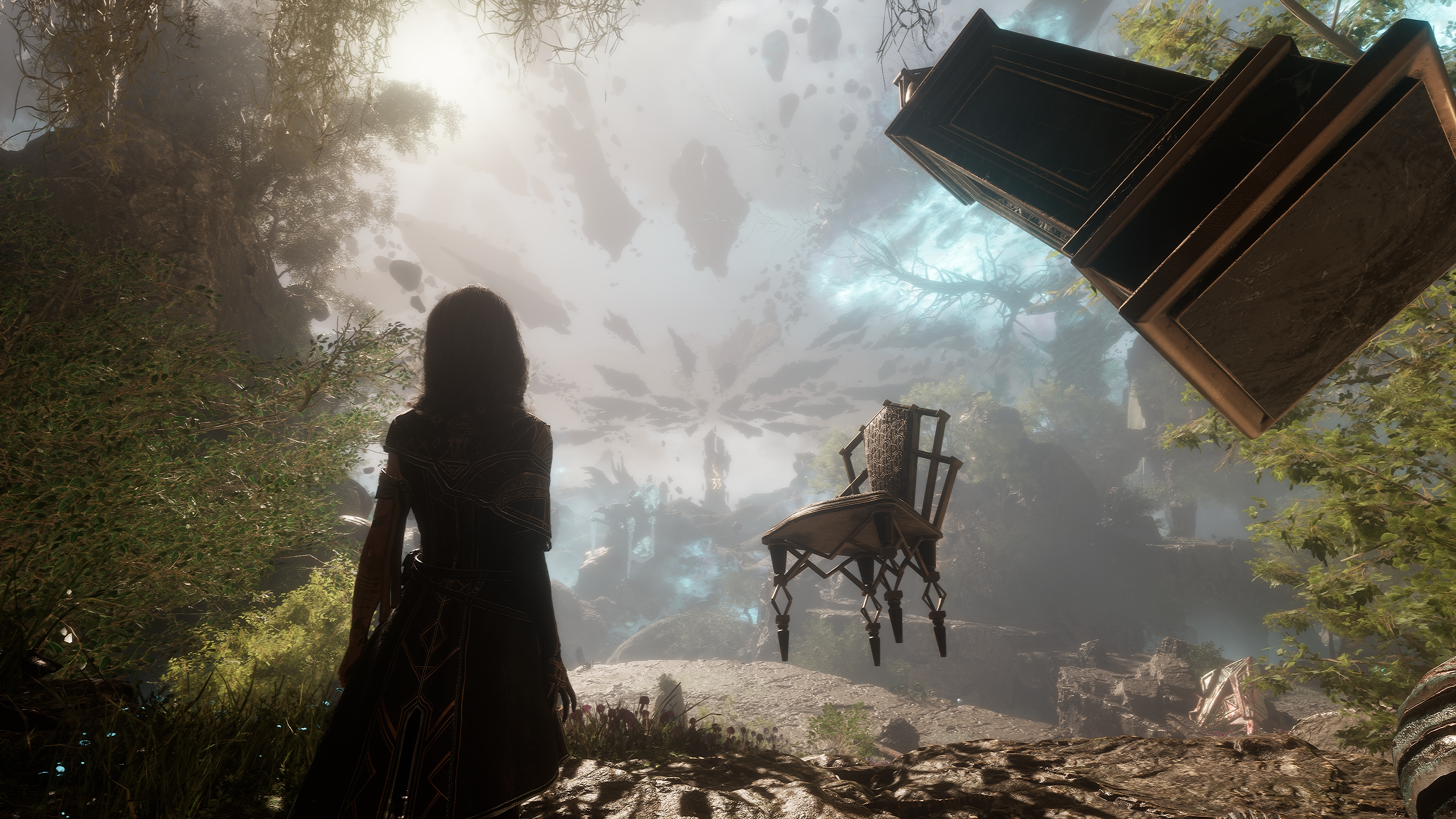 시공간이 뒤틀렸는지 가구나 바위들이 둥둥 떠 있다.