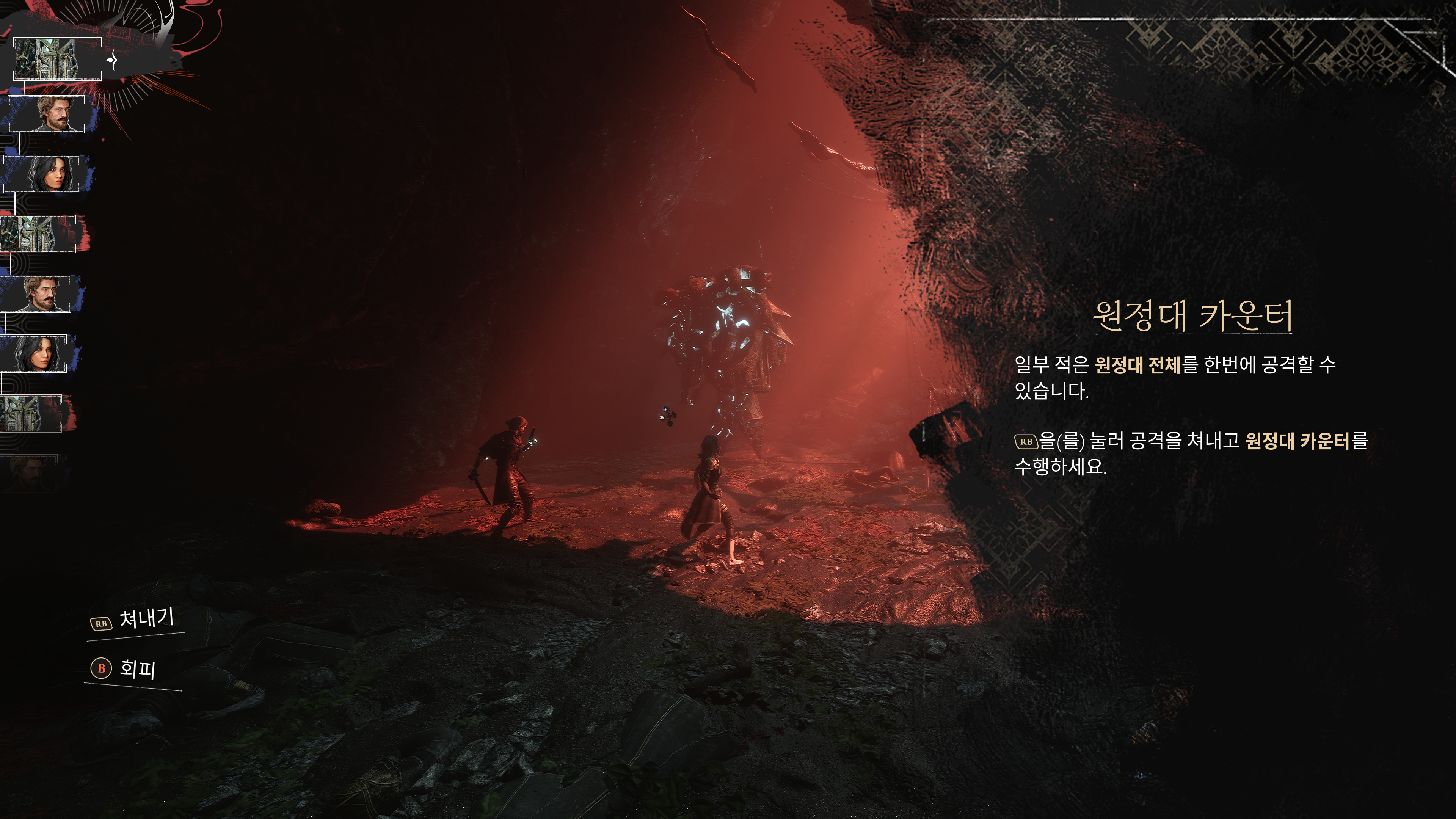몬스터가 원정대에 범위 공격을 할 때가 있는데 이때 쳐내기를 수행하면 원정대 카운터를 수행할 수 있다.