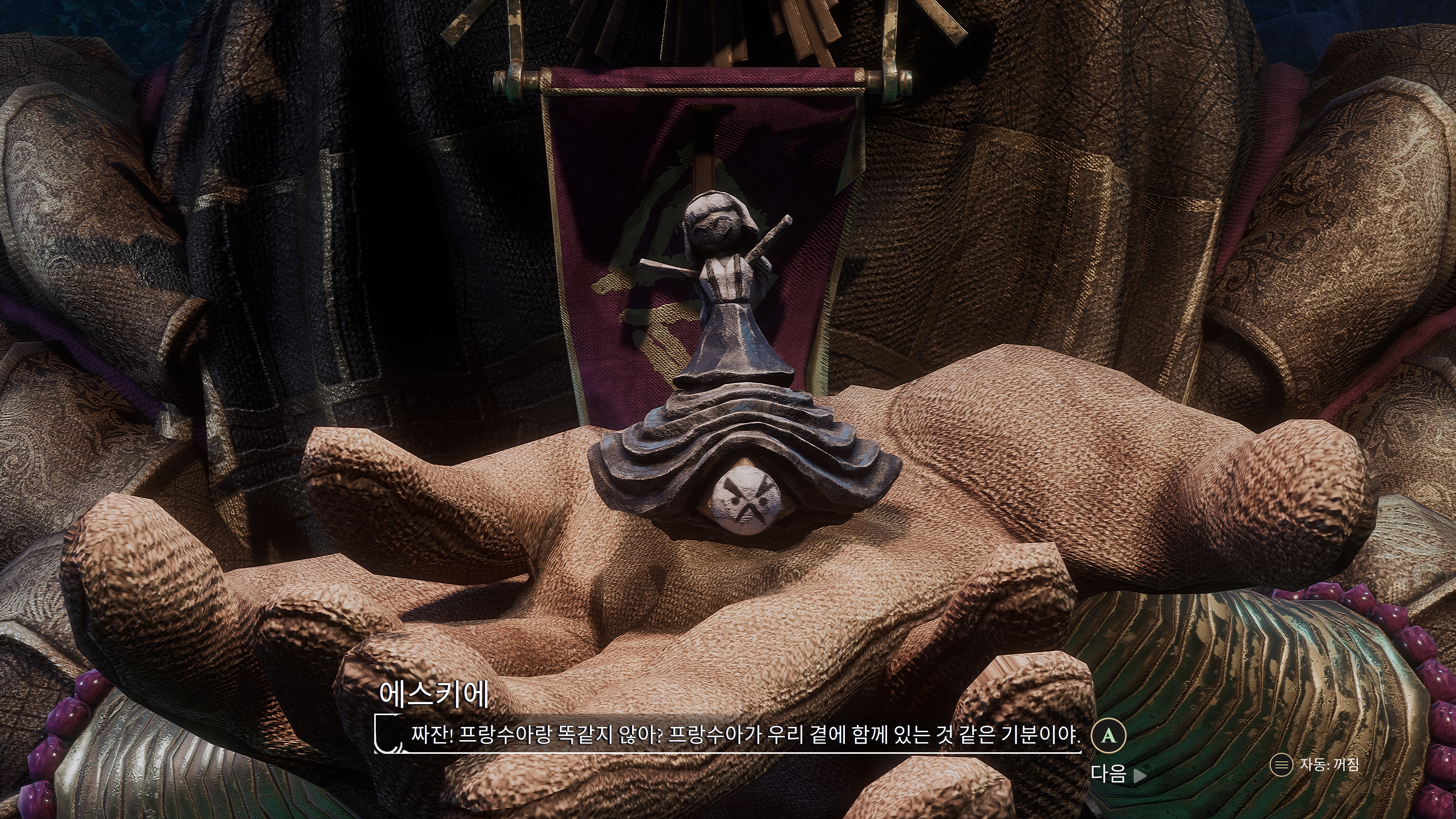 제스트랄의 대장인 골그라가 바다를 건널 수 있는 방법으로 에스키에를 추천해 주셨다.