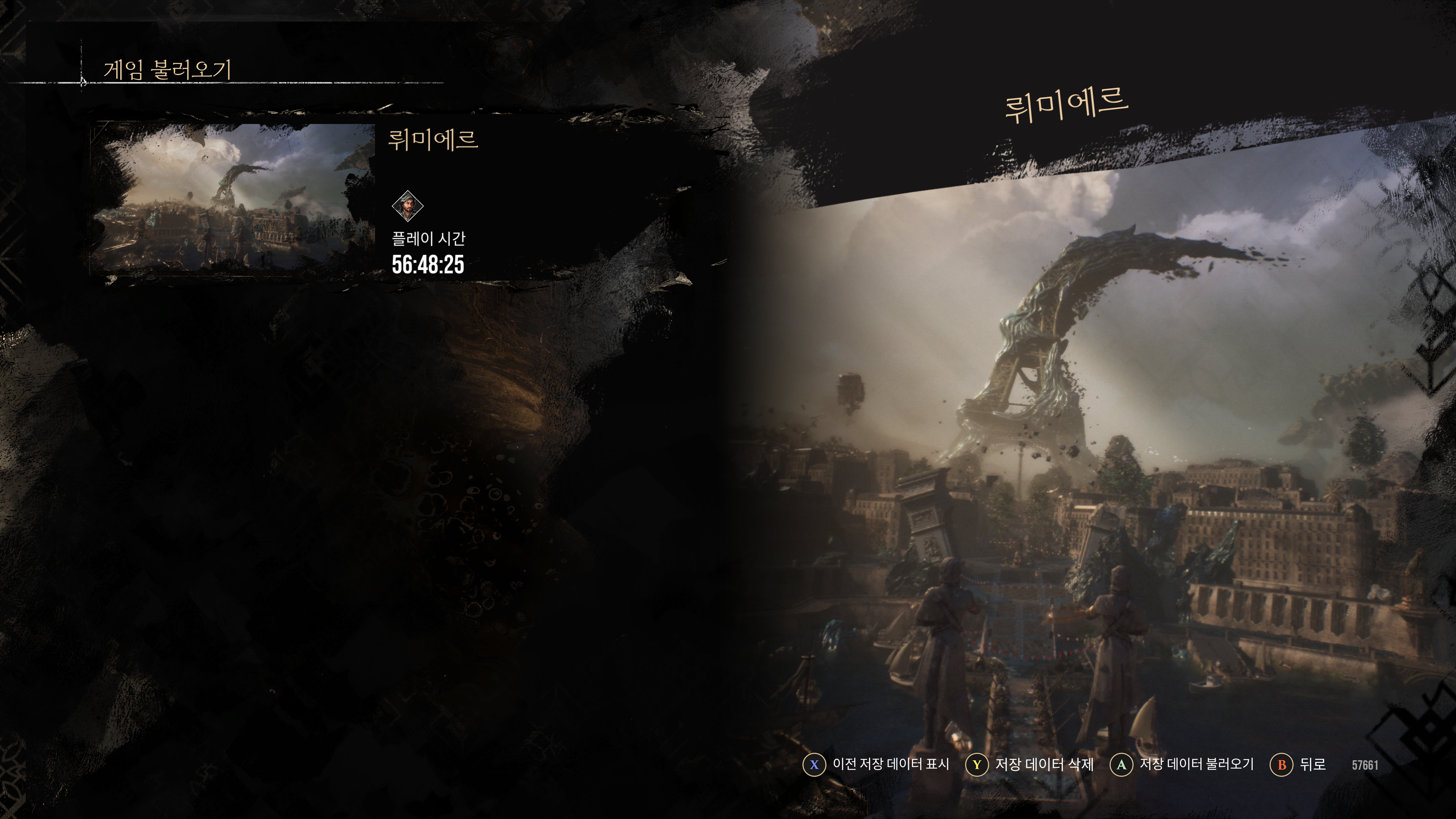 모든 영역을 다 돌아보면서 엔딩을 보니 대략 56시간 48분이 걸렸다.