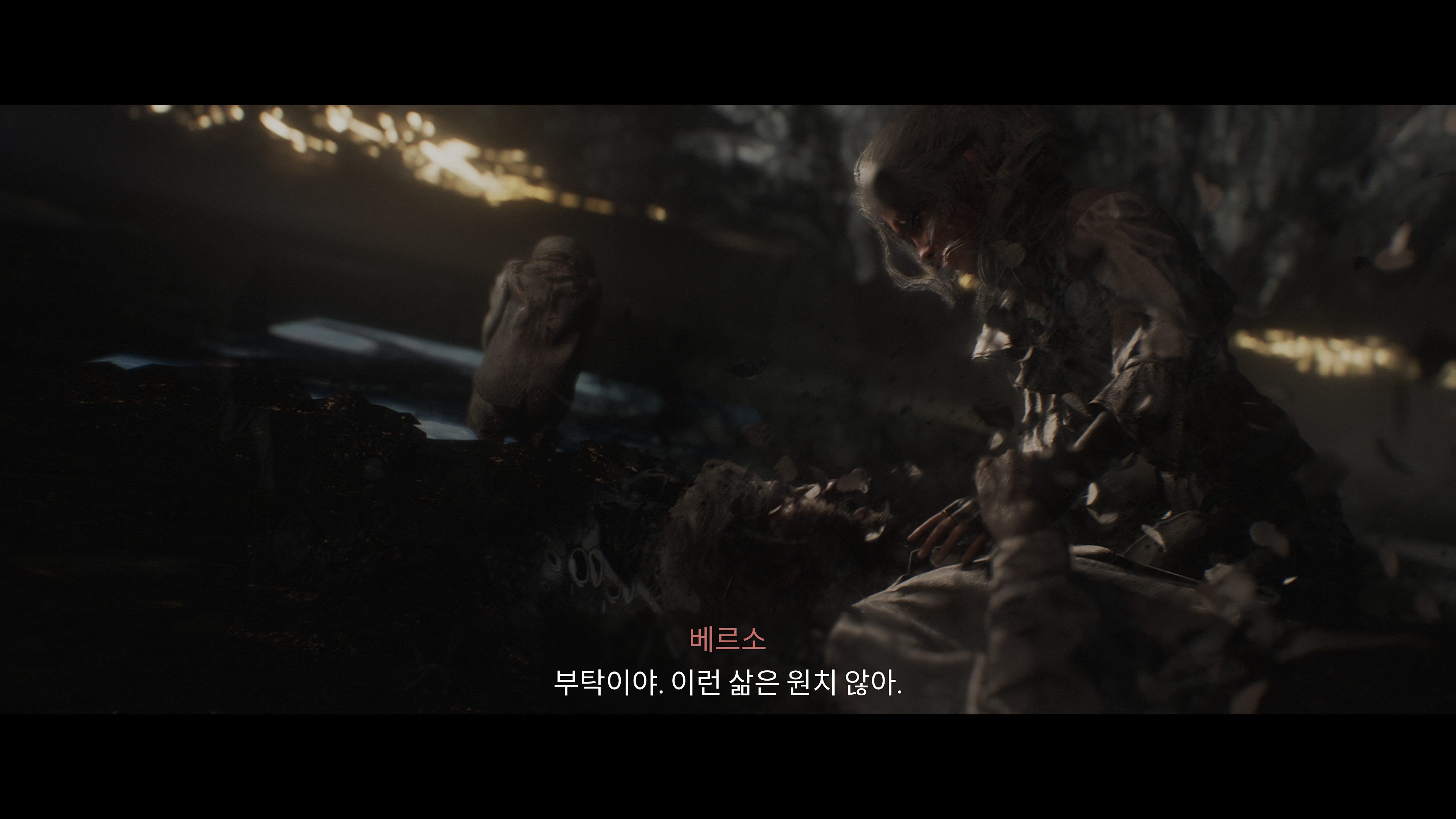 아들 베르소를 잃은 슬픔에 빠져 절망하는 어머니 알린.