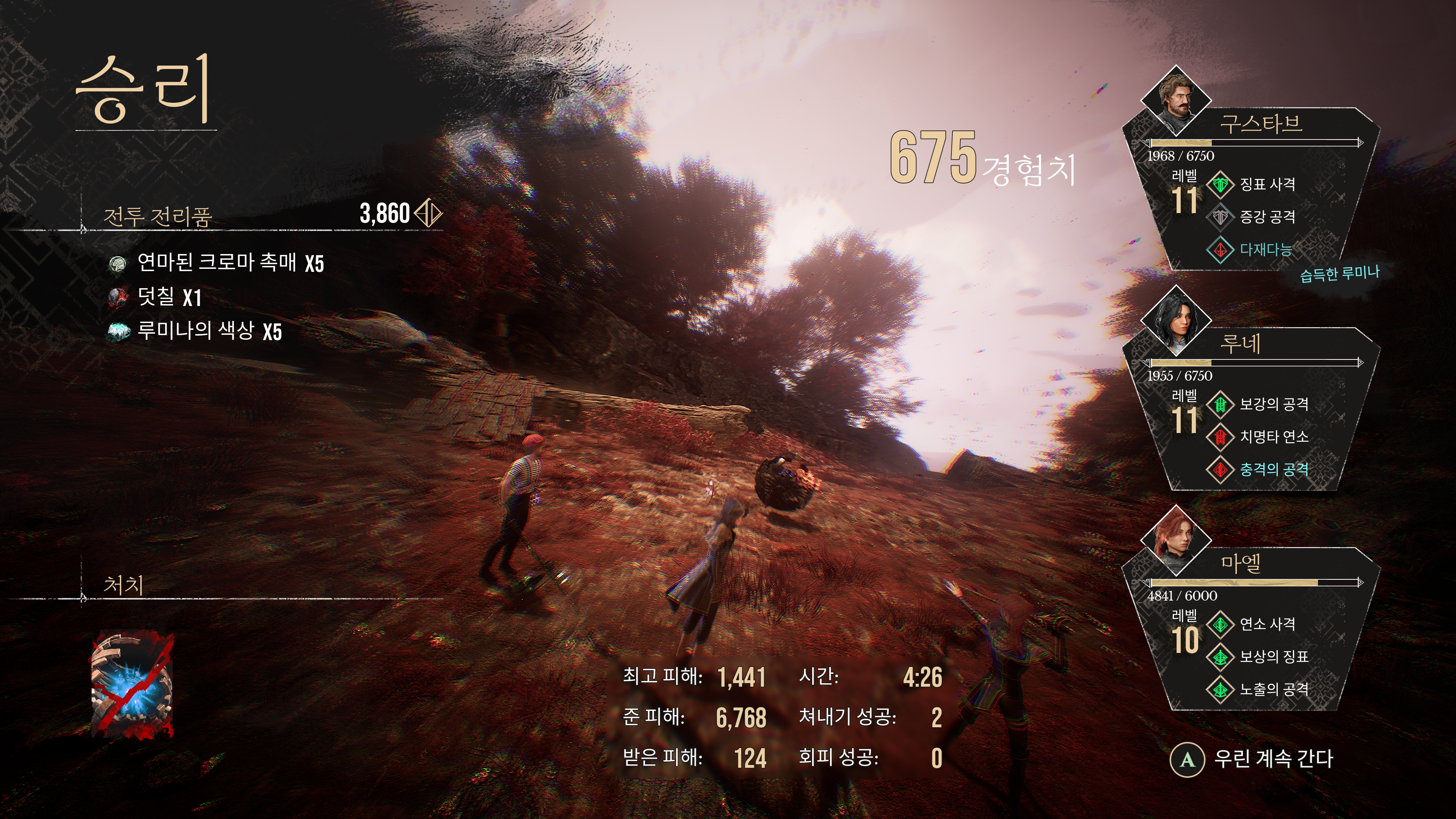 너무나도 강해져서 스킬 한 번에 르누아르가 쓰러졌다.