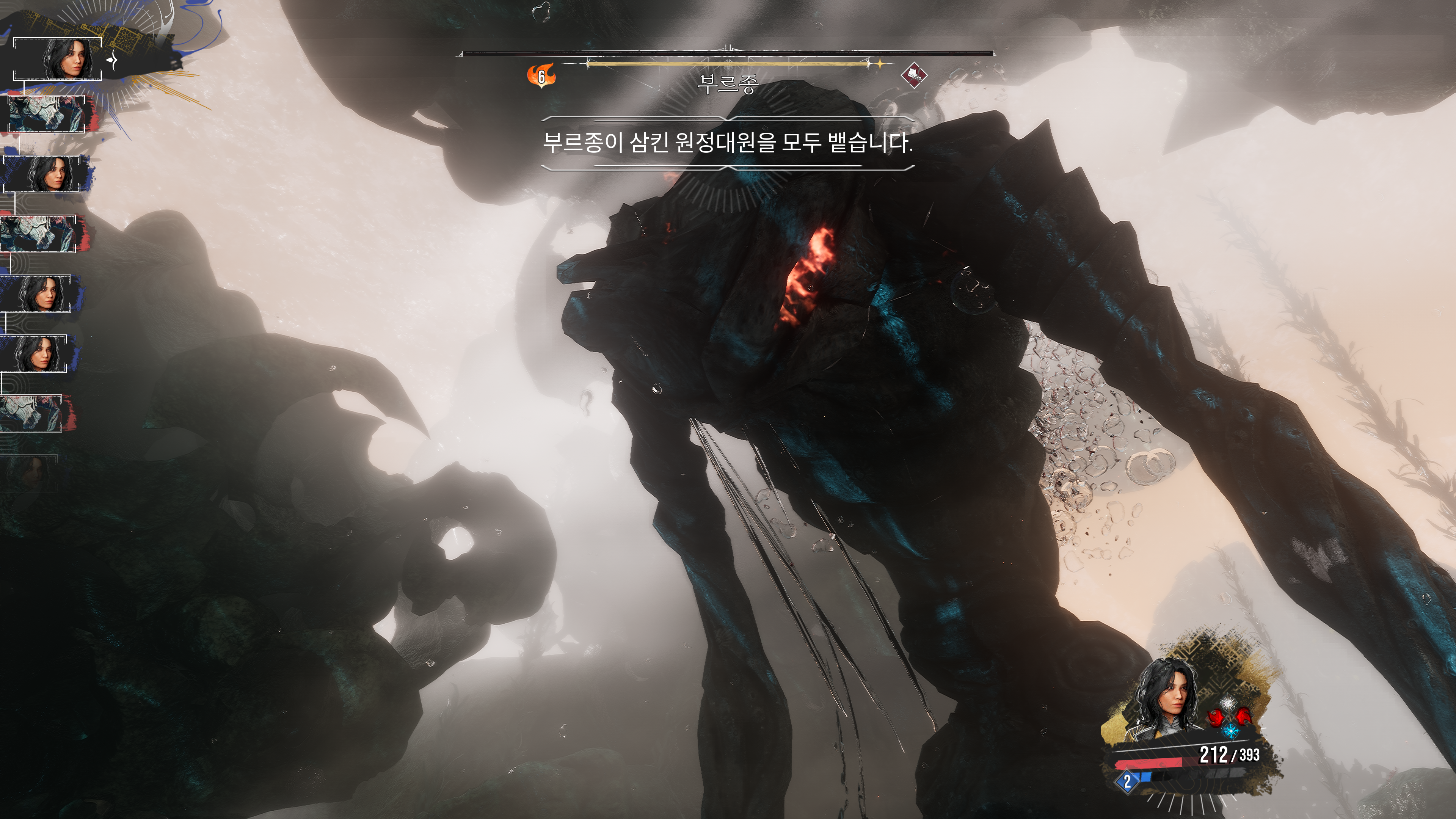 거대한 네브론인 부르종은 랜덤 하게 파티원을 삼키는데 파괴 게이지를 채워서 파괴를 수행하거나