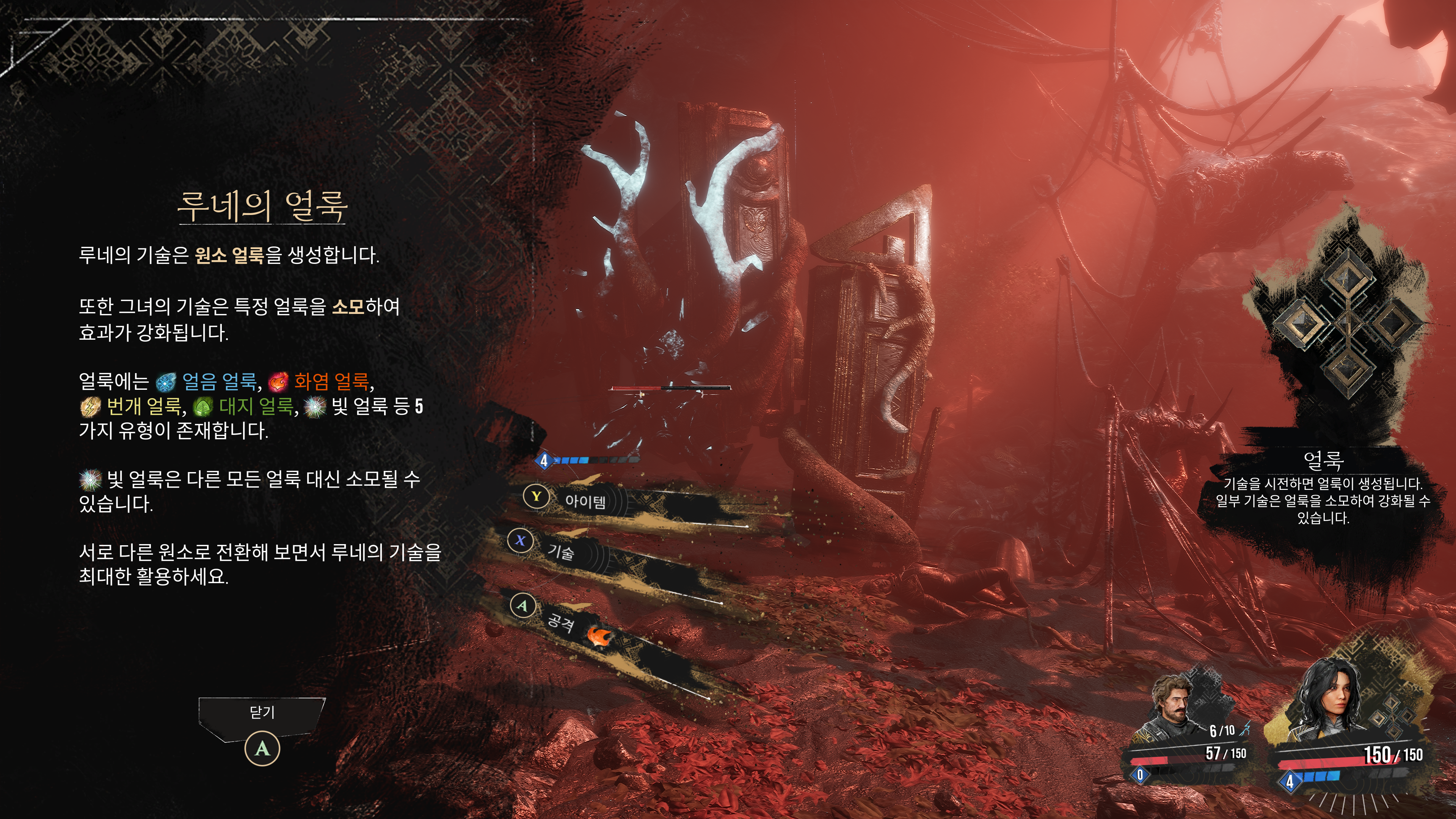 루네는 4 속성 원소 얼룩을 활용하는 캐릭터였다.
