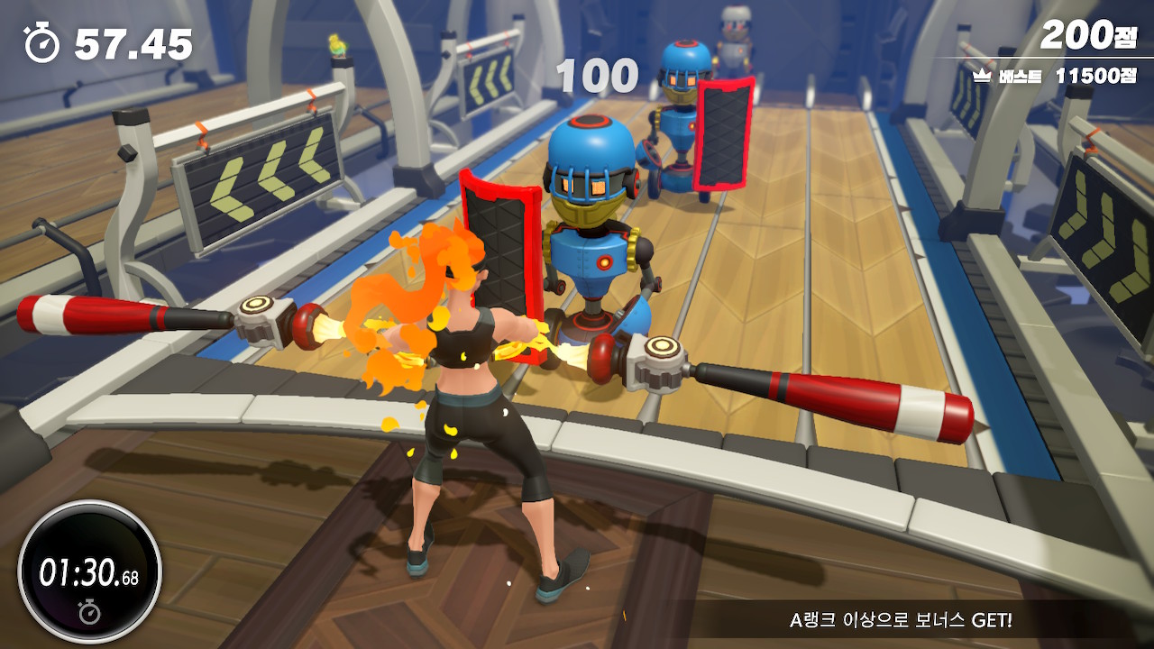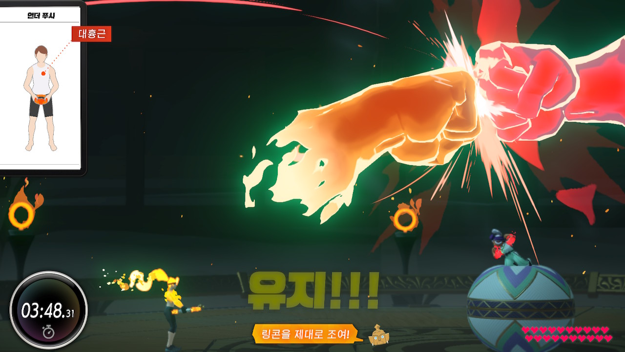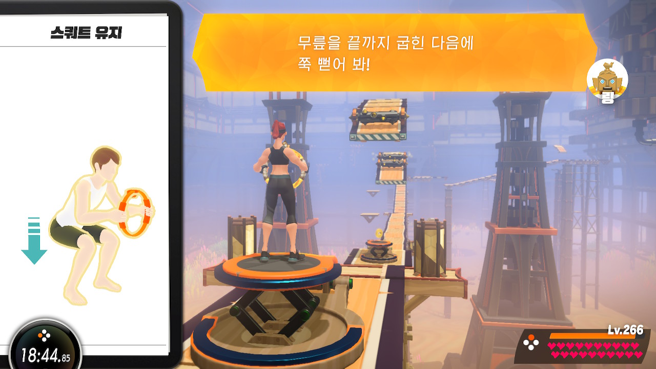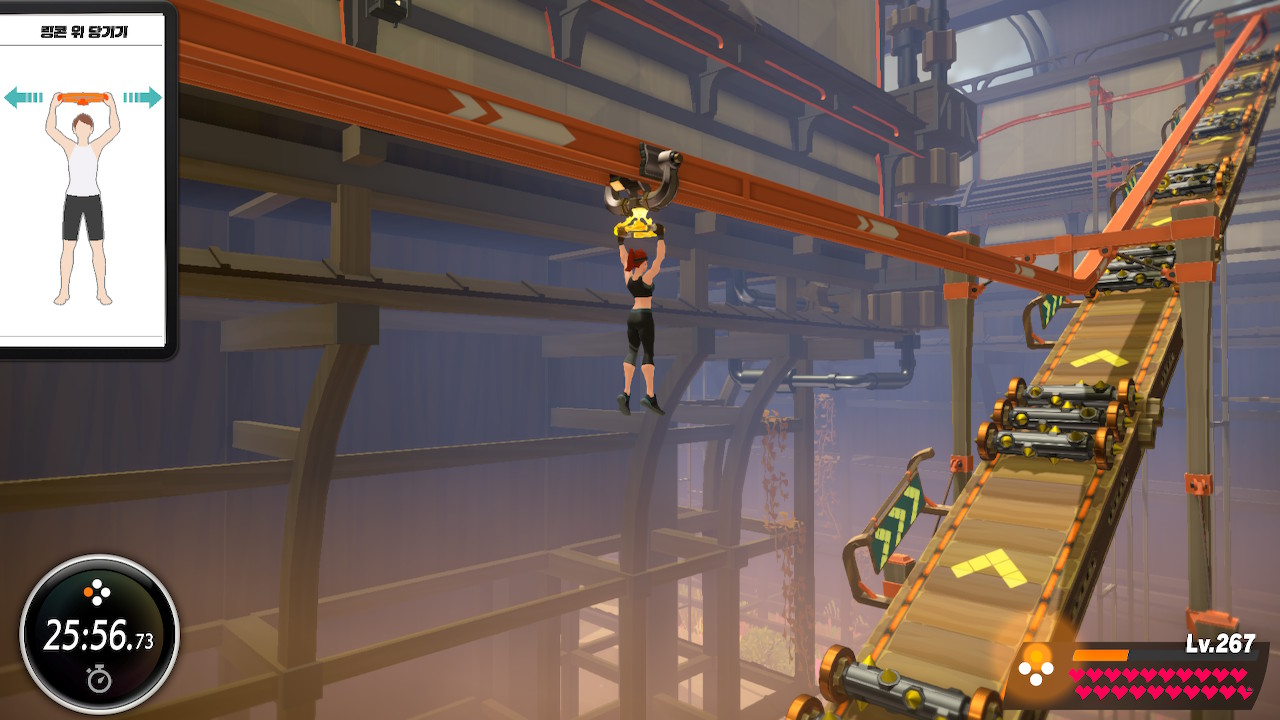 첫 스테이지는 허벅지 라이더로 허벅지에 링을 끼우고 누르면서 점프를 하는 게임이었다.