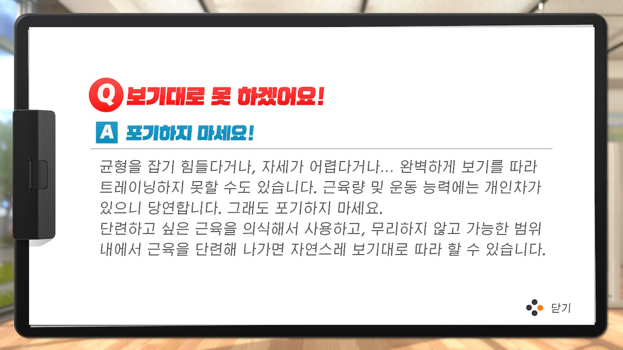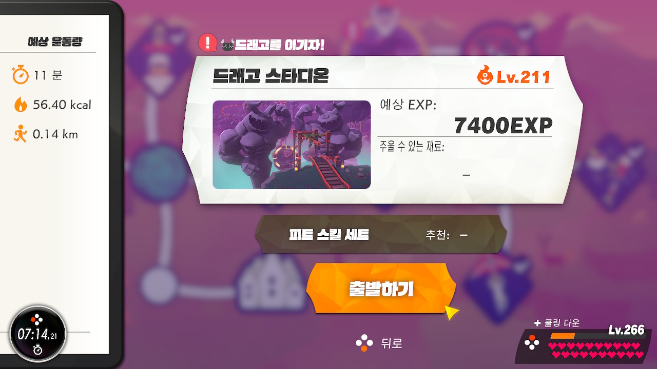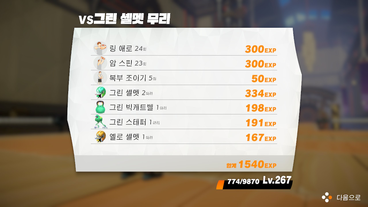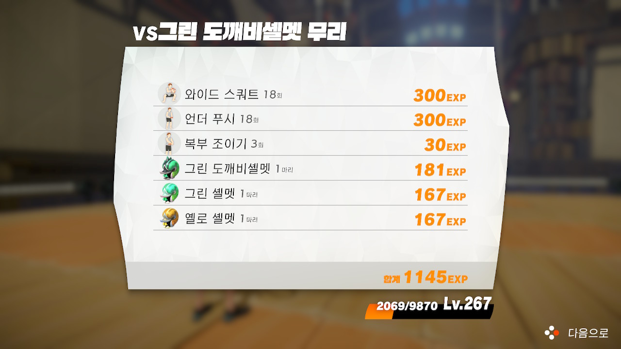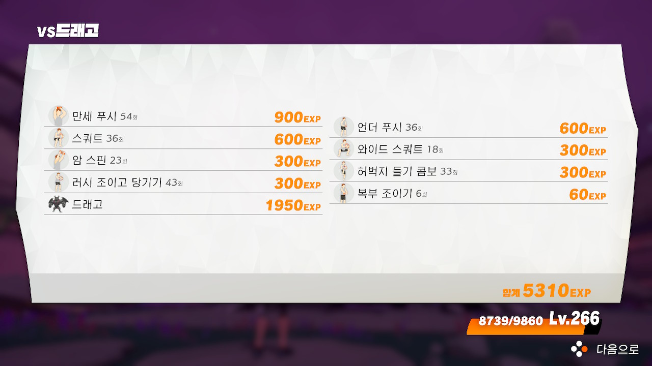 상체, 하체 여러 운동들을 수행하면서 드래고를 물리쳤다.