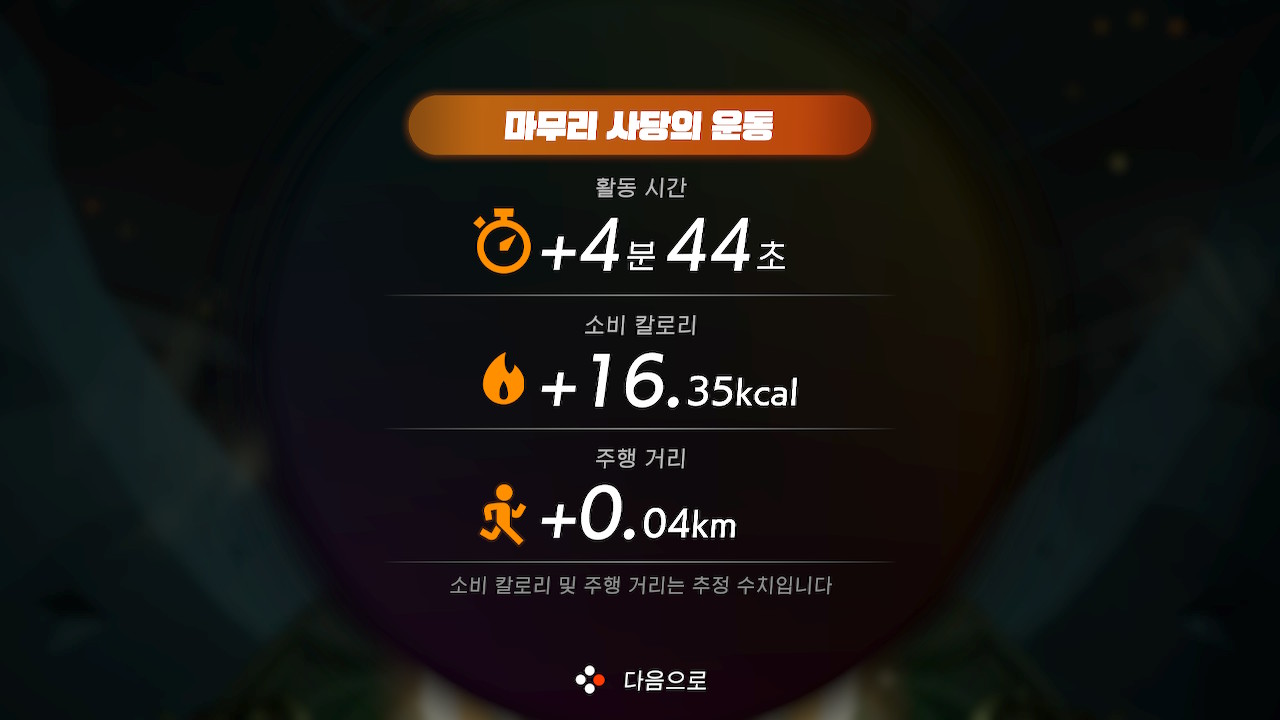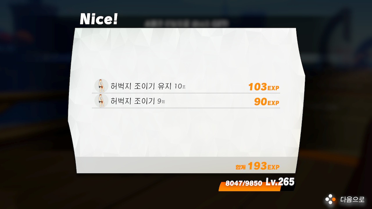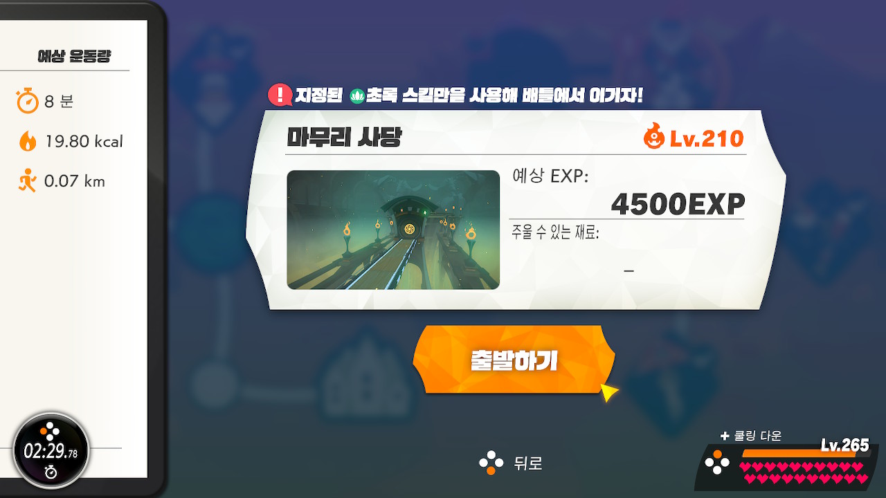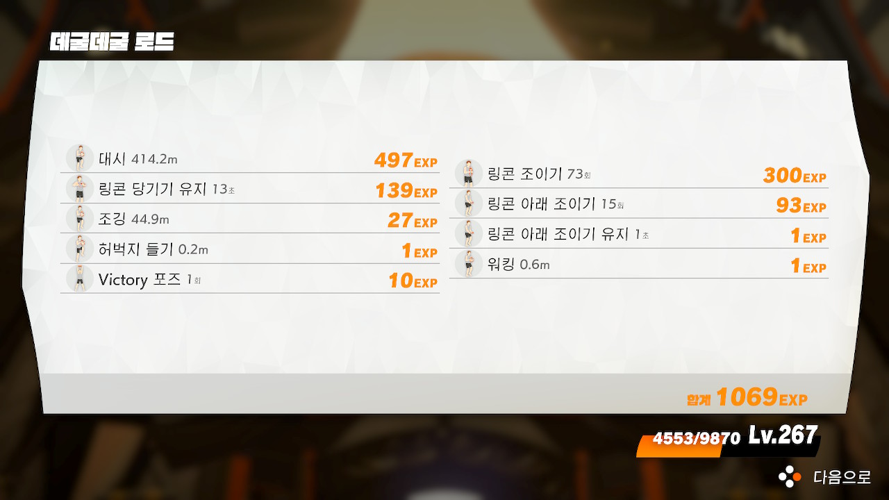 강제 초록 스킬 스테이지가 있어서 좀 더 다양한 운동을 수행했다.
