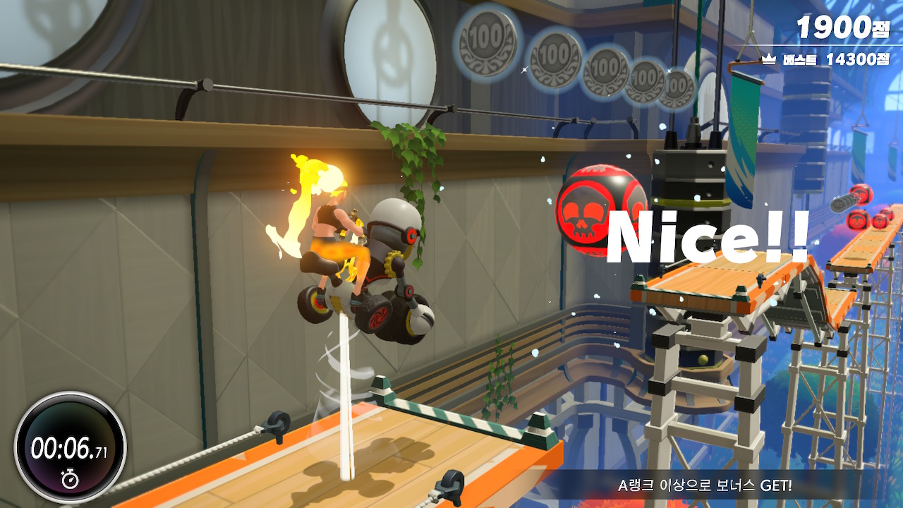 다음 스테이지는 패러슈트로 링을 늘리면서 상하좌우로 이동하면서 코인을 먹으면 된다.