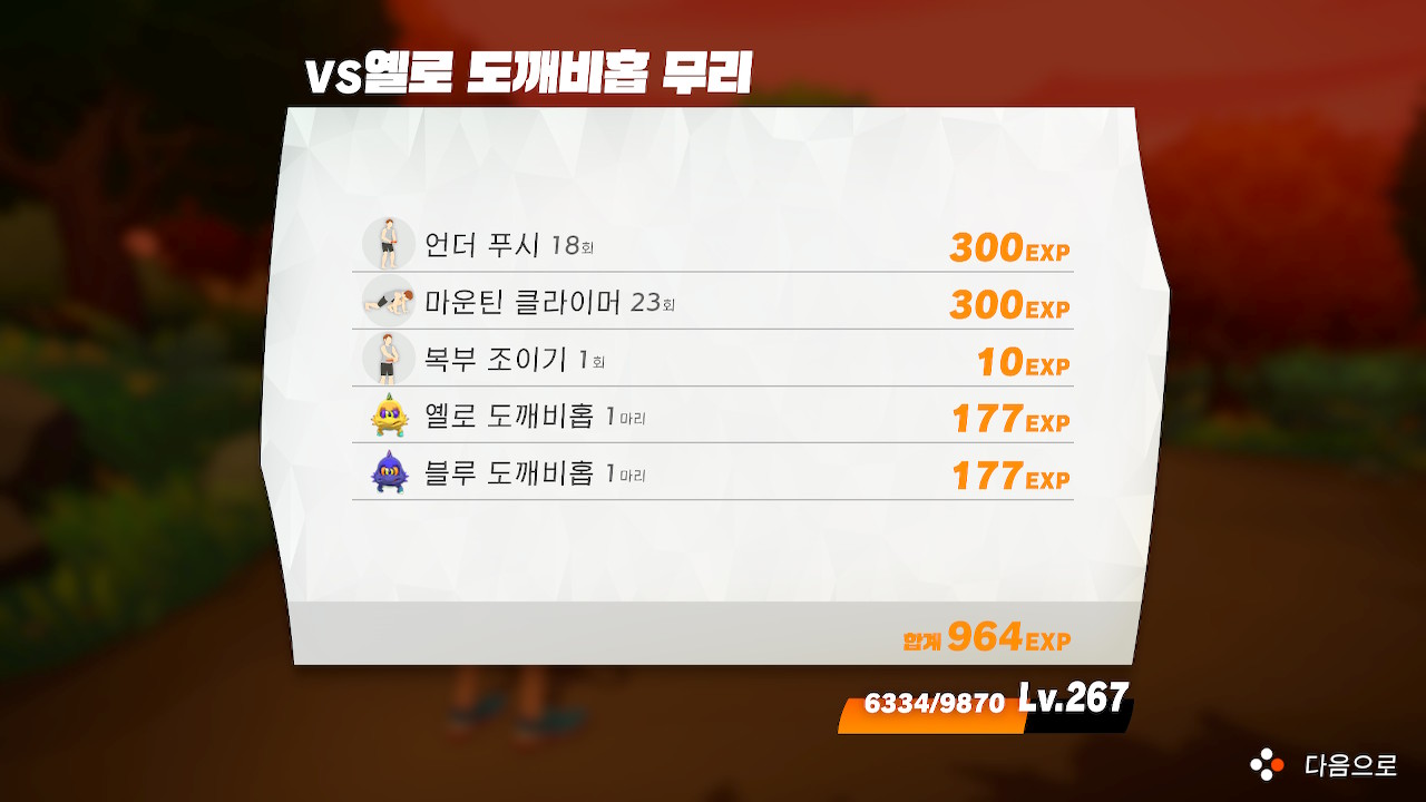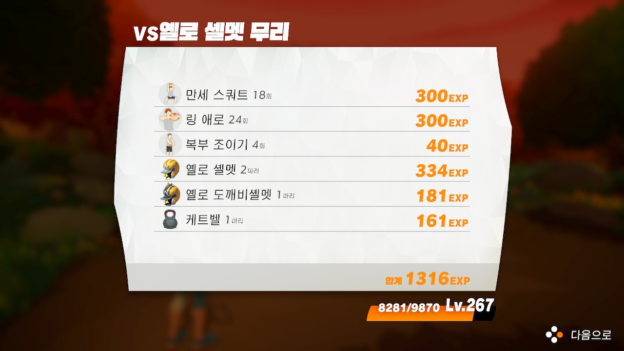 먼저 만난 옐로 도깨비홉 무리를 물리쳤다.