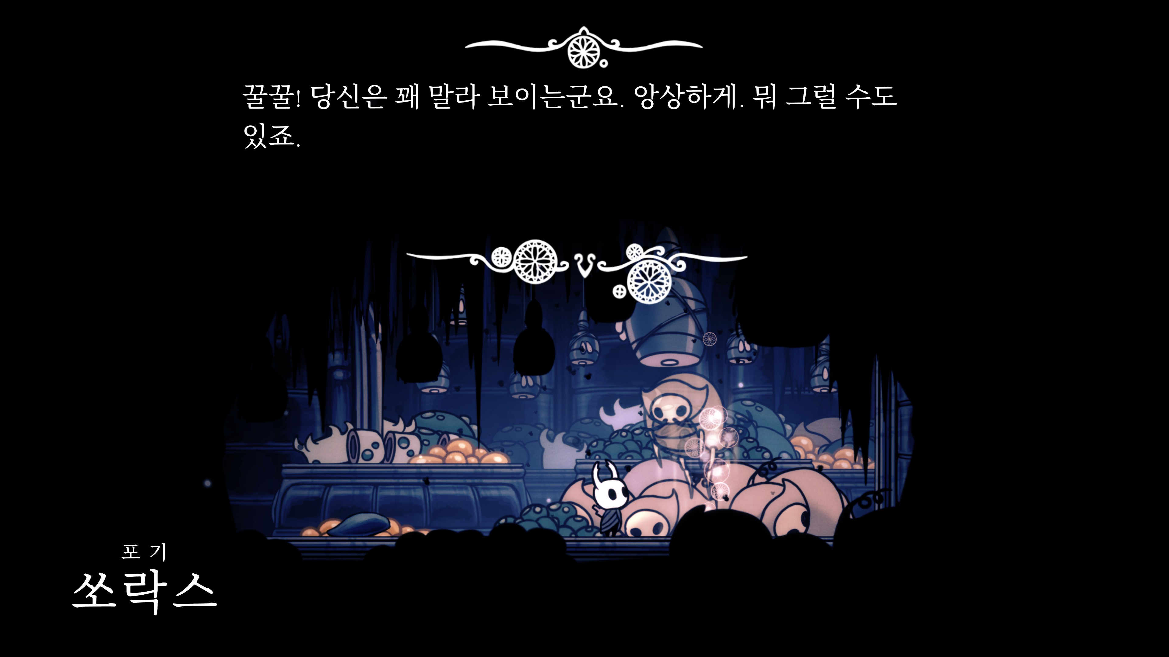 실크송이 나왔다는 소식에 스팀 라이브러리에 잠들어 있던 할로우 나이트를 설치했다.