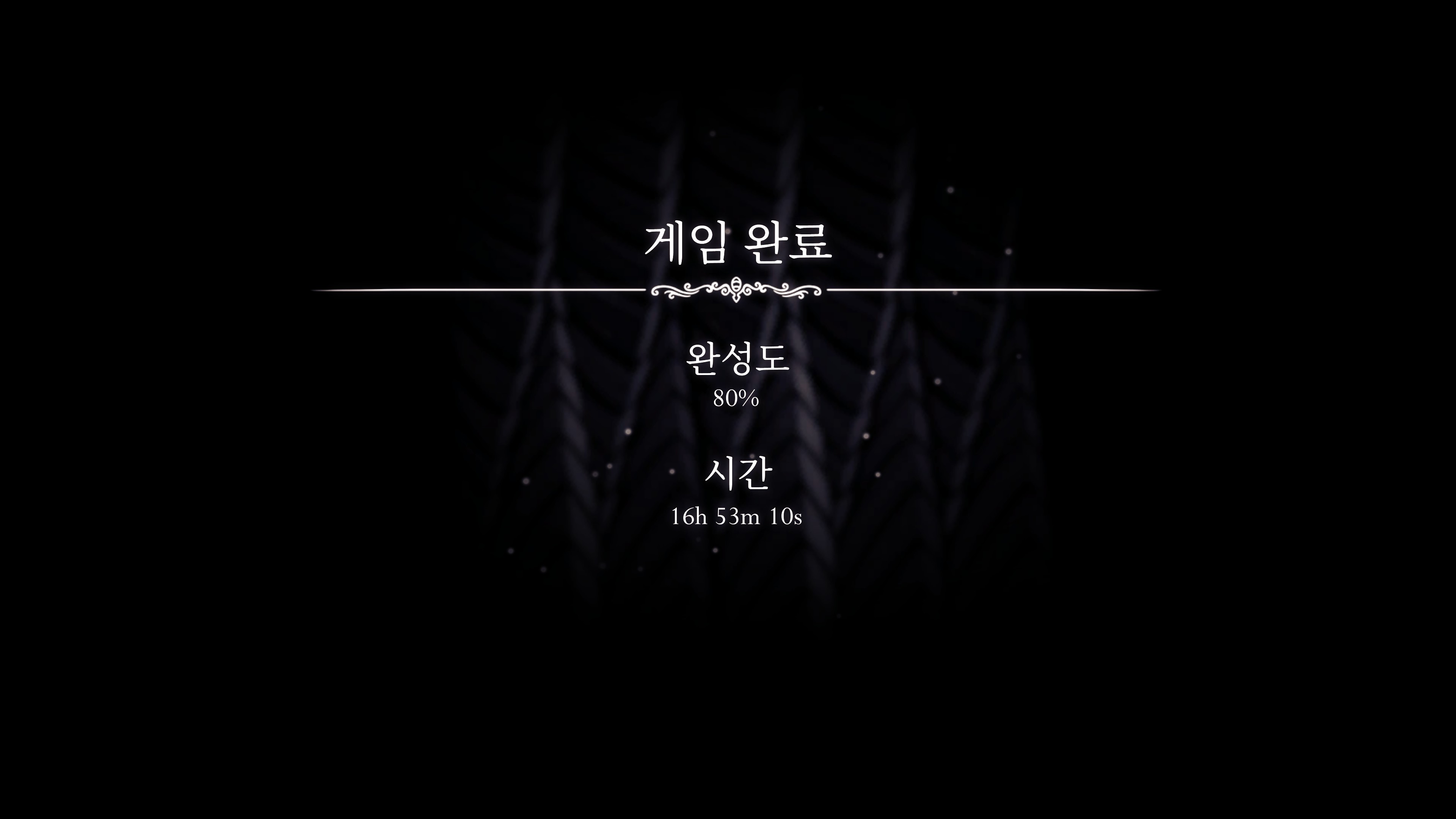 20시간 55분, 91%로 할로우 나이트를 마무리했다.