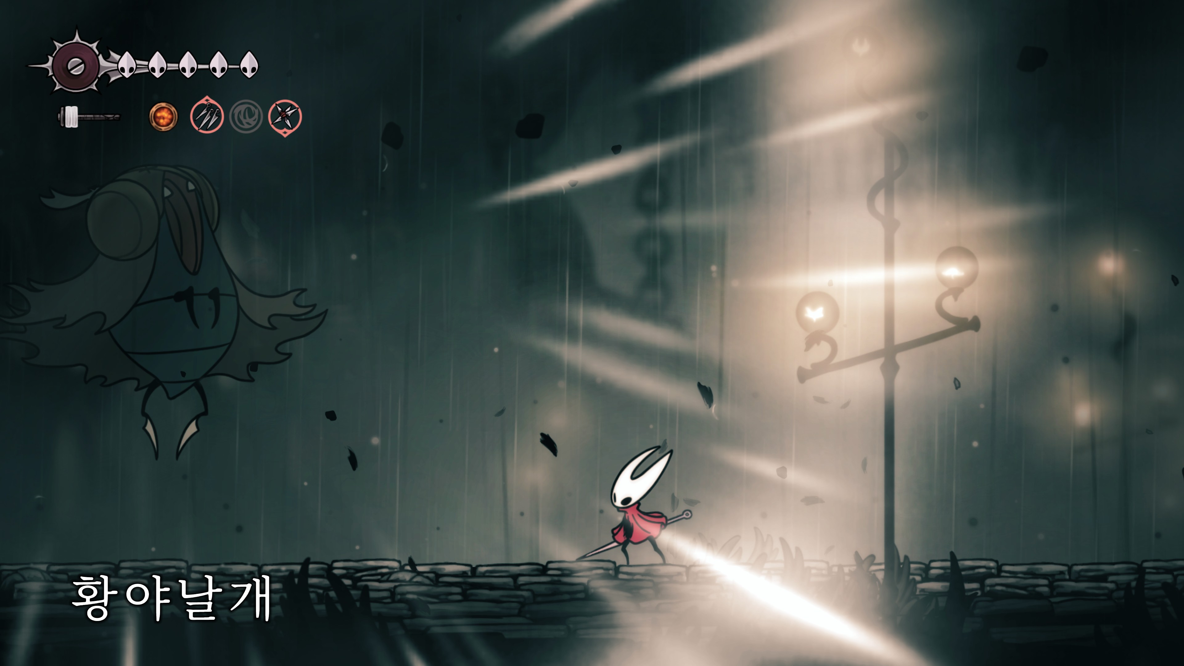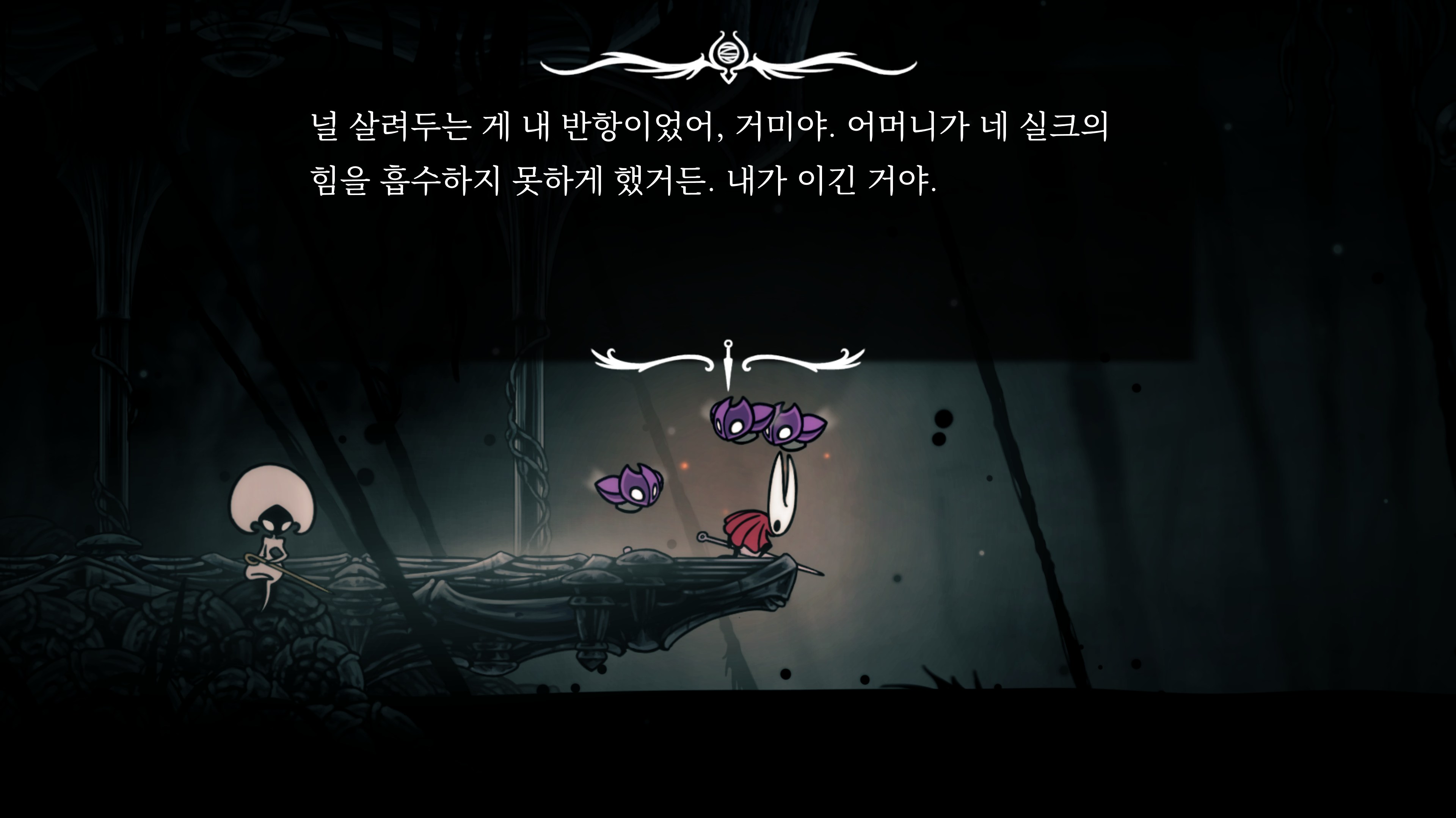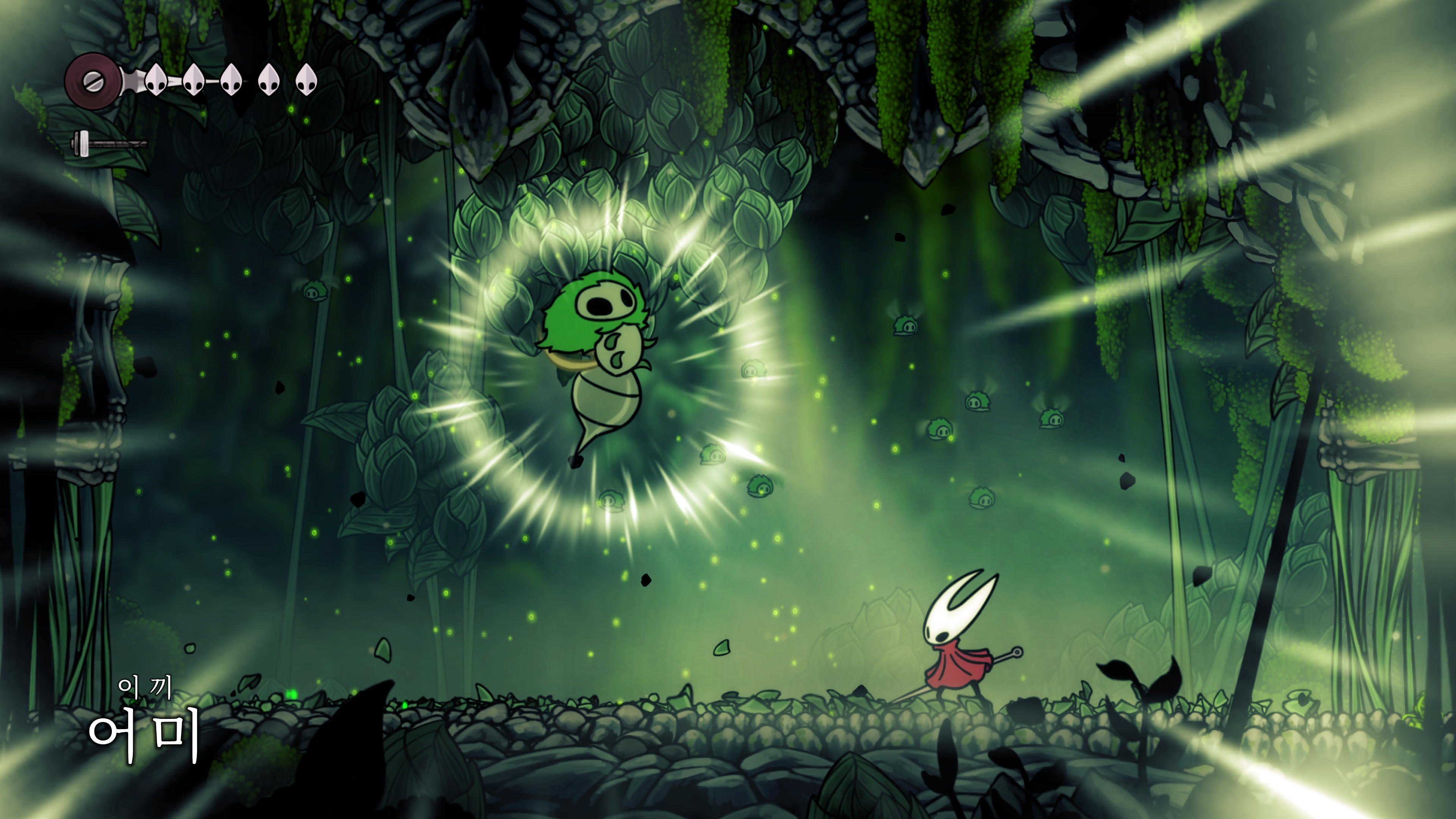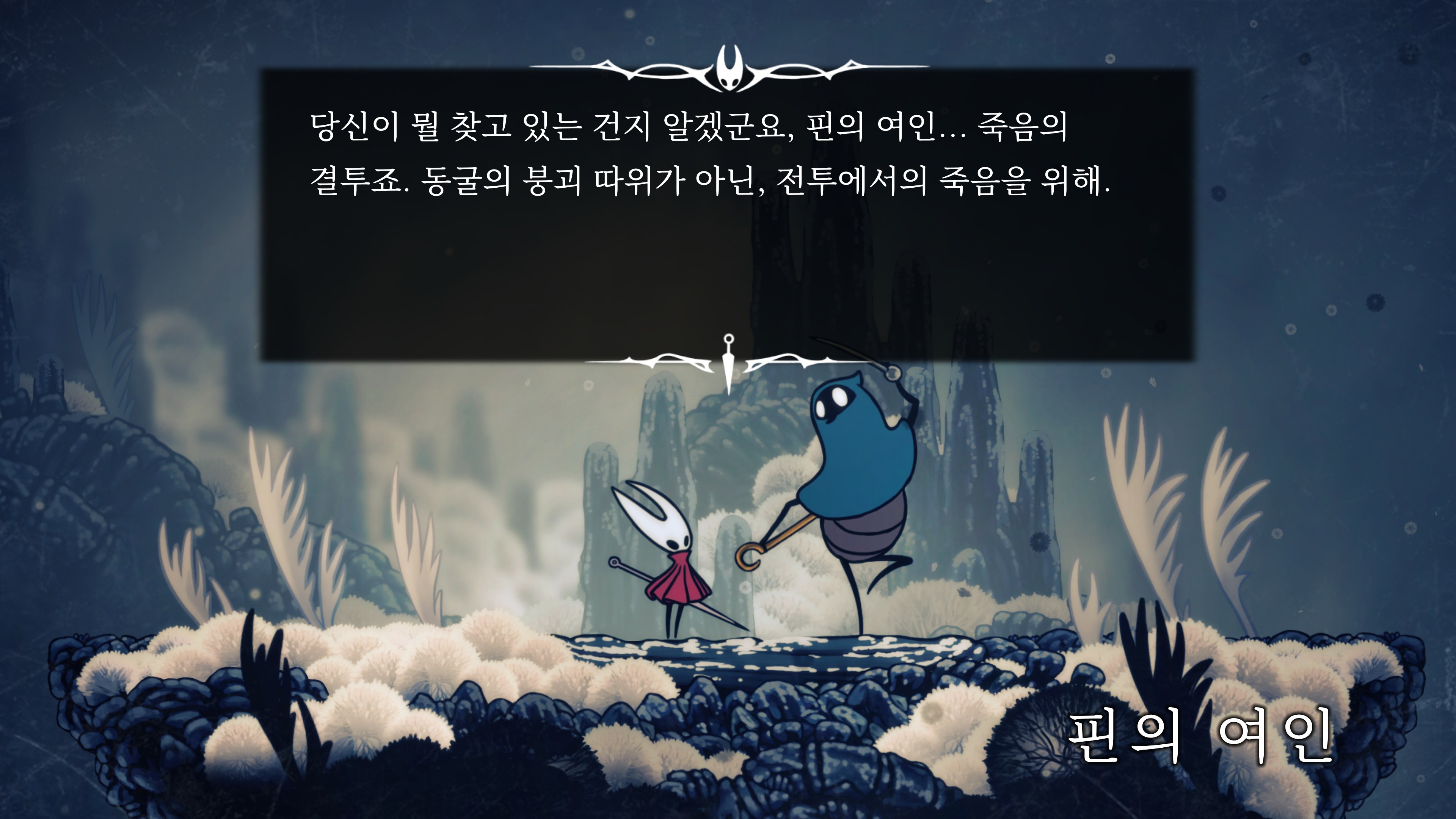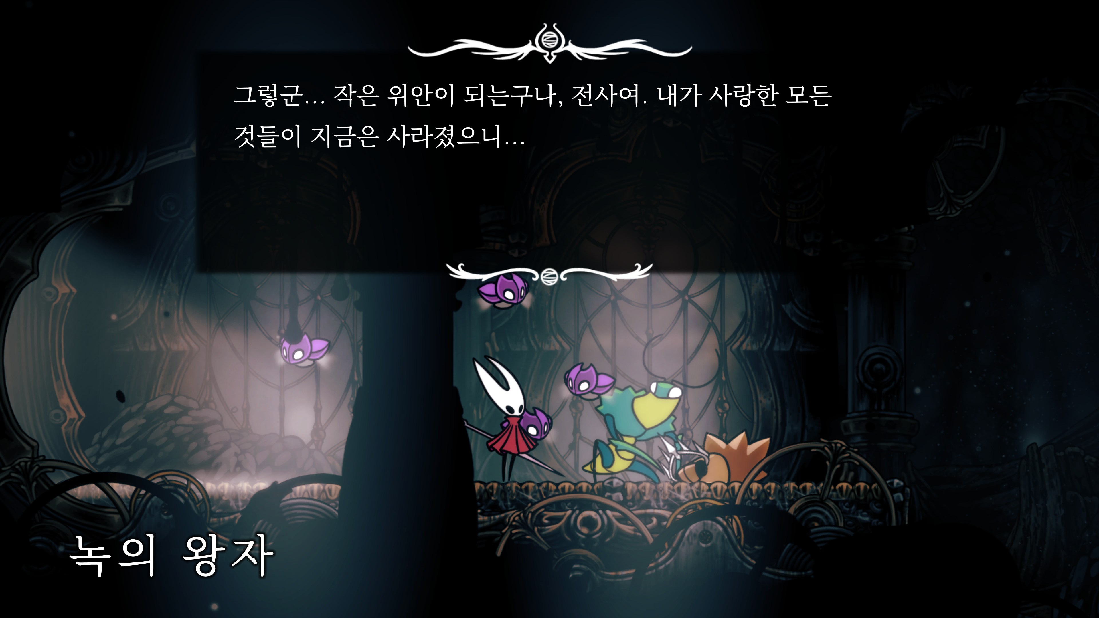 영원의 꽃 힘이 다 되어가는 순간, 할로우 나이트 기사가 나타나서 호넷과 레이스를 구출해 줬다.