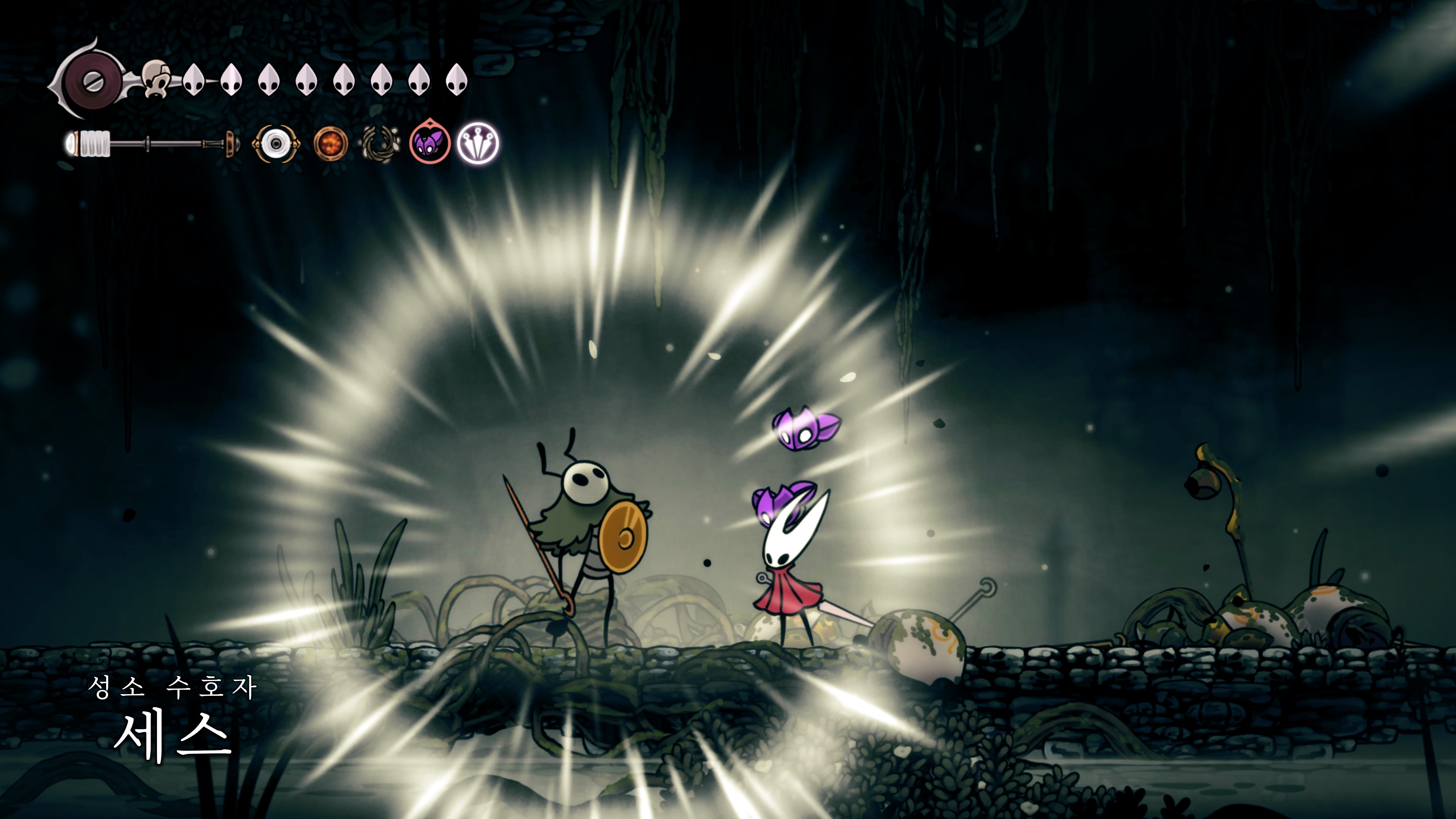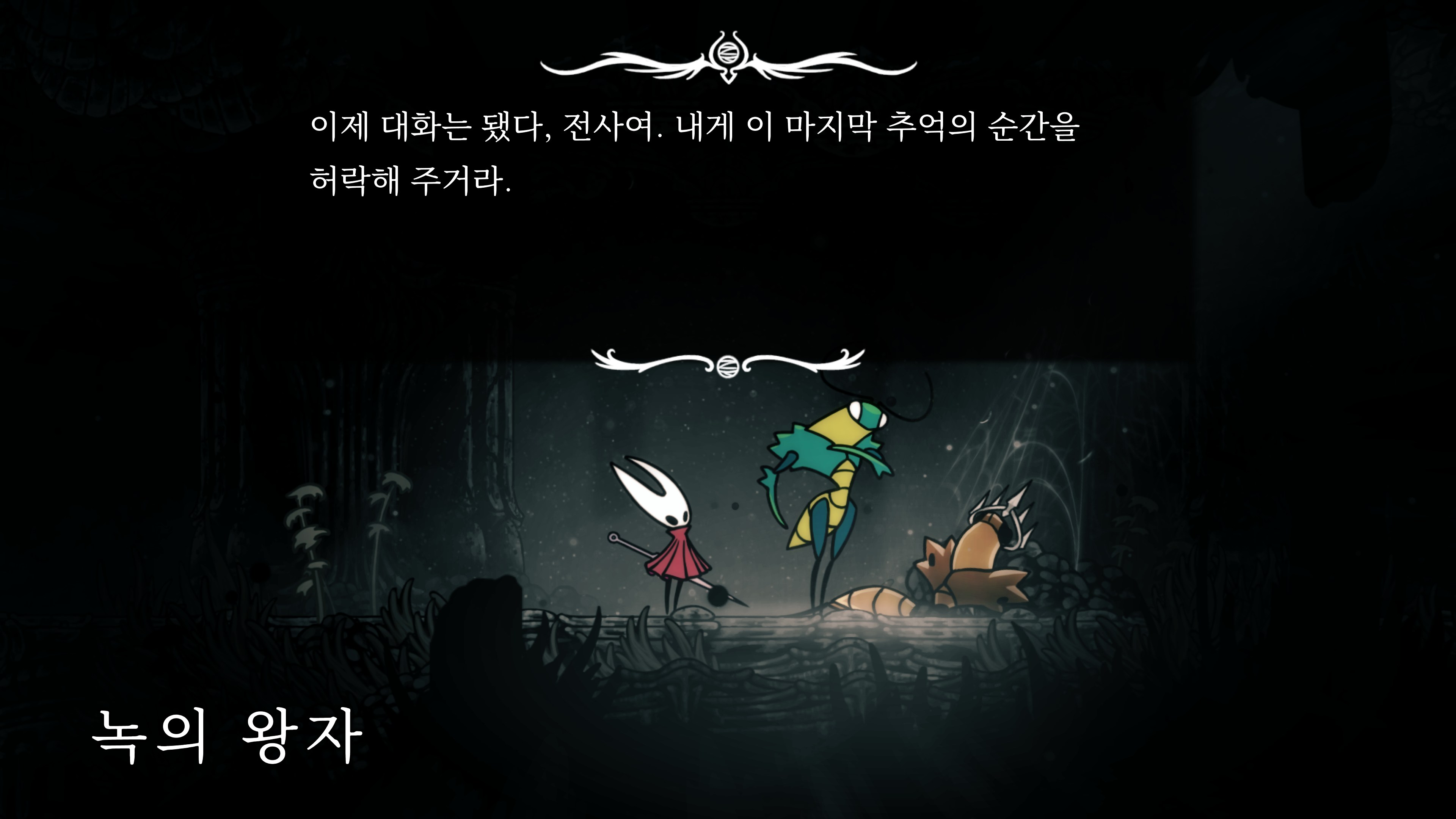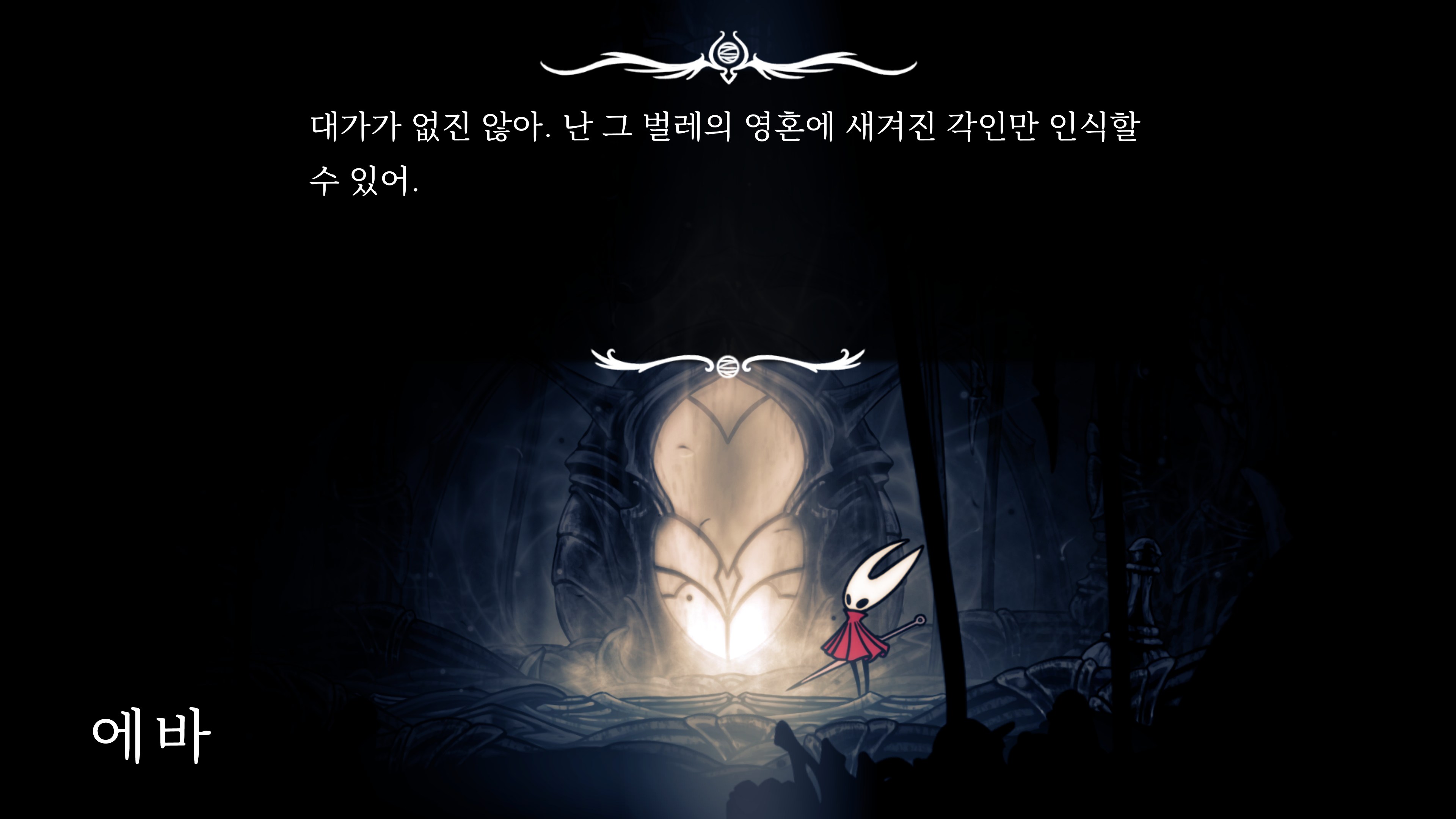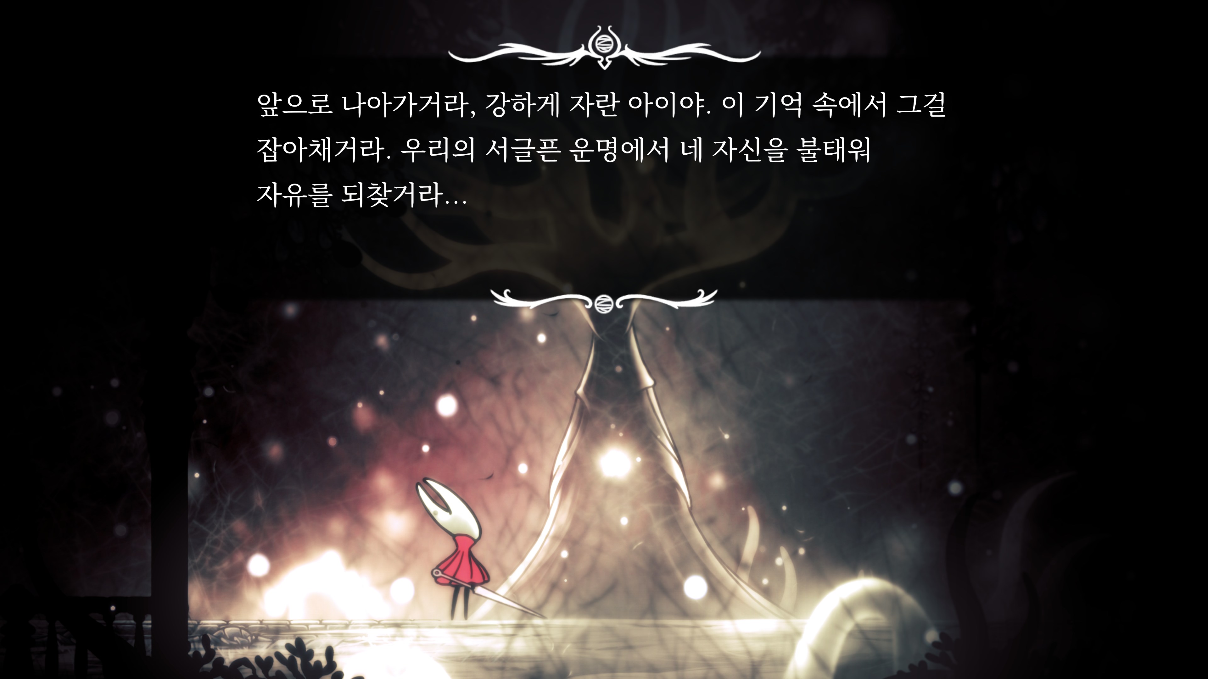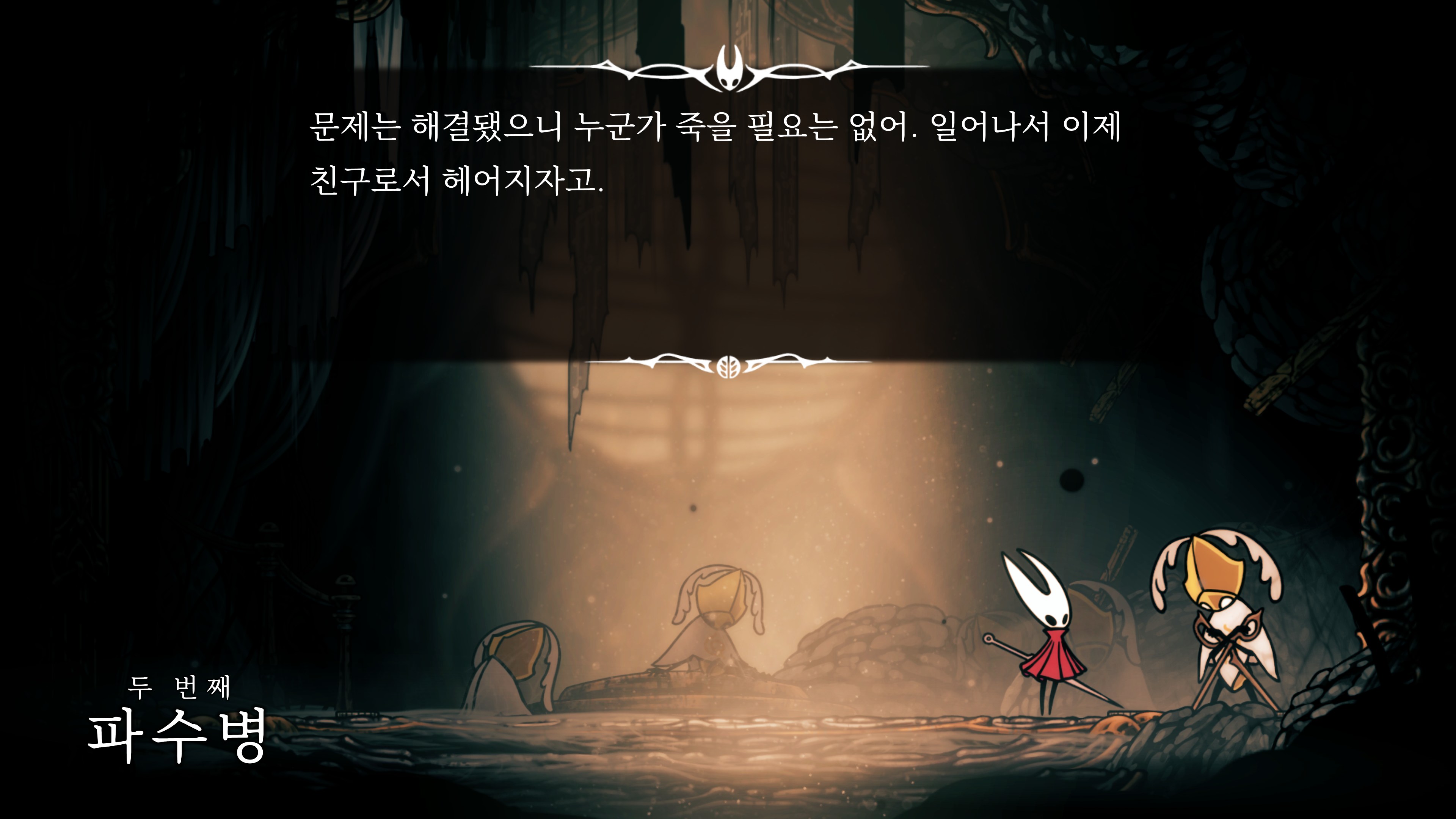 영원의 꽃 힘이 다 되어가는 순간, 할로우 나이트 기사가 나타나서 호넷과 레이스를 구출해 줬다.