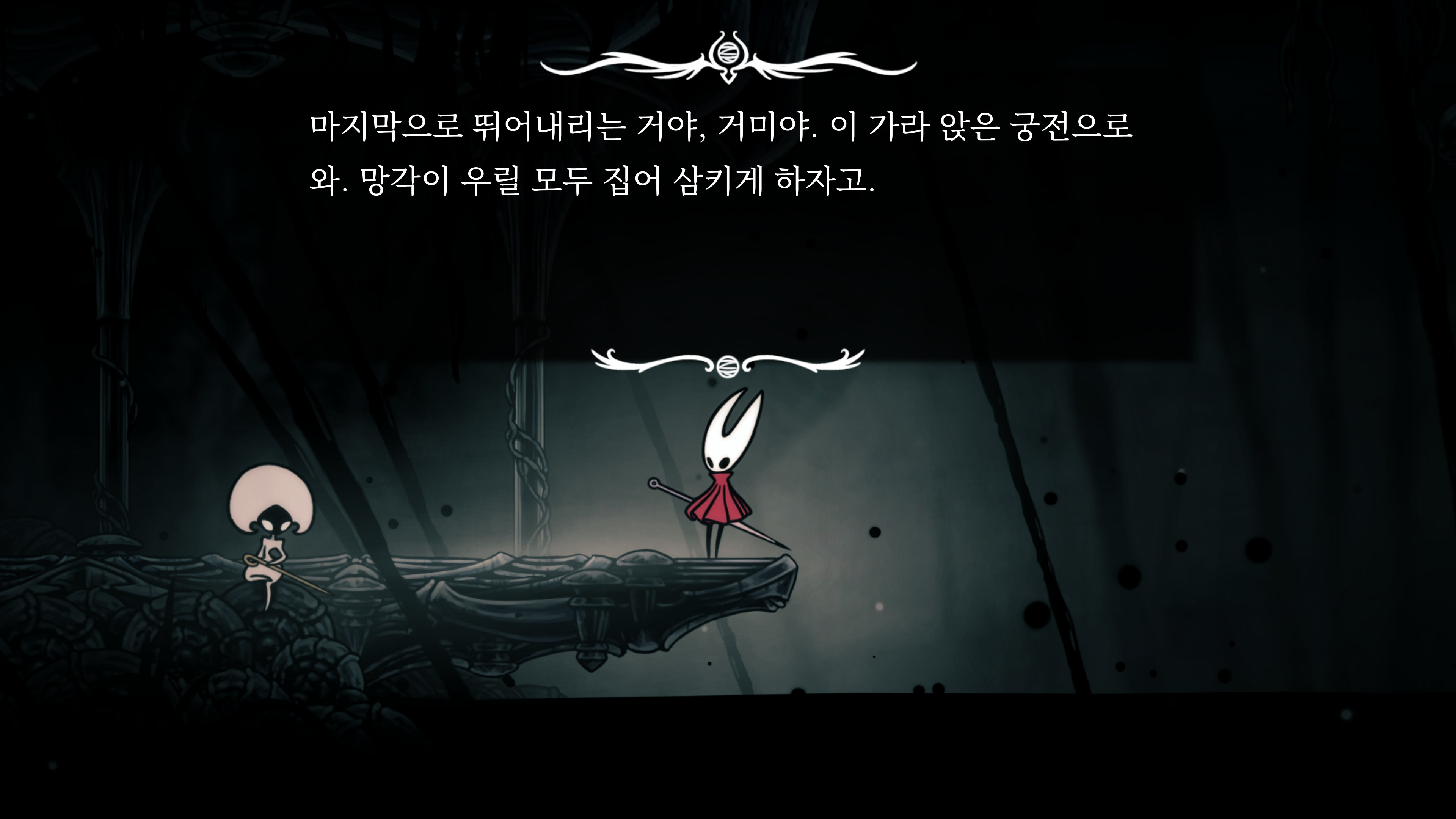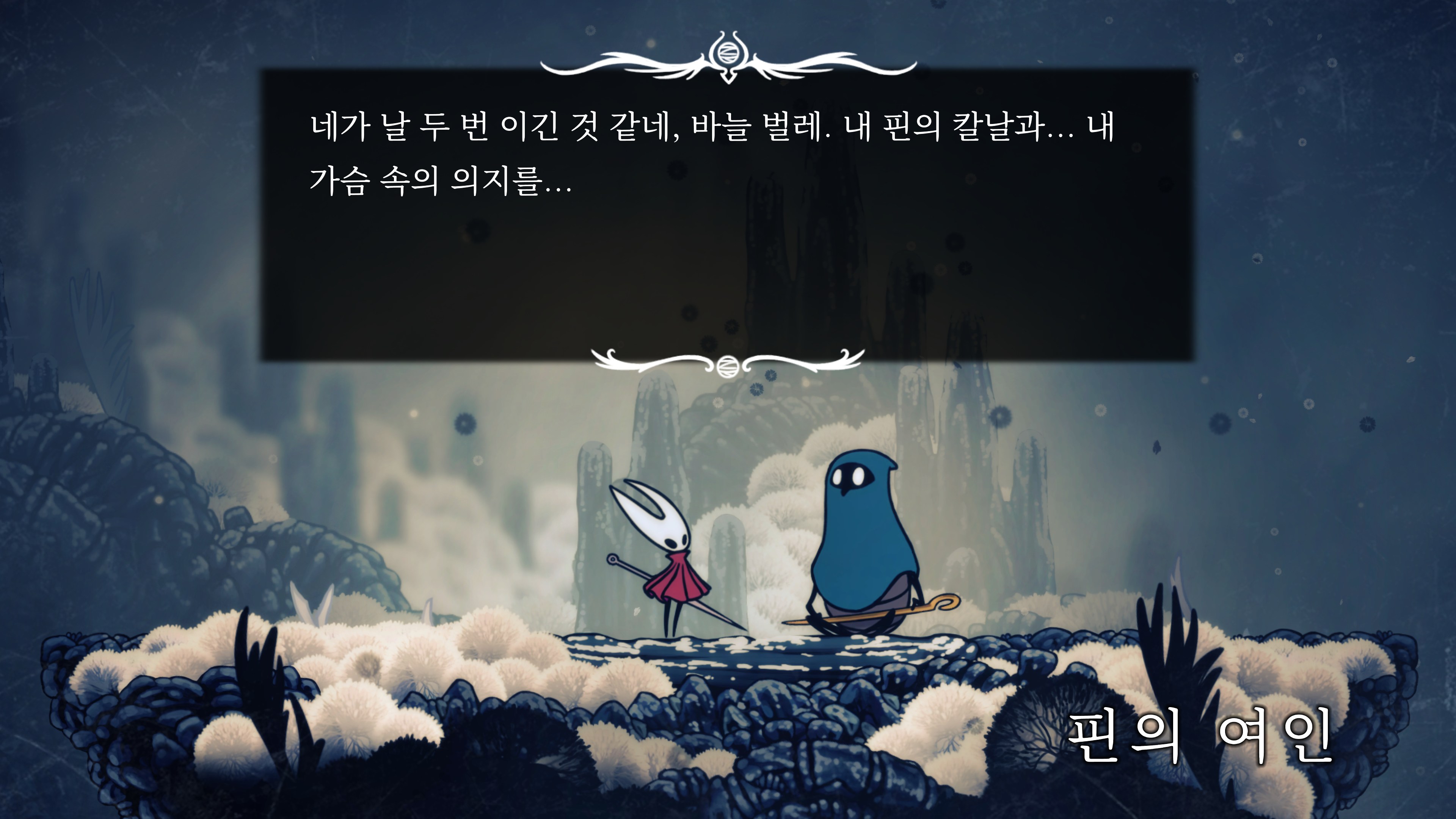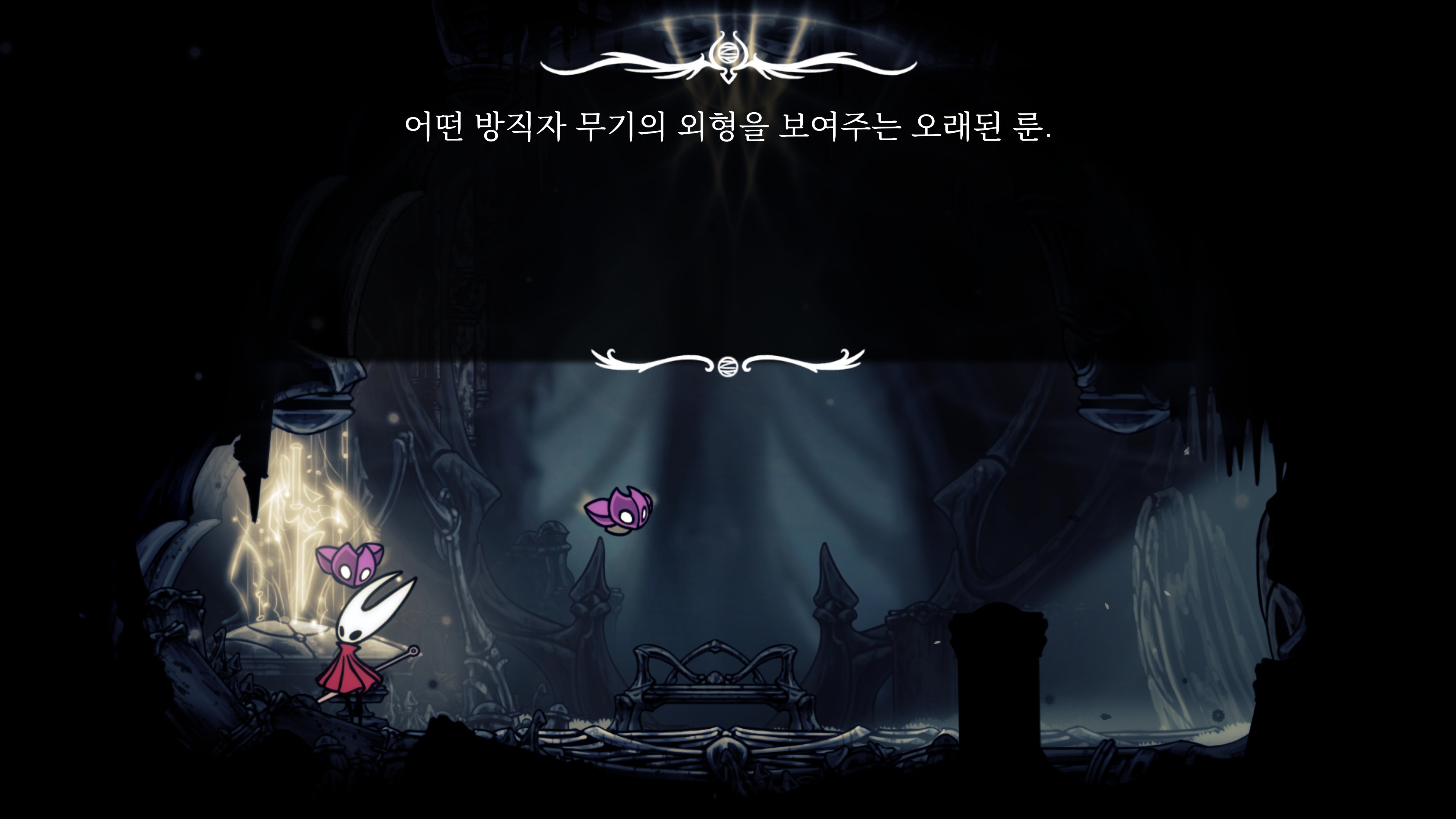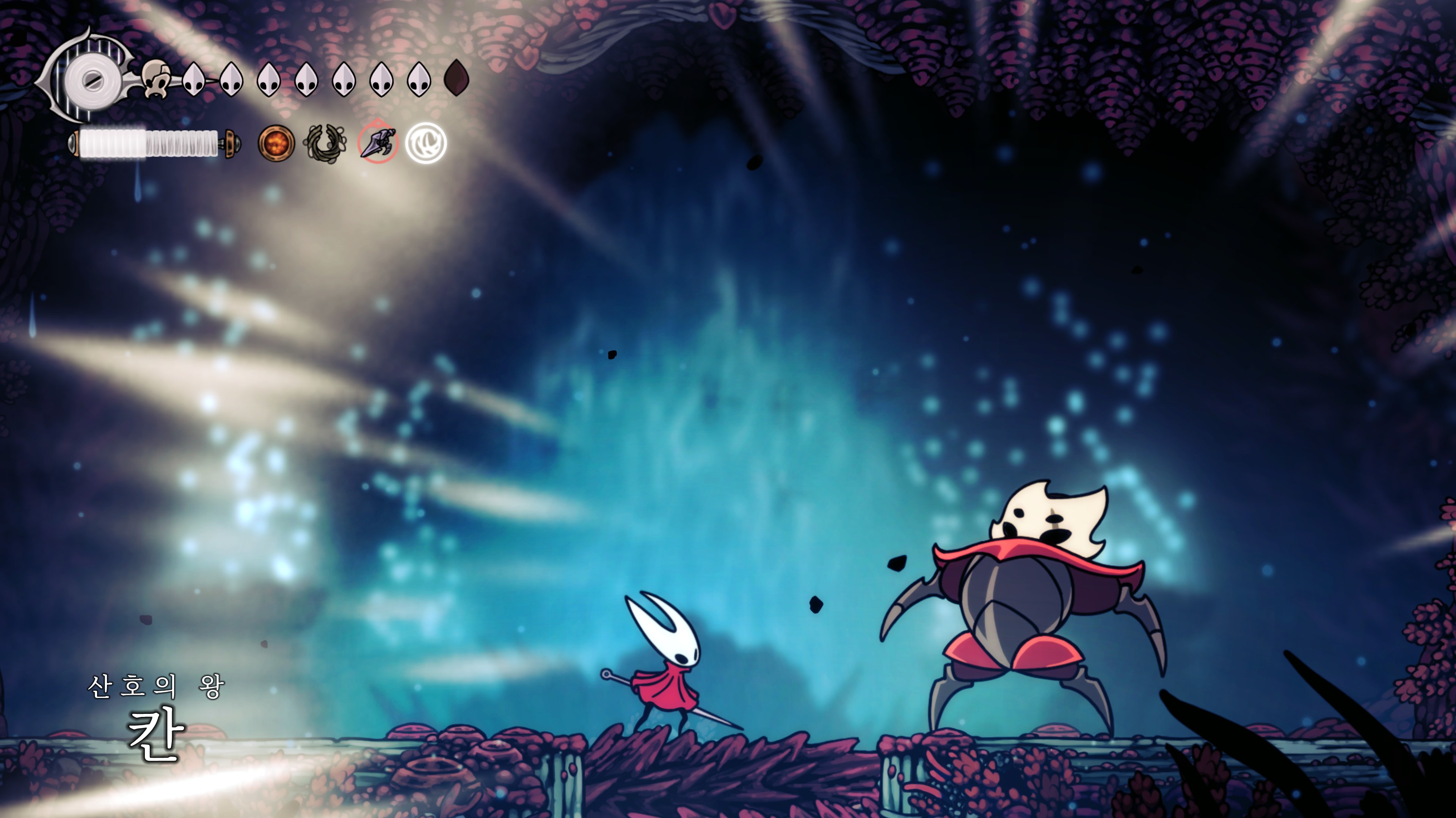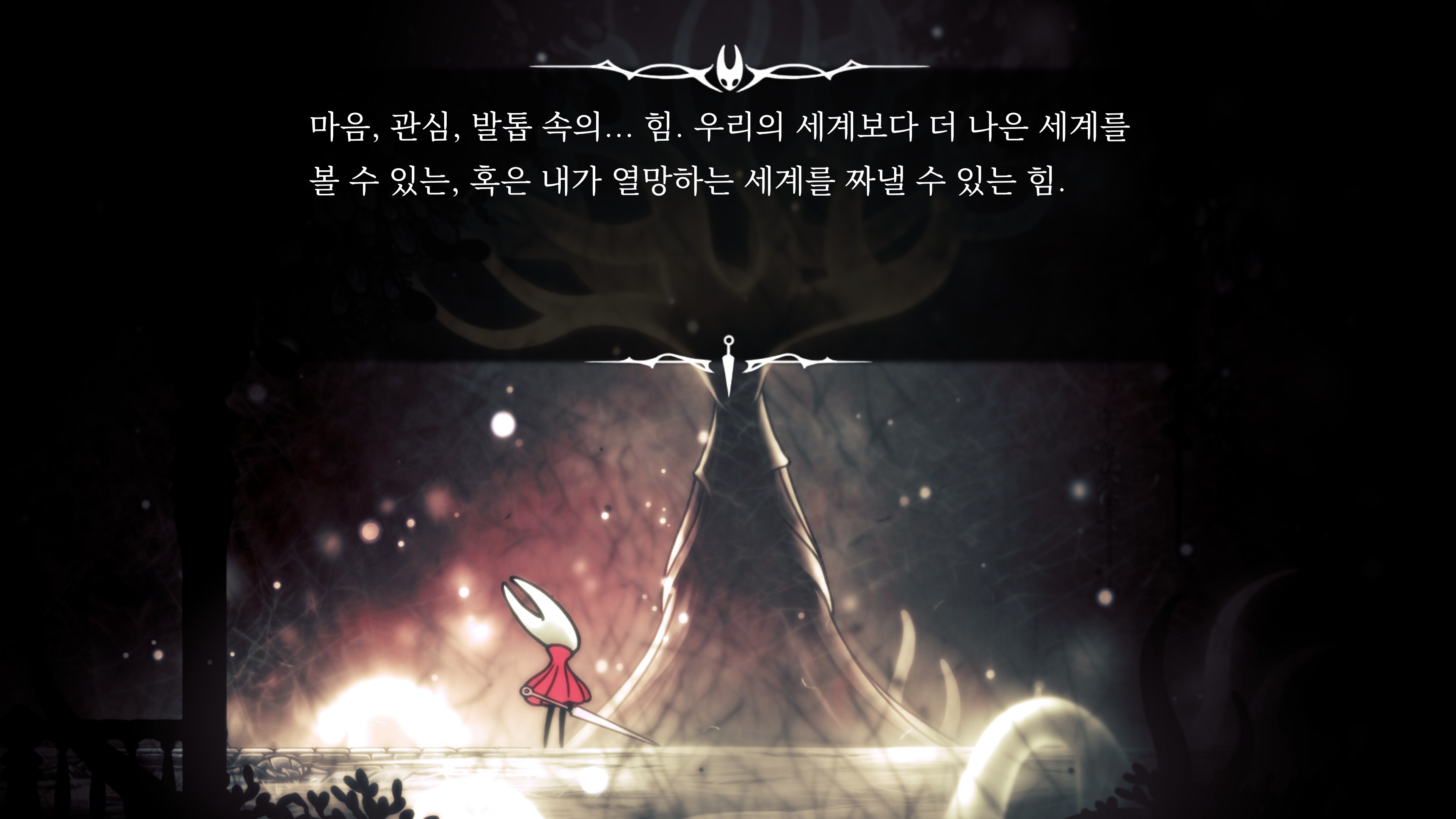 영원의 꽃 힘이 다 되어가는 순간, 할로우 나이트 기사가 나타나서 호넷과 레이스를 구출해 줬다.