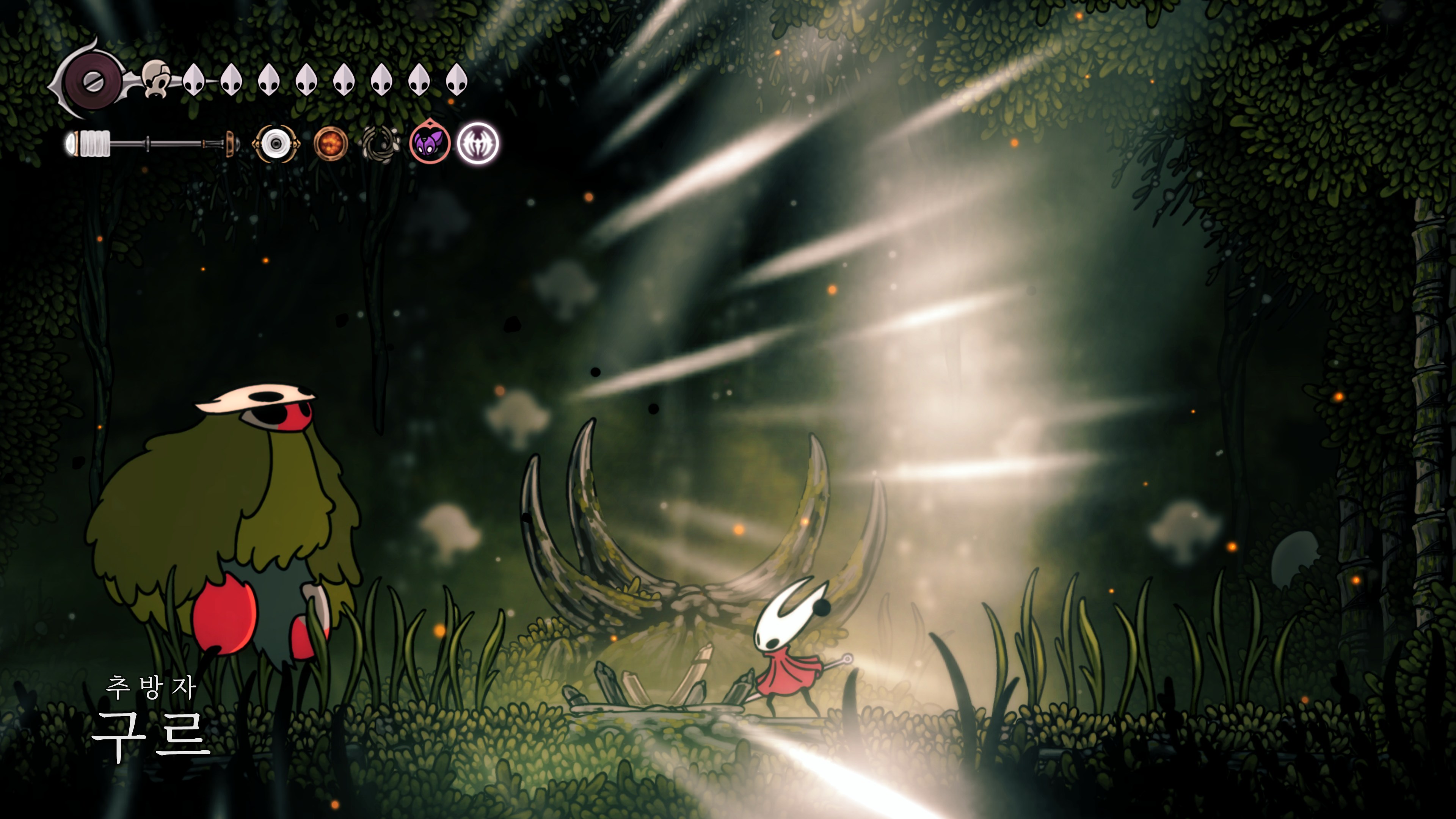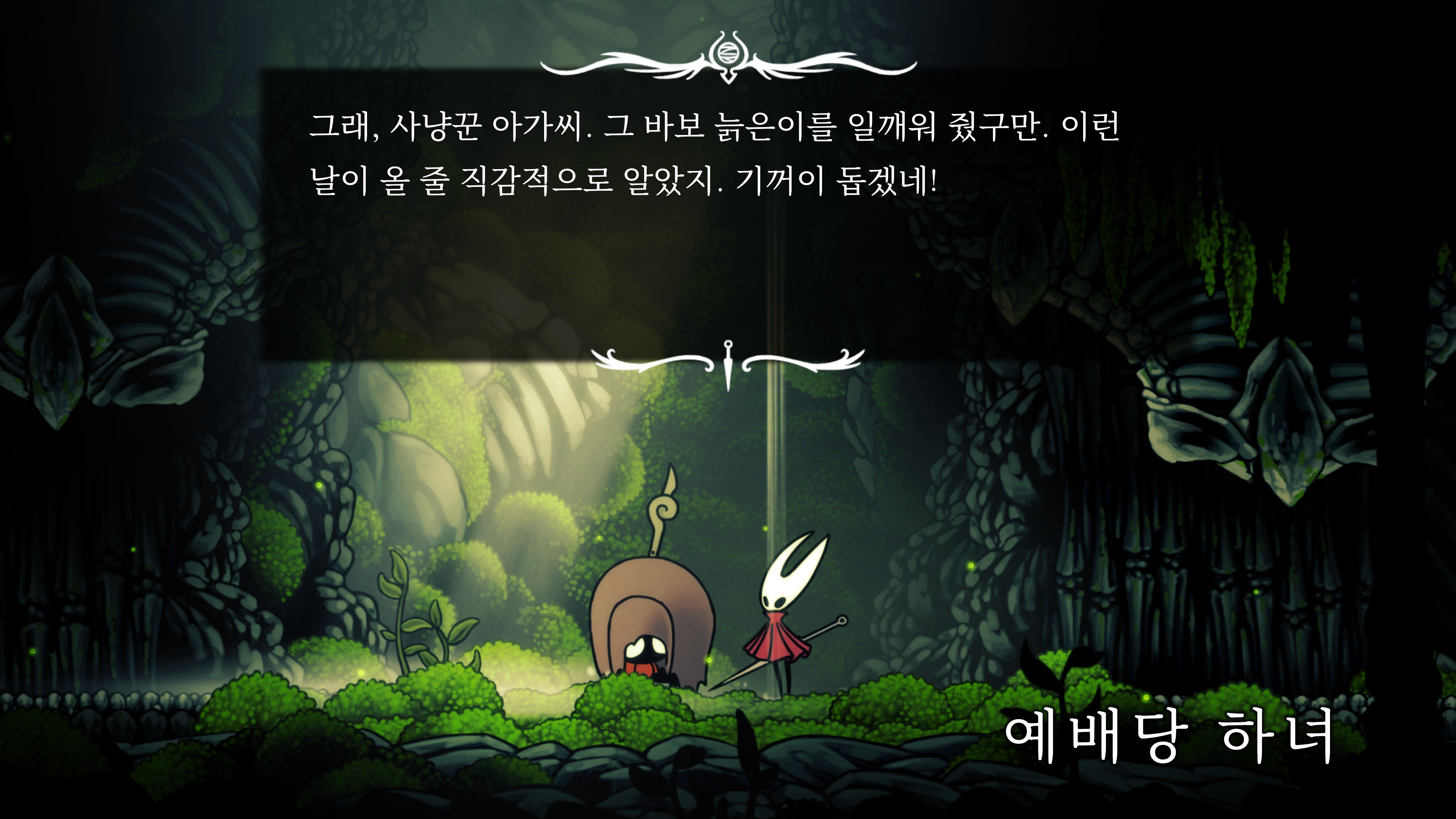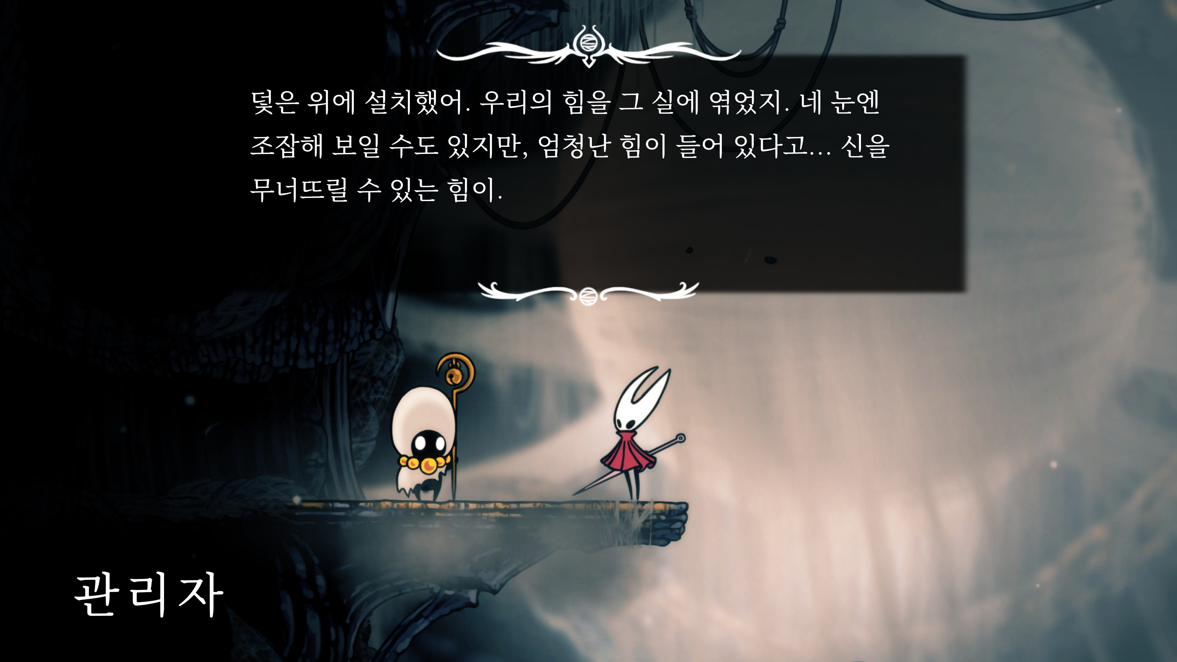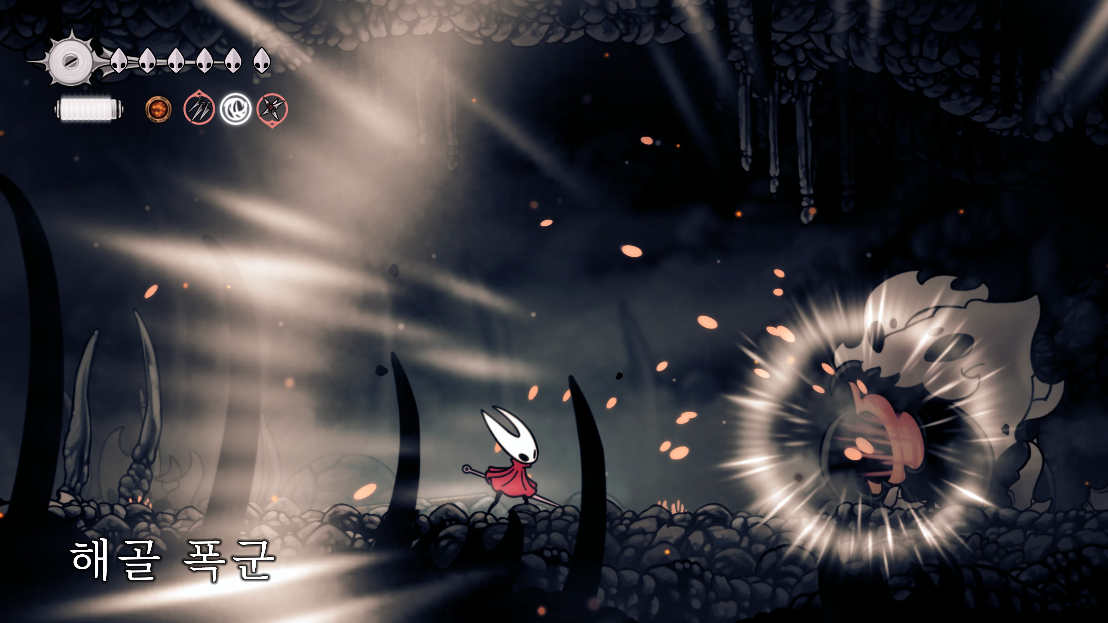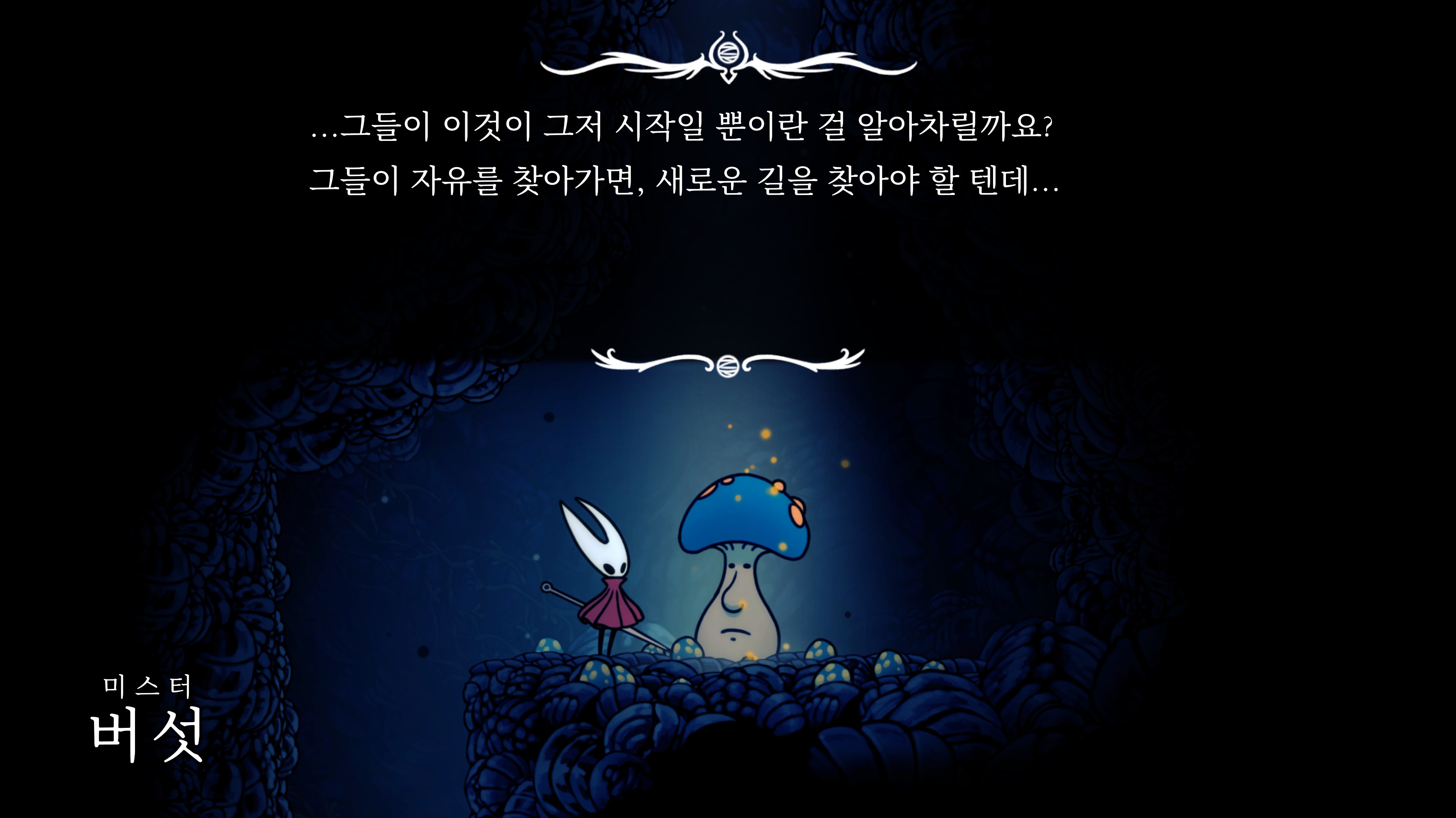 영원의 꽃 힘이 다 되어가는 순간, 할로우 나이트 기사가 나타나서 호넷과 레이스를 구출해 줬다.