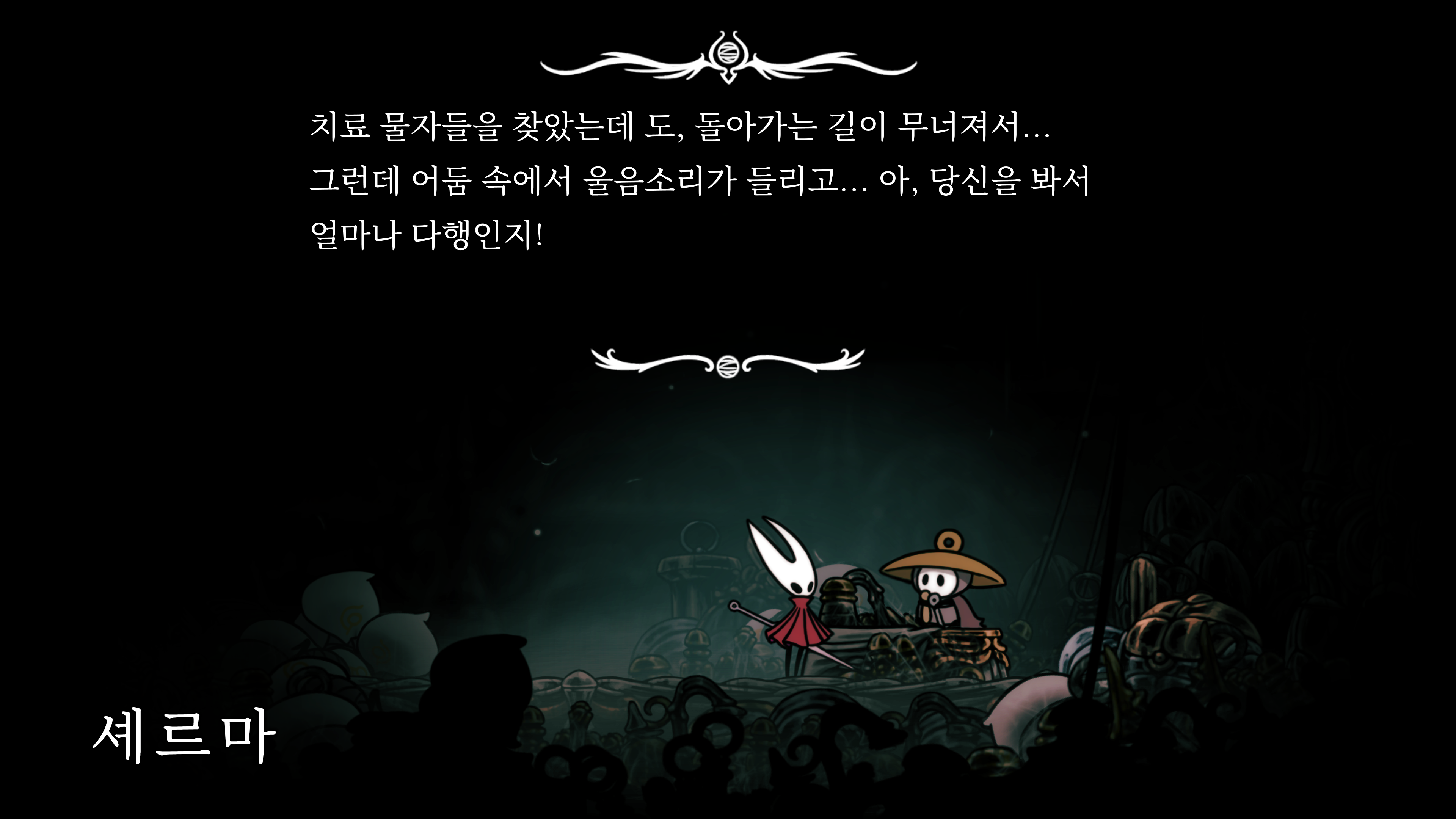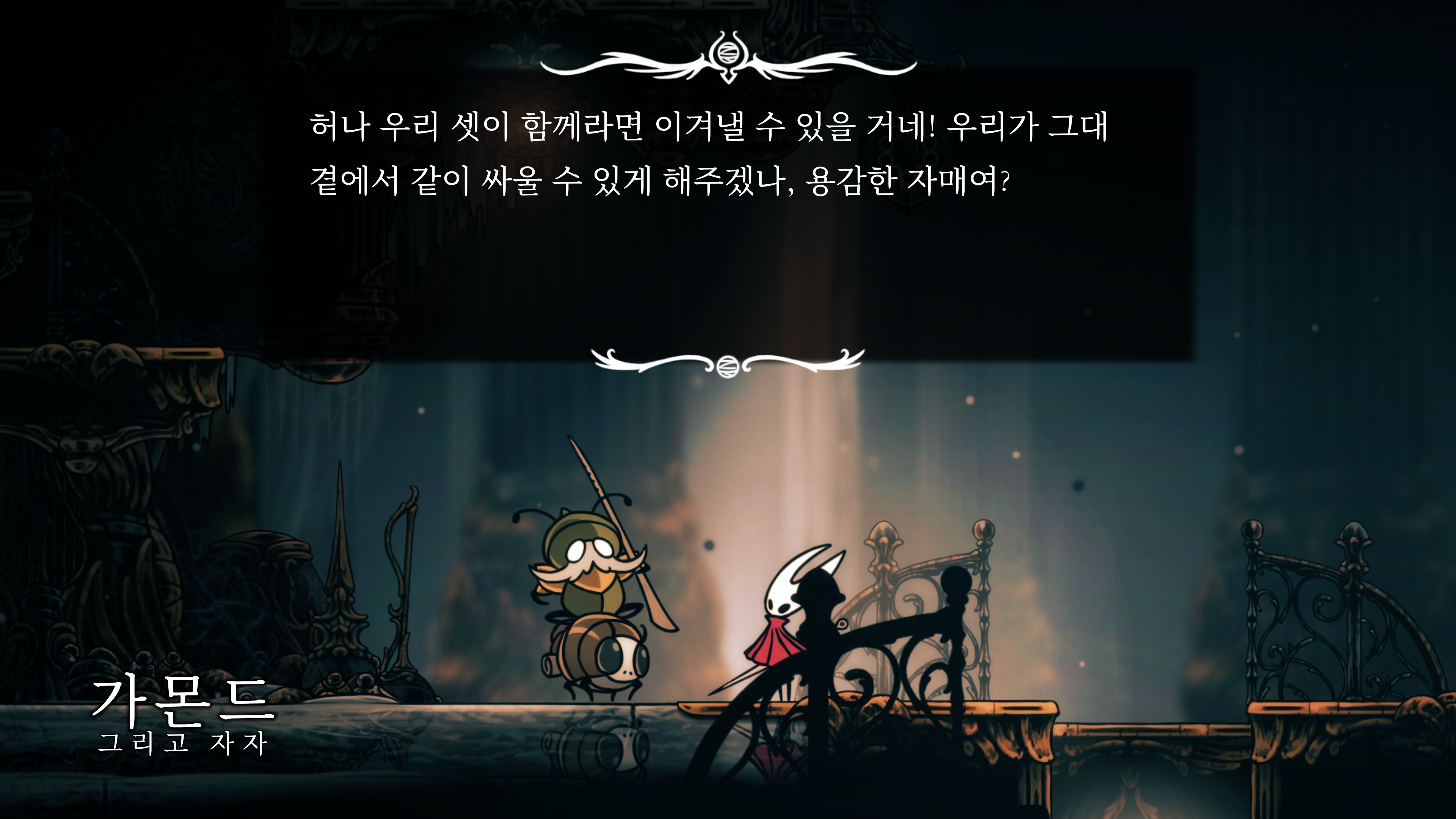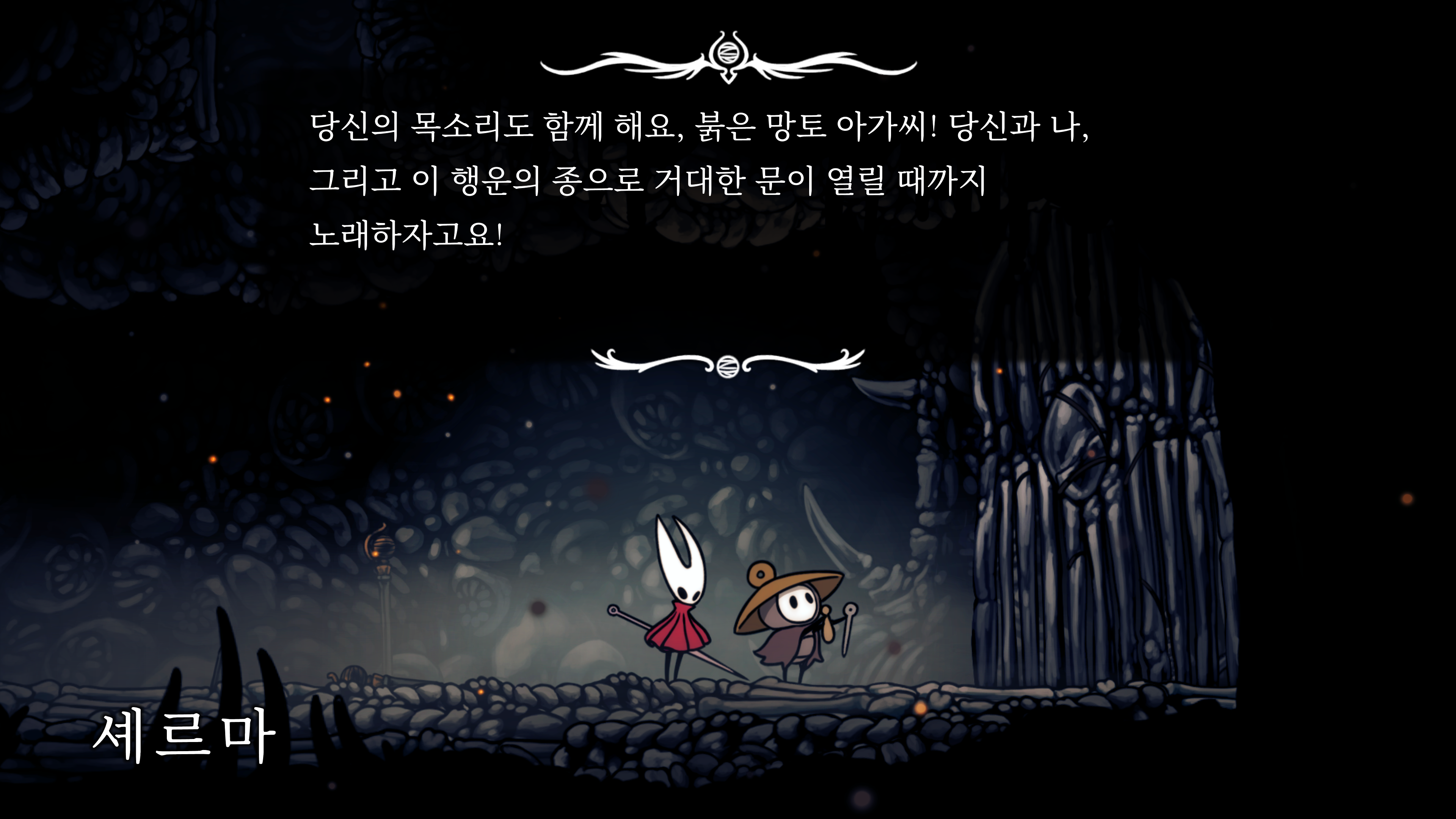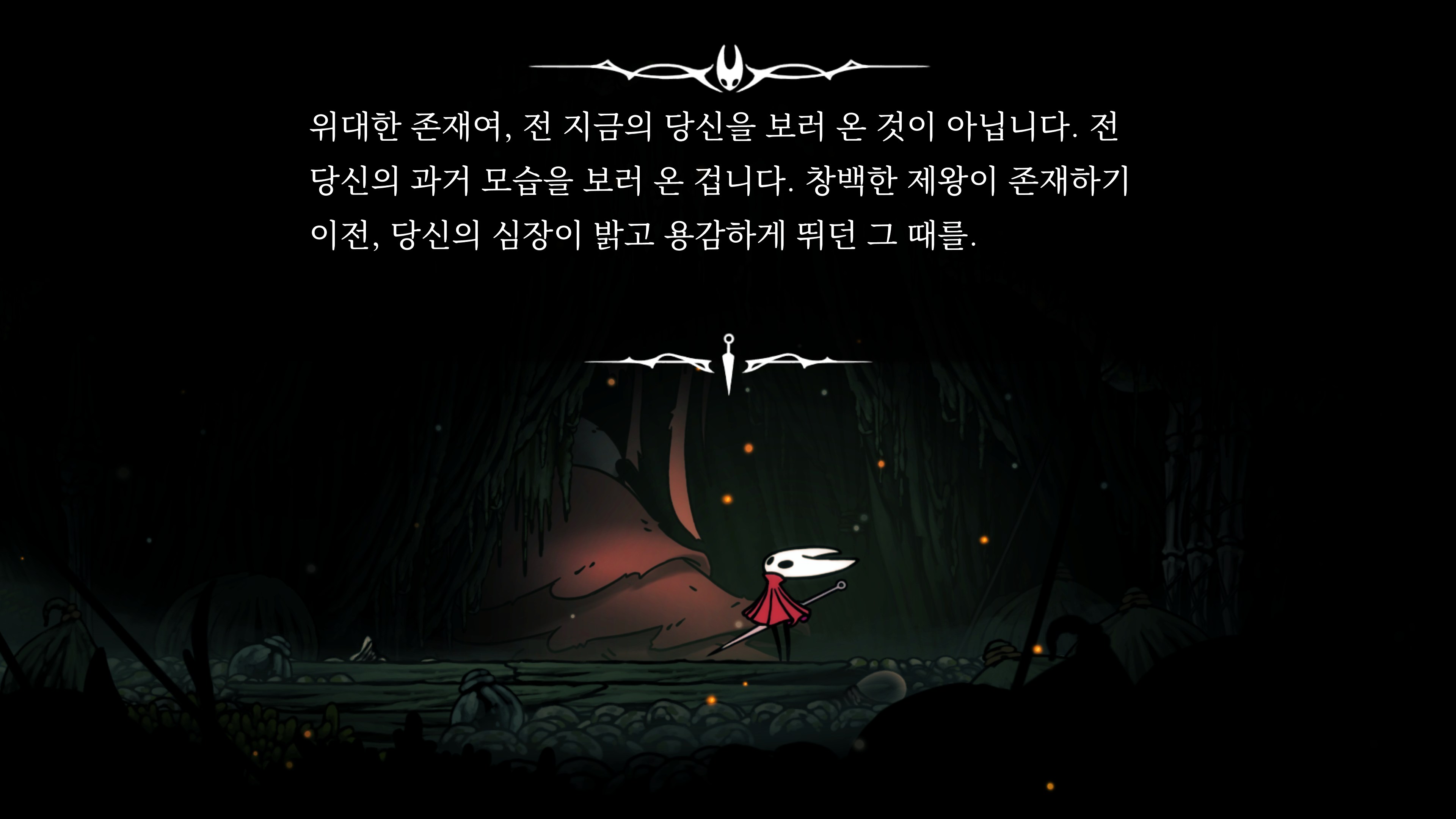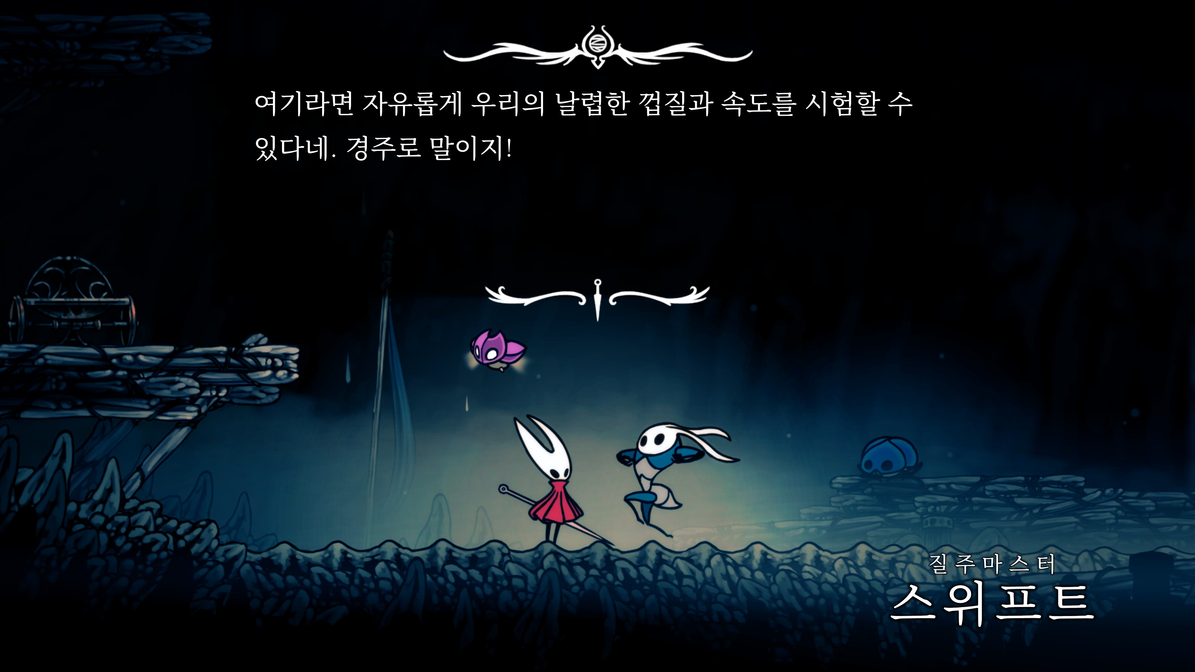 영원의 꽃 힘이 다 되어가는 순간, 할로우 나이트 기사가 나타나서 호넷과 레이스를 구출해 줬다.