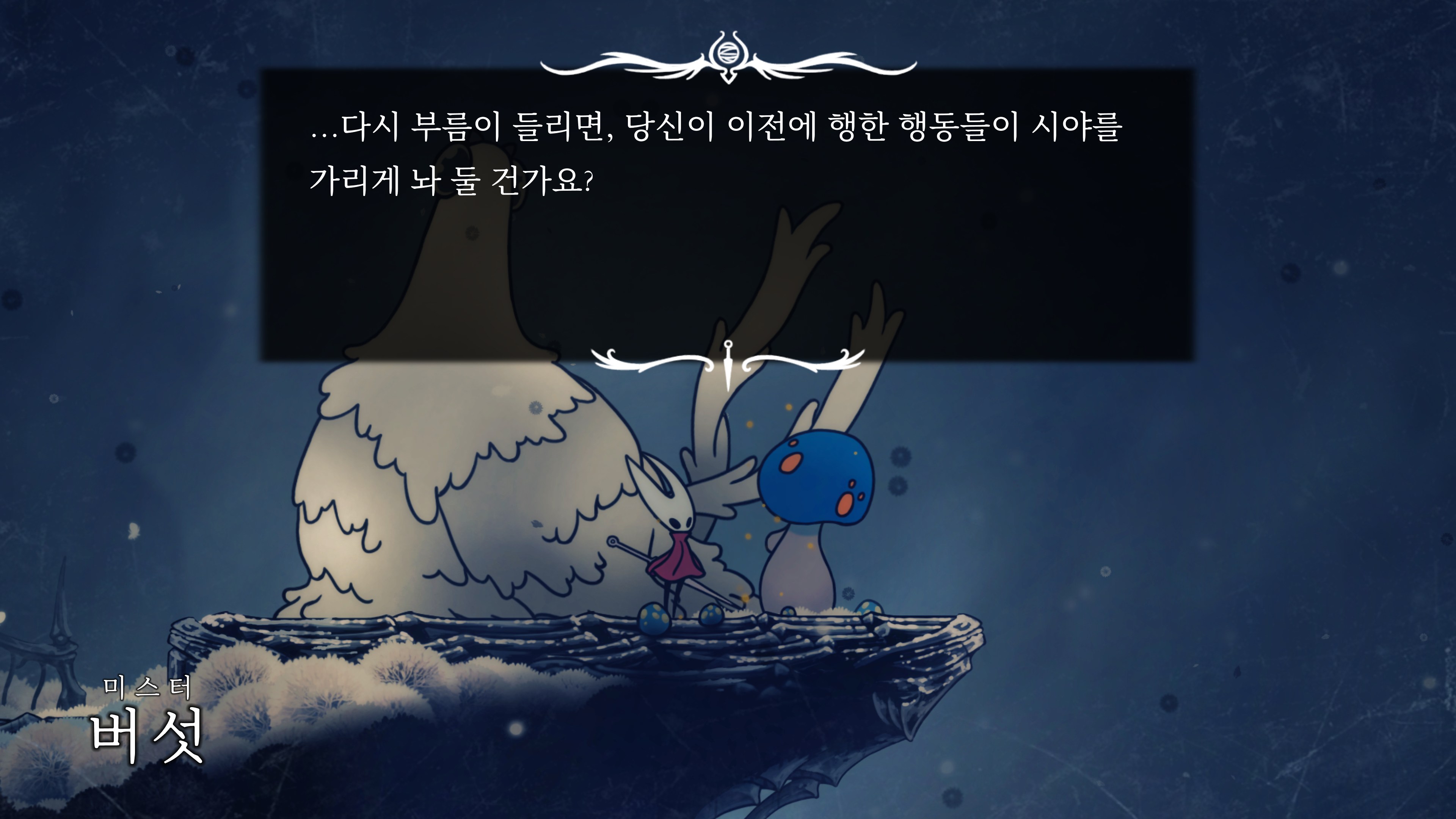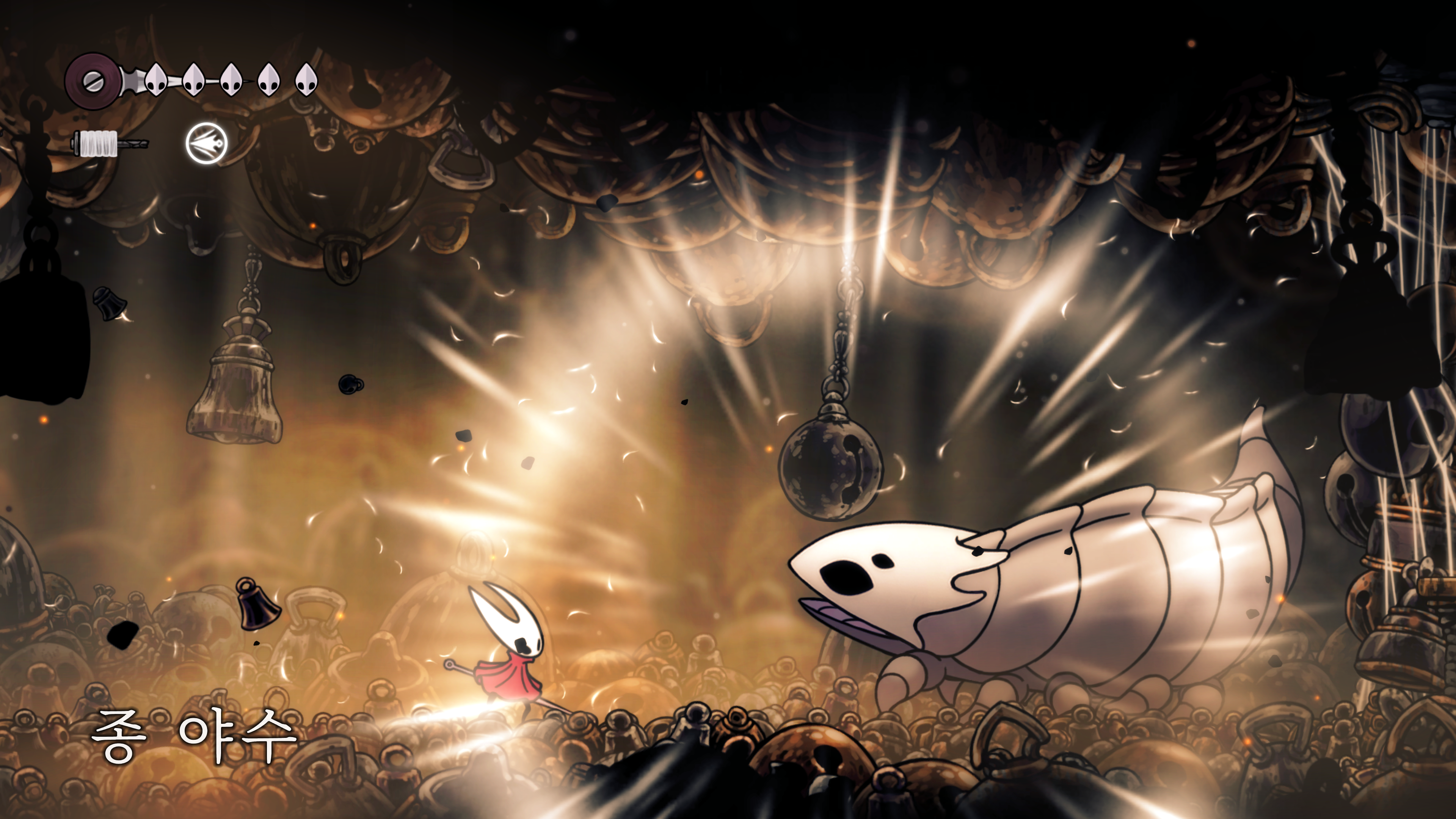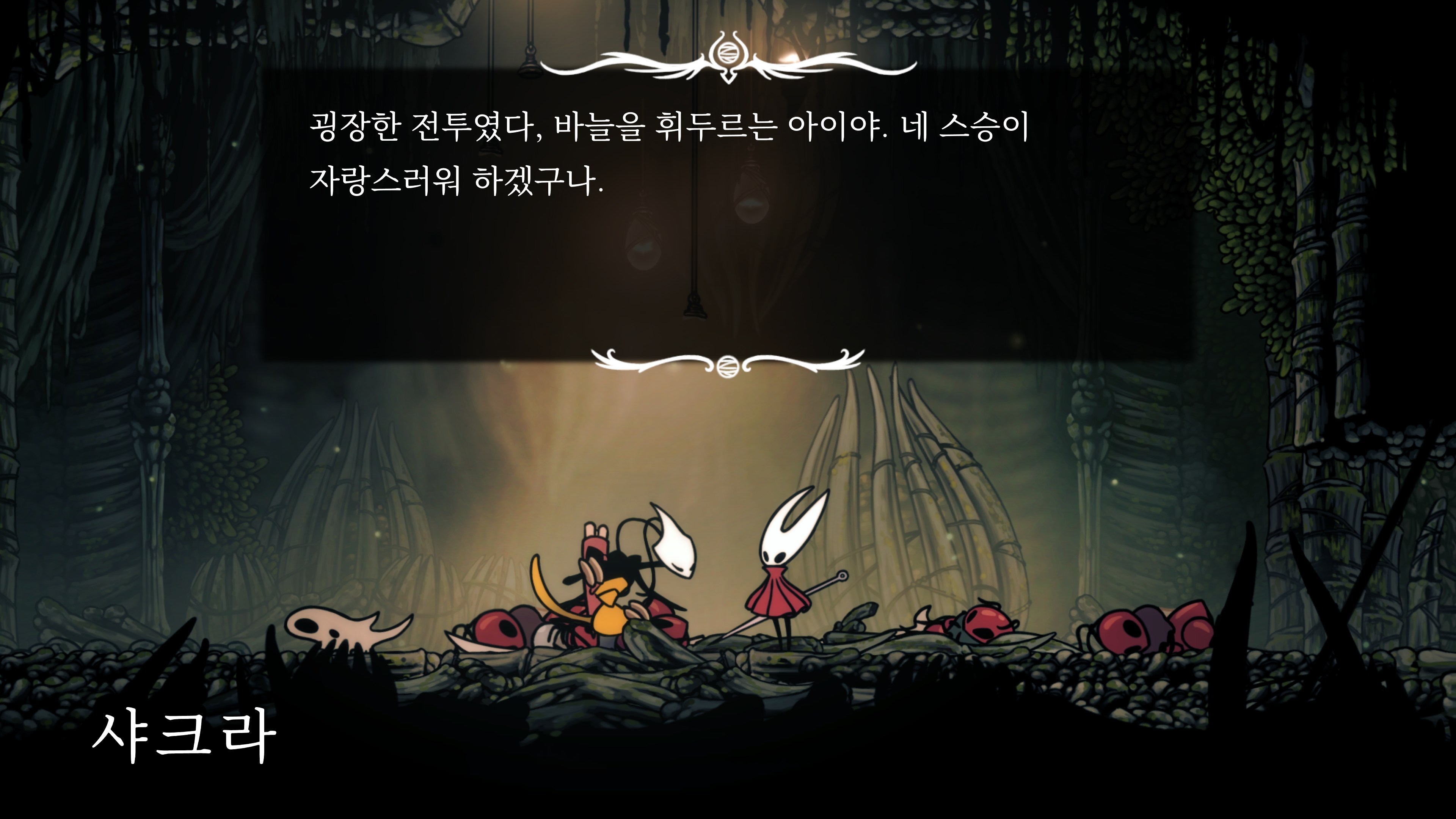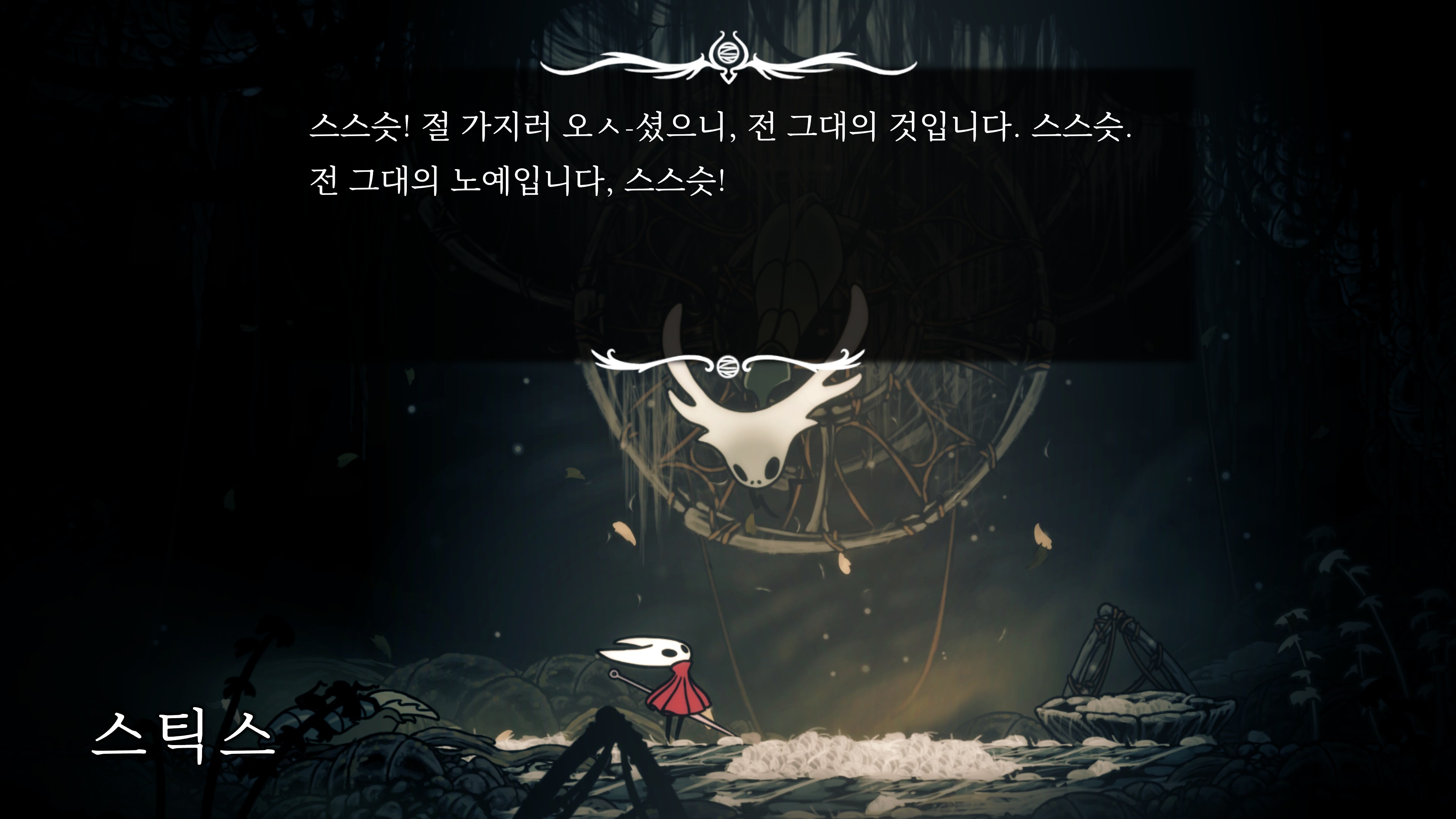 영원의 꽃 힘이 다 되어가는 순간, 할로우 나이트 기사가 나타나서 호넷과 레이스를 구출해 줬다.