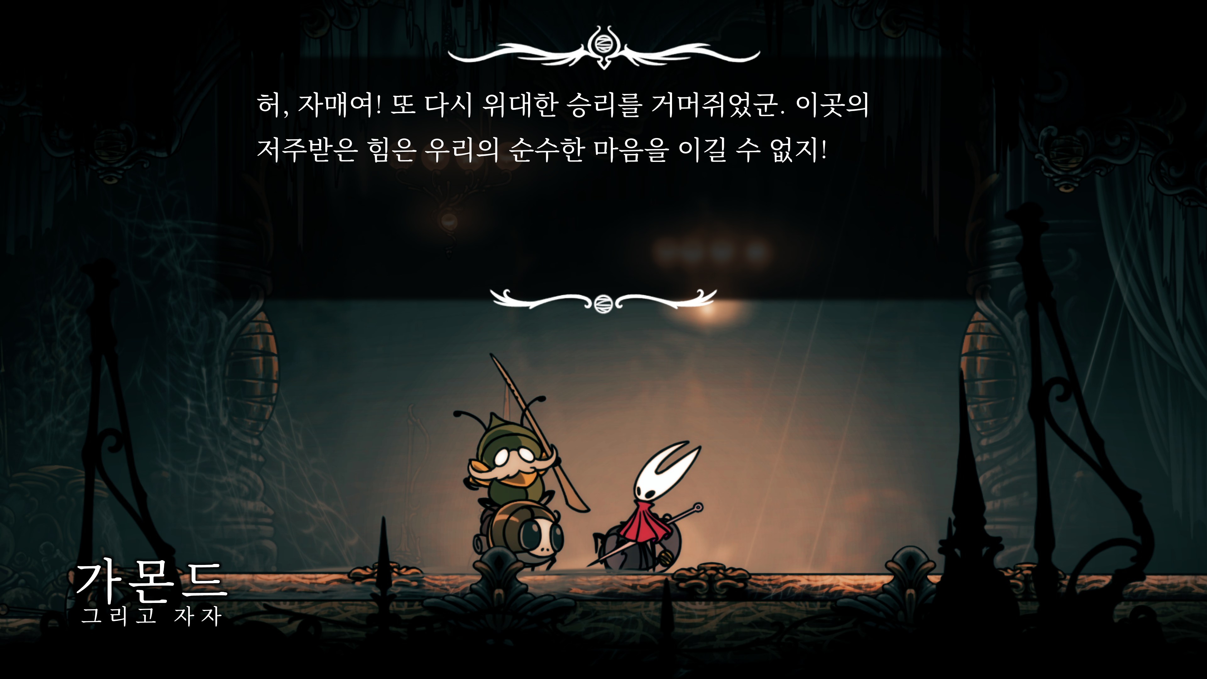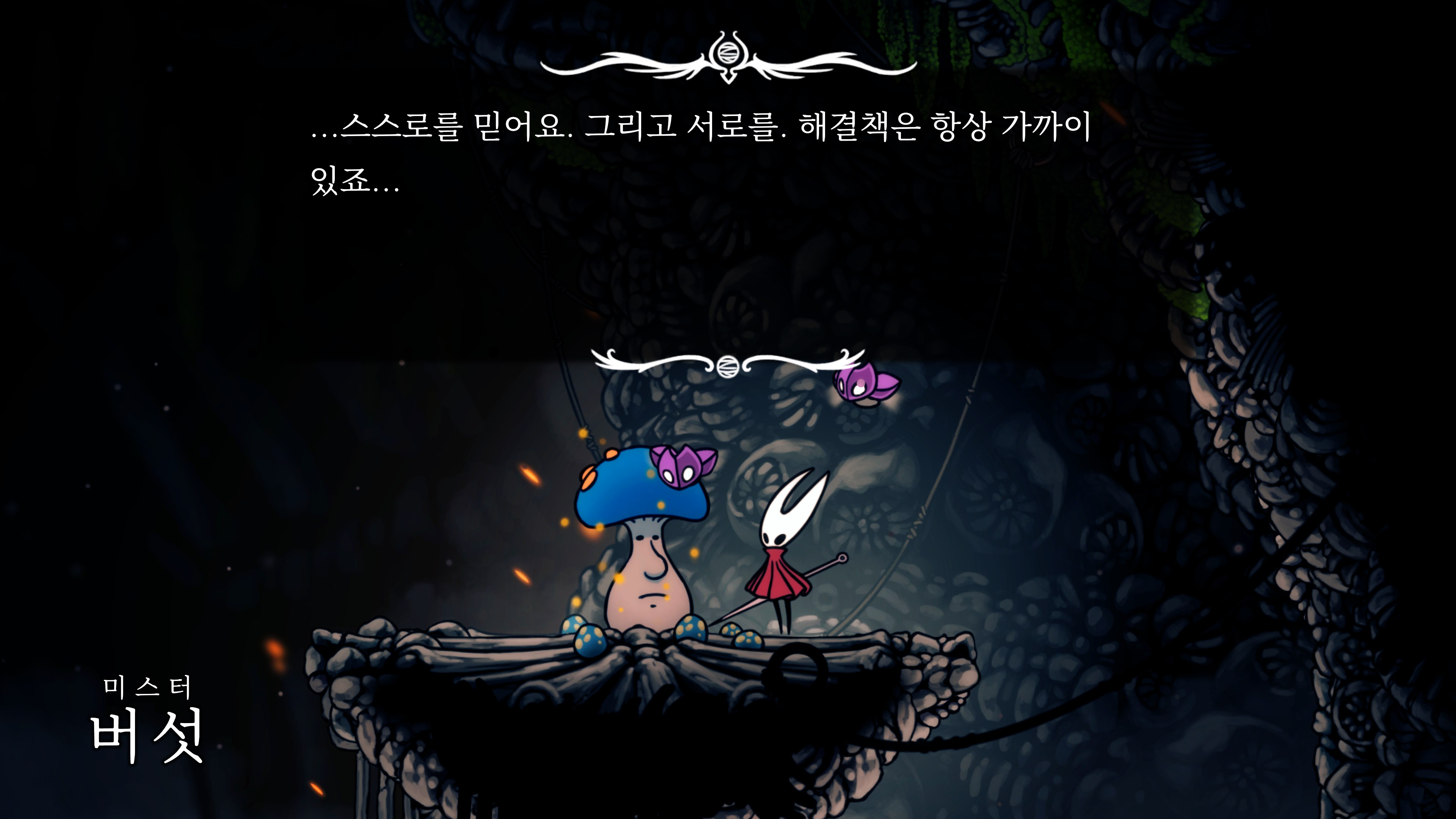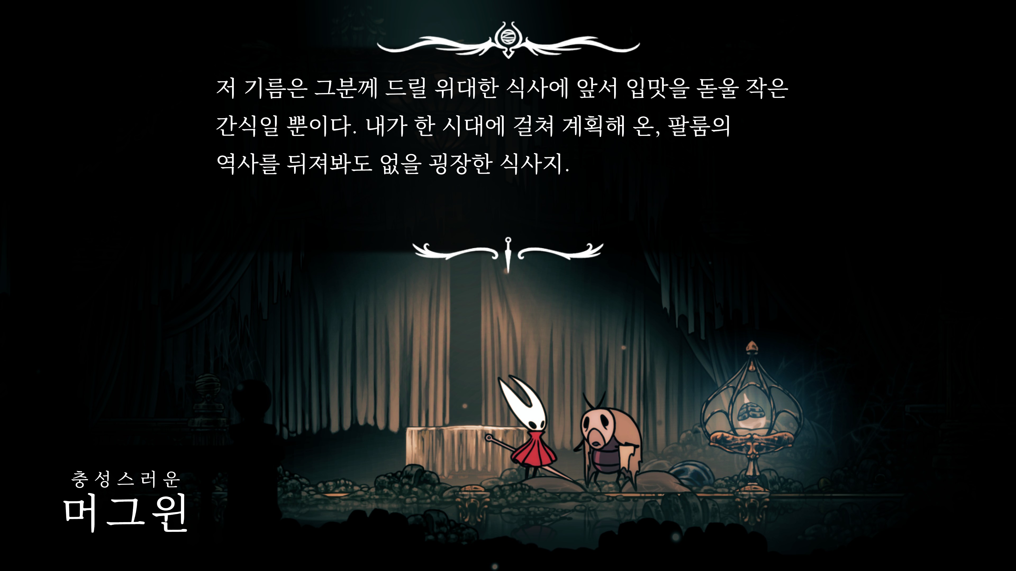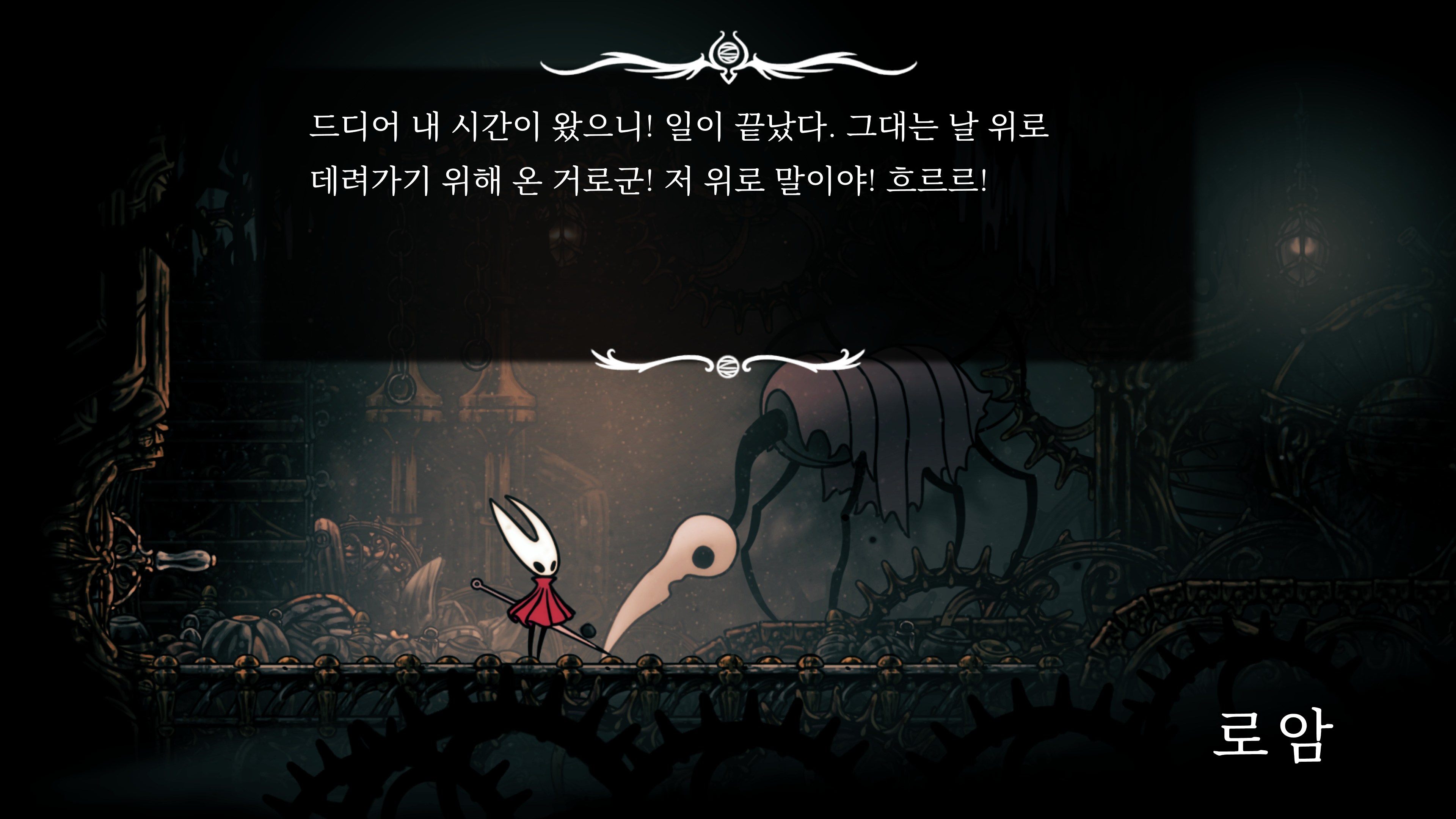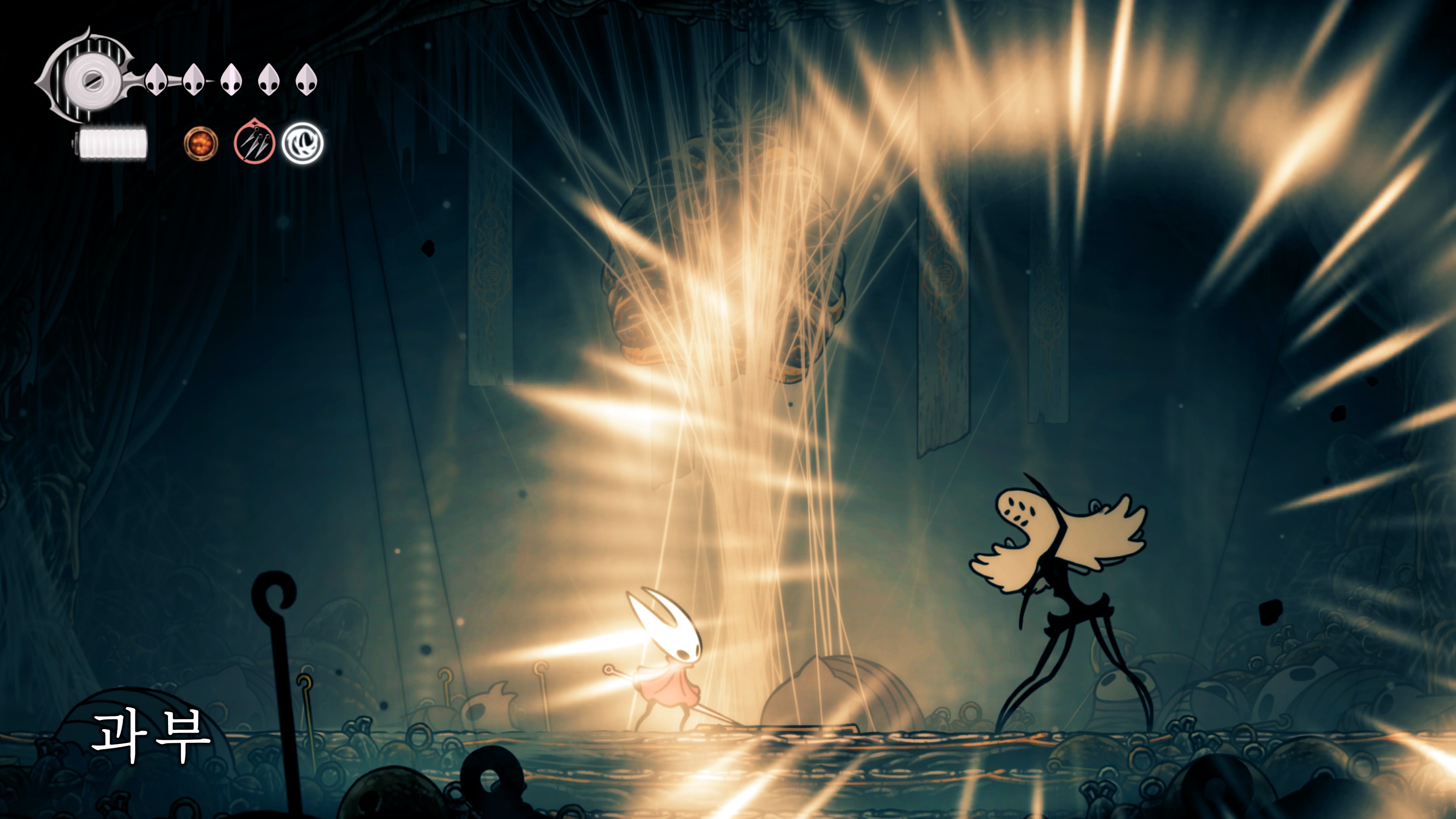 영원의 꽃 힘이 다 되어가는 순간, 할로우 나이트 기사가 나타나서 호넷과 레이스를 구출해 줬다.