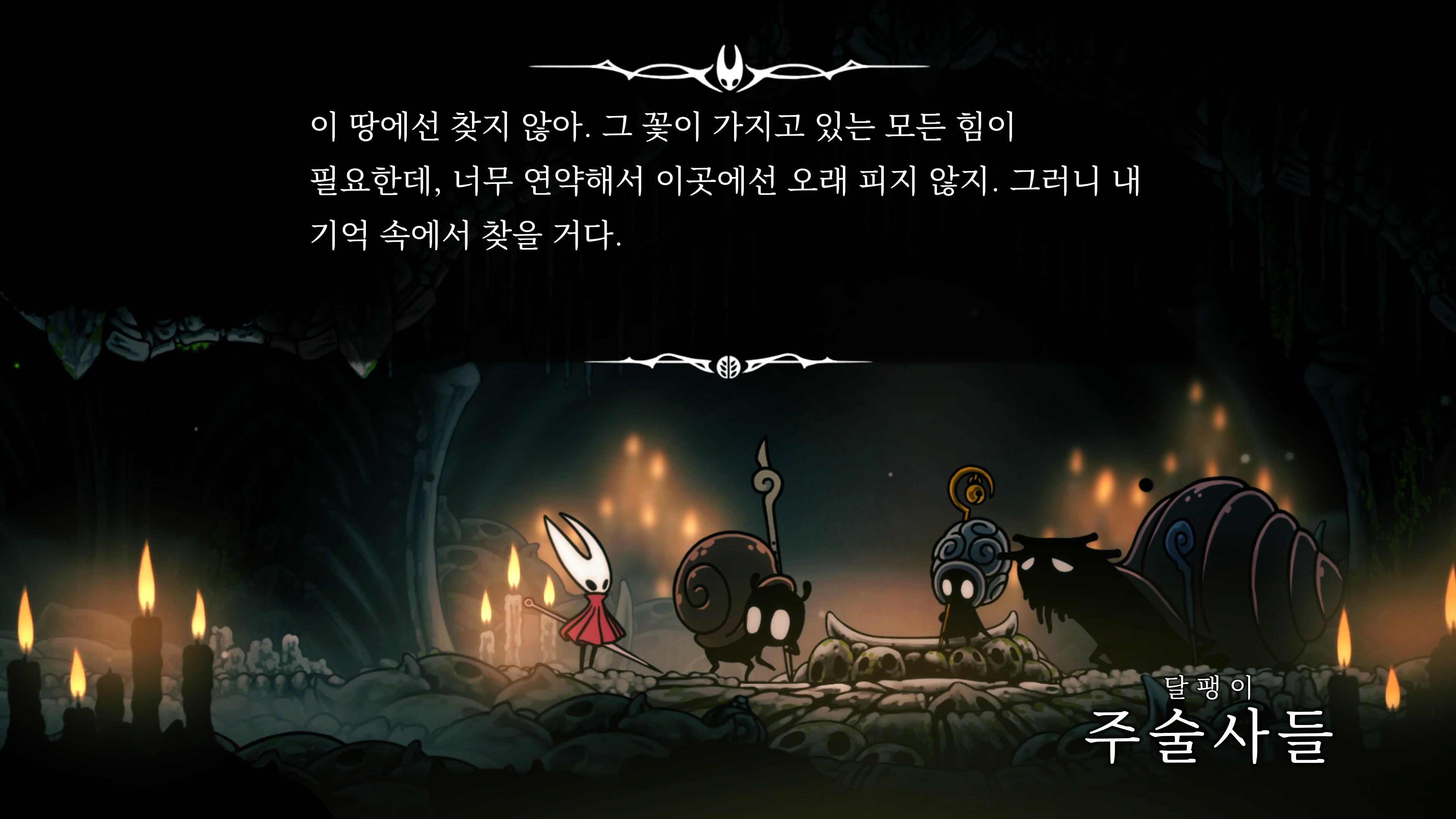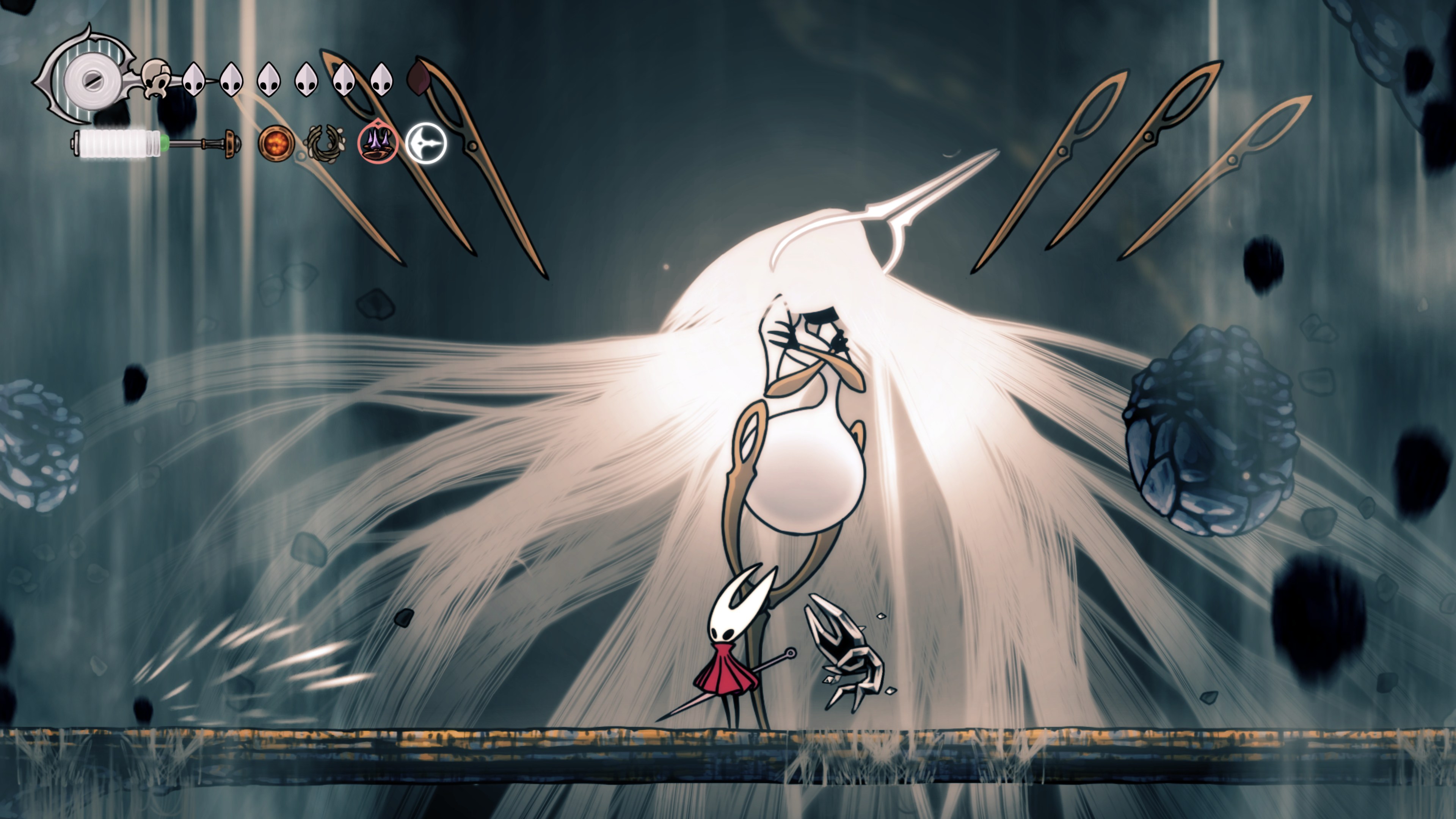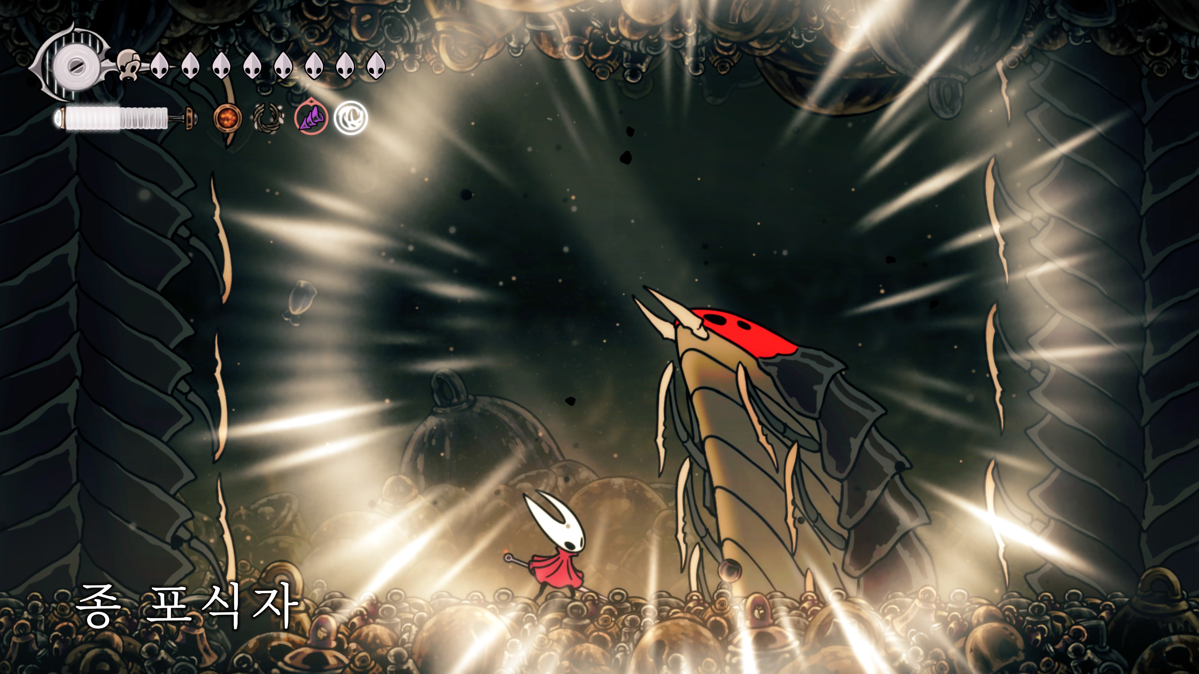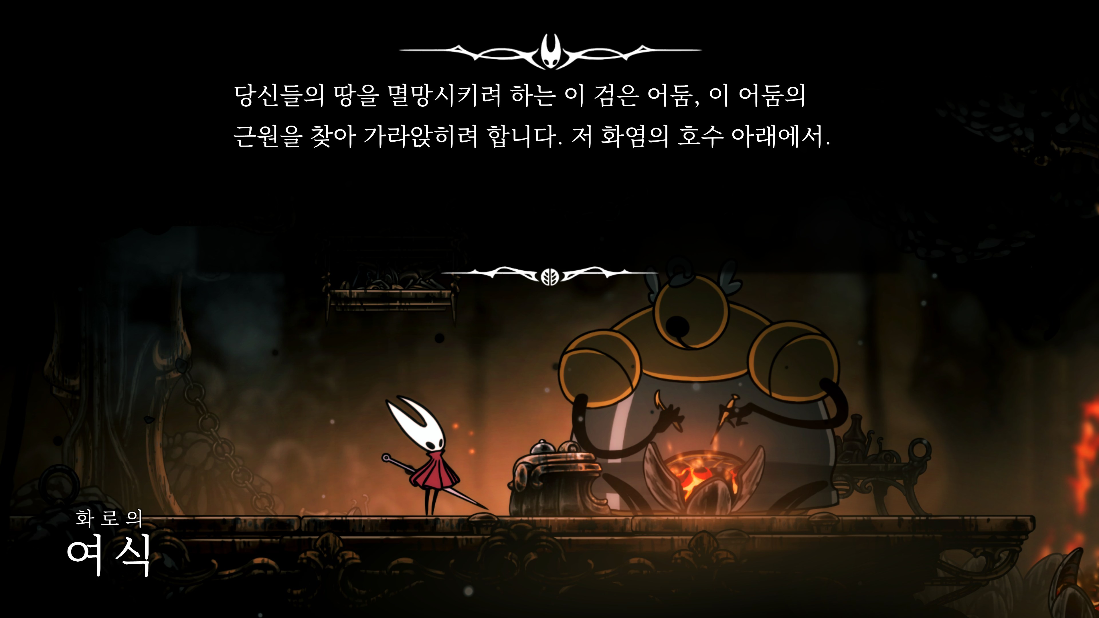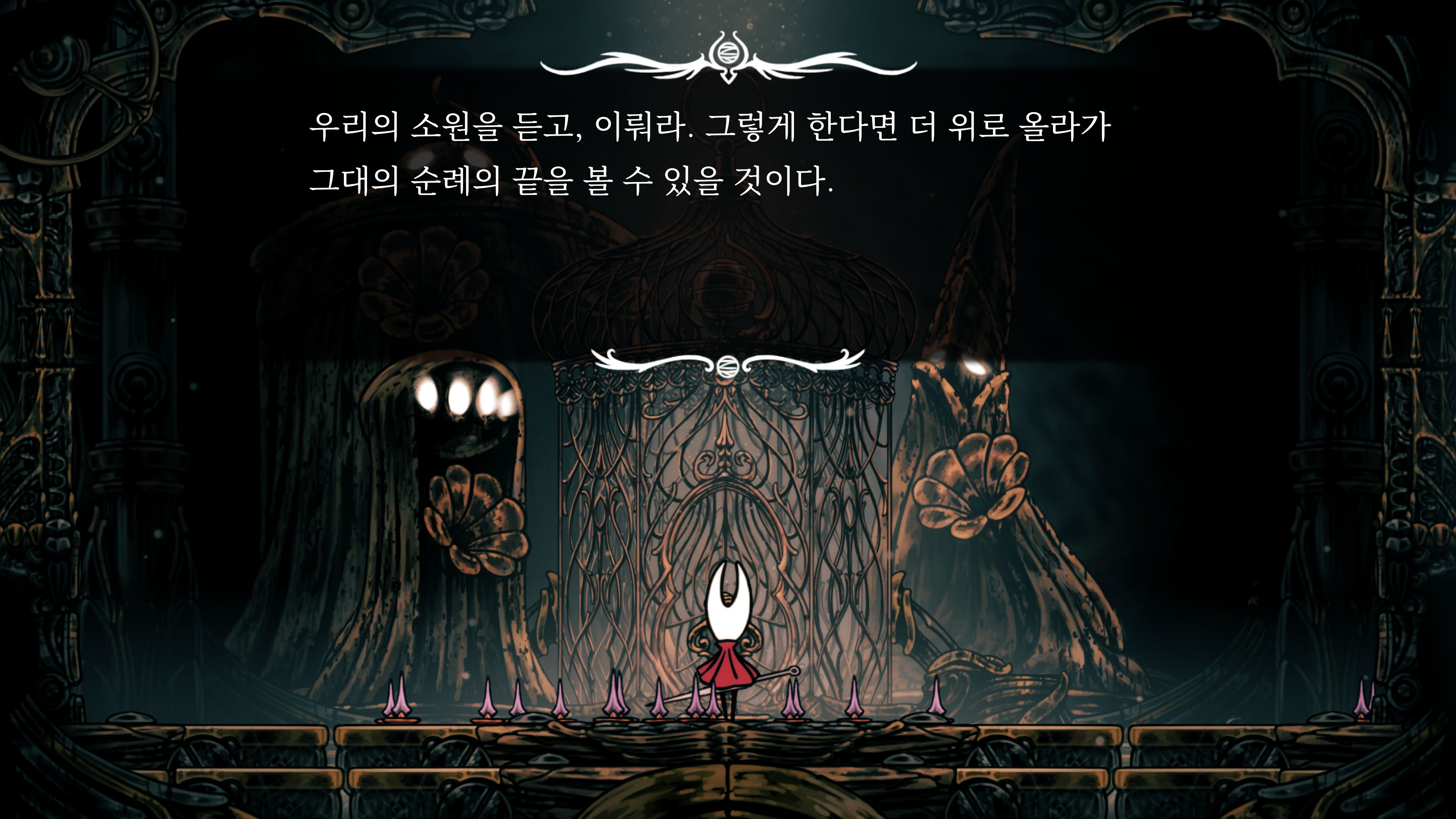 영원의 꽃 힘이 다 되어가는 순간, 할로우 나이트 기사가 나타나서 호넷과 레이스를 구출해 줬다.