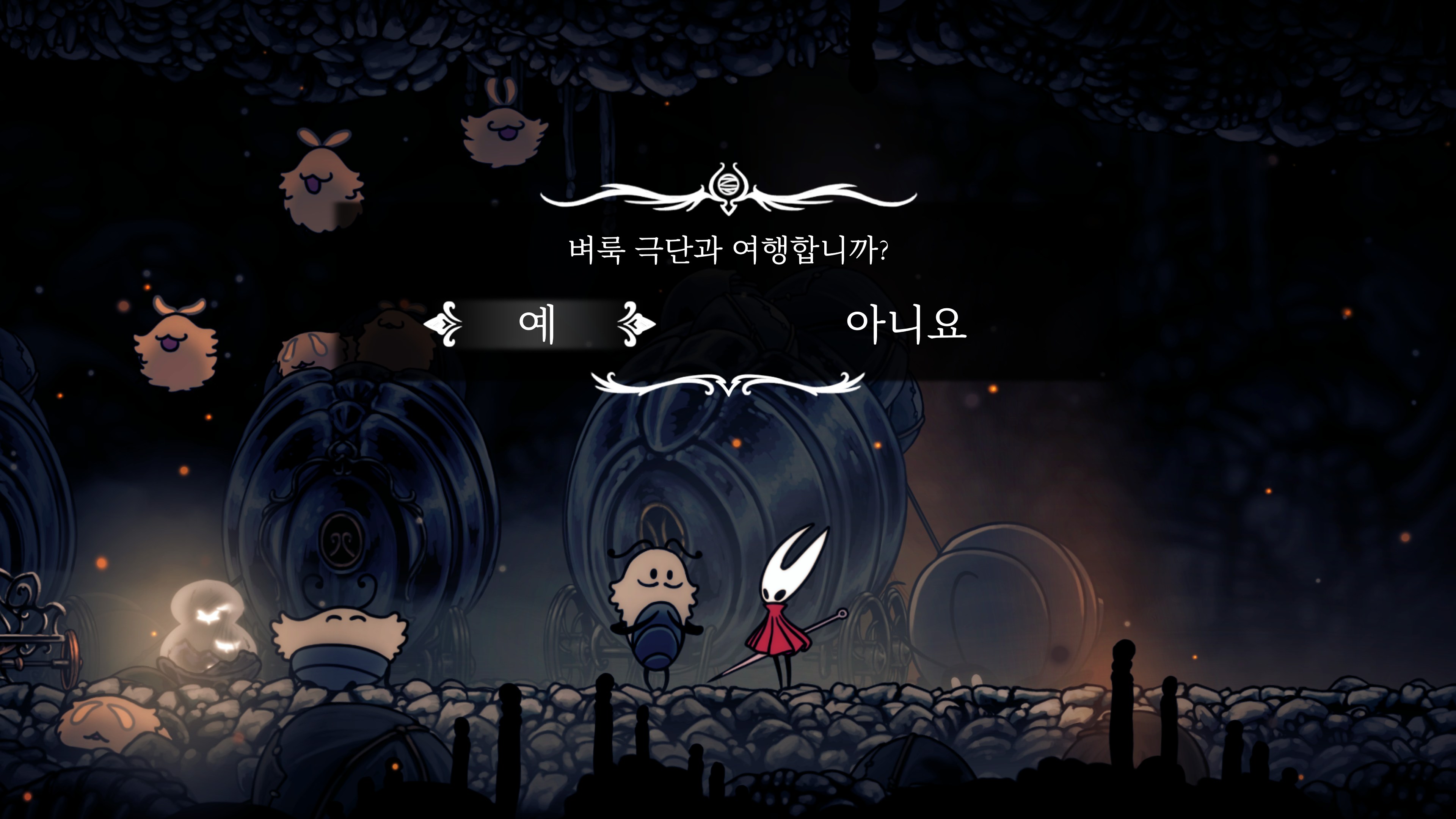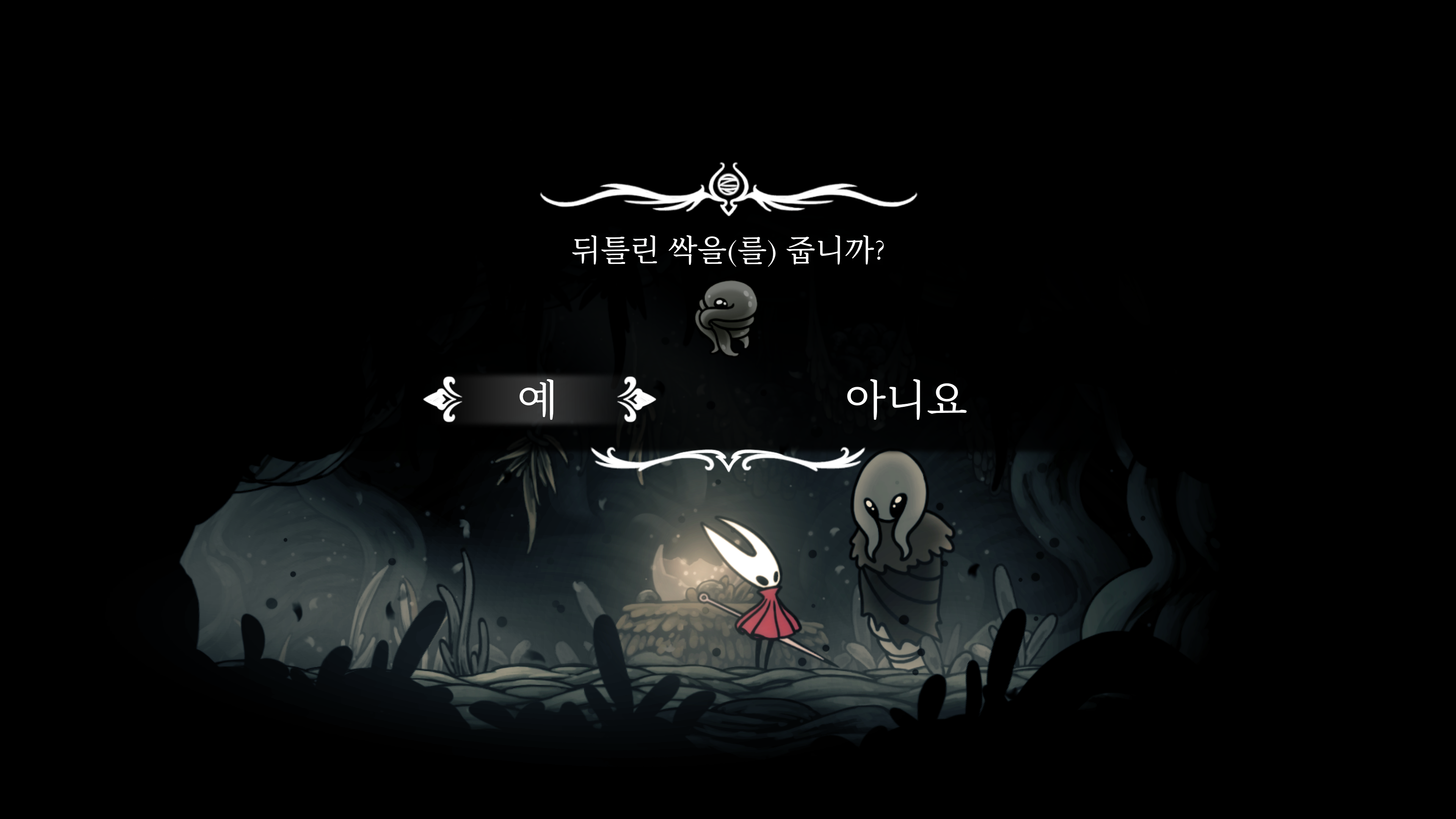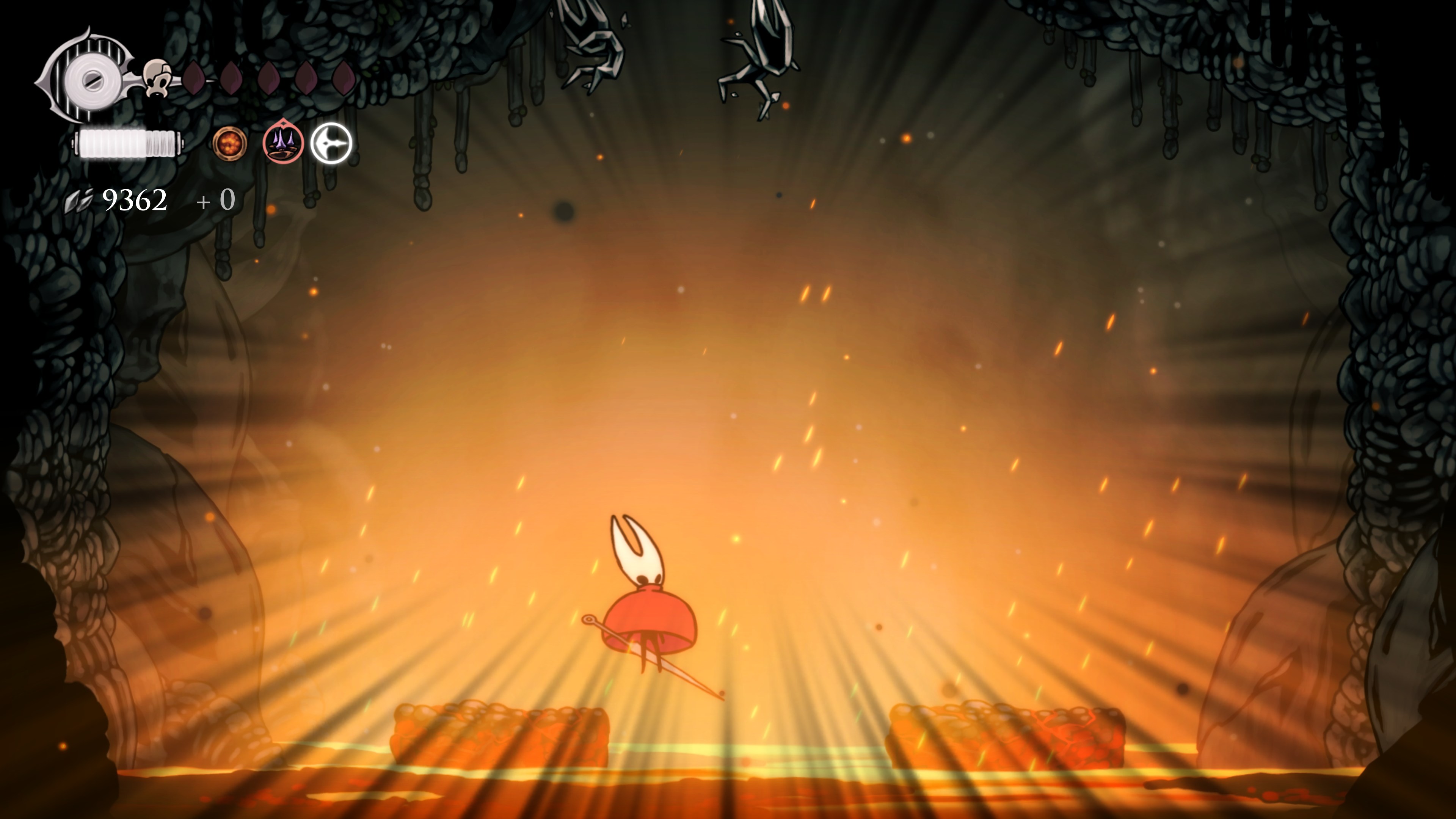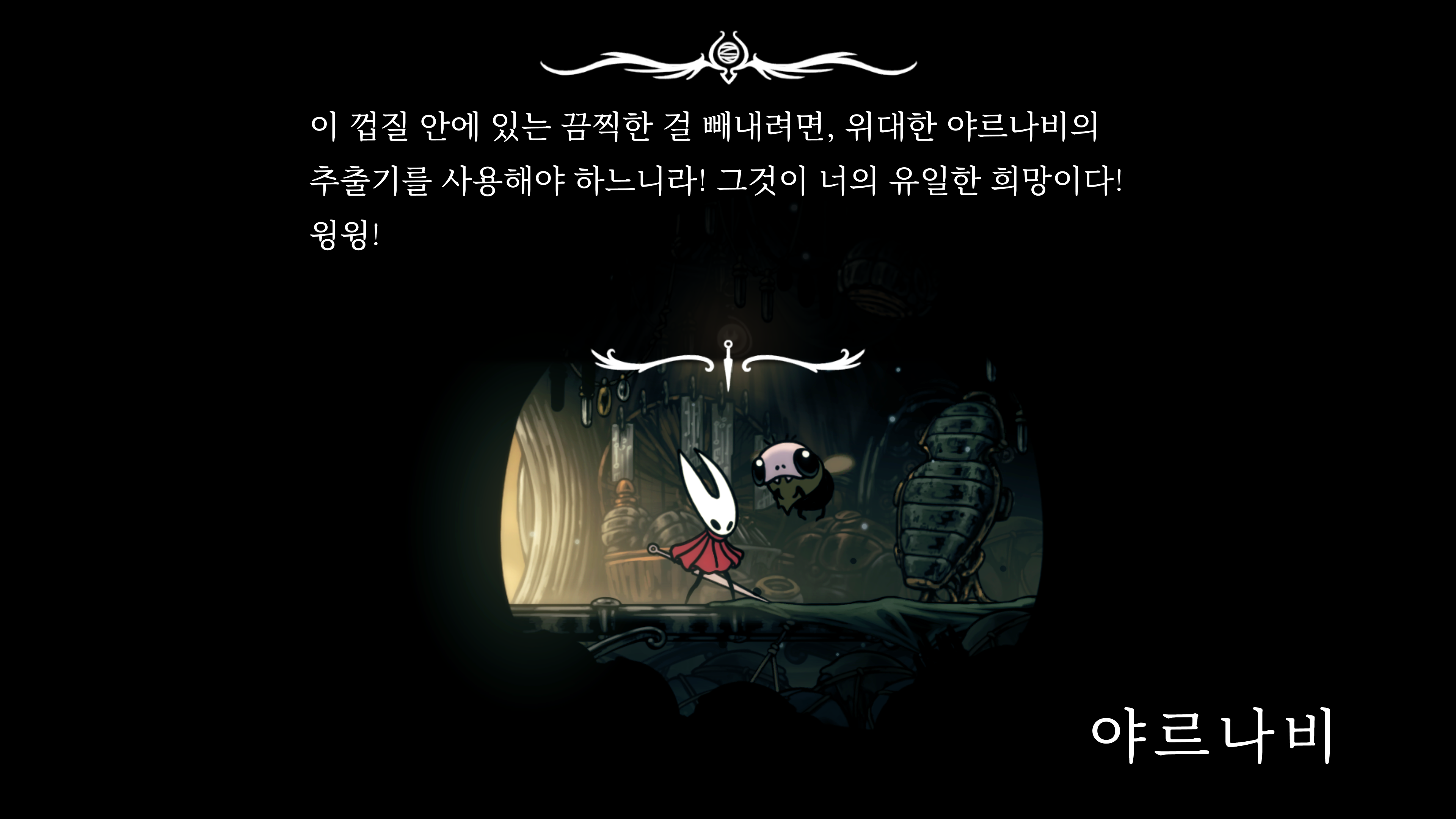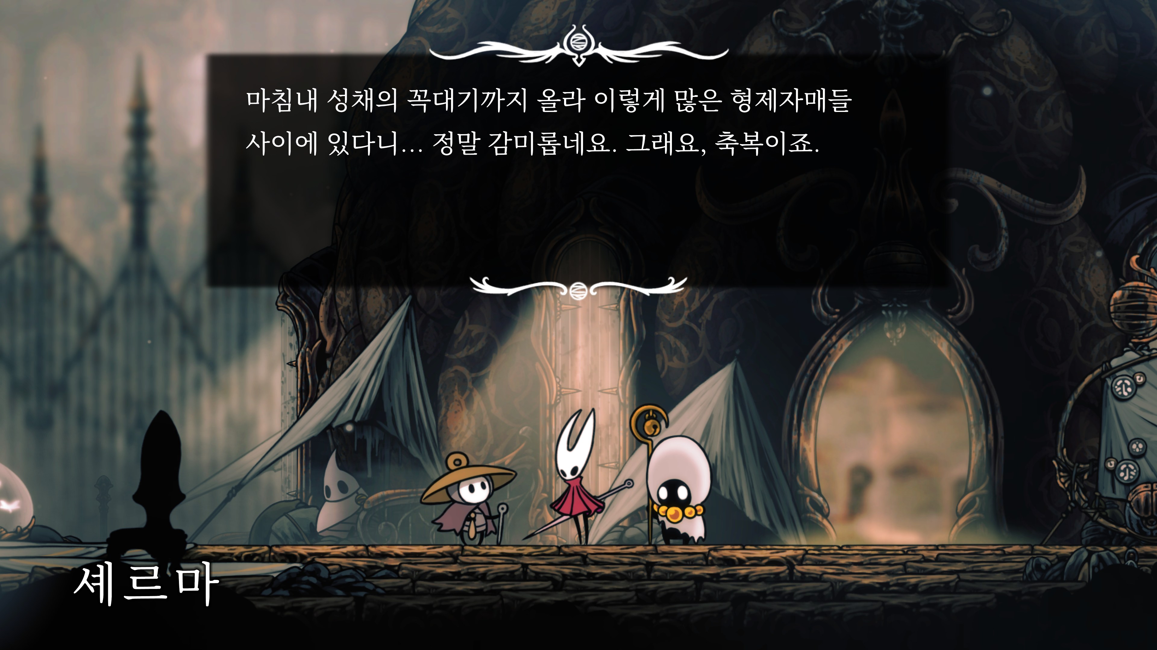 영원의 꽃 힘이 다 되어가는 순간, 할로우 나이트 기사가 나타나서 호넷과 레이스를 구출해 줬다.