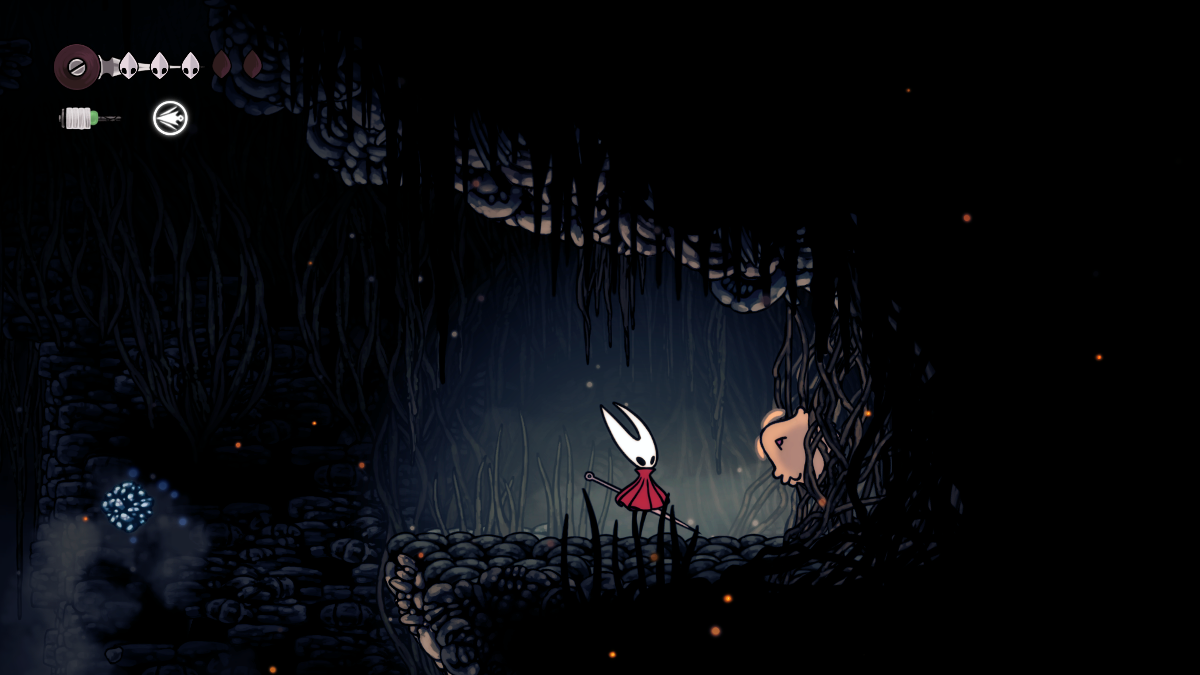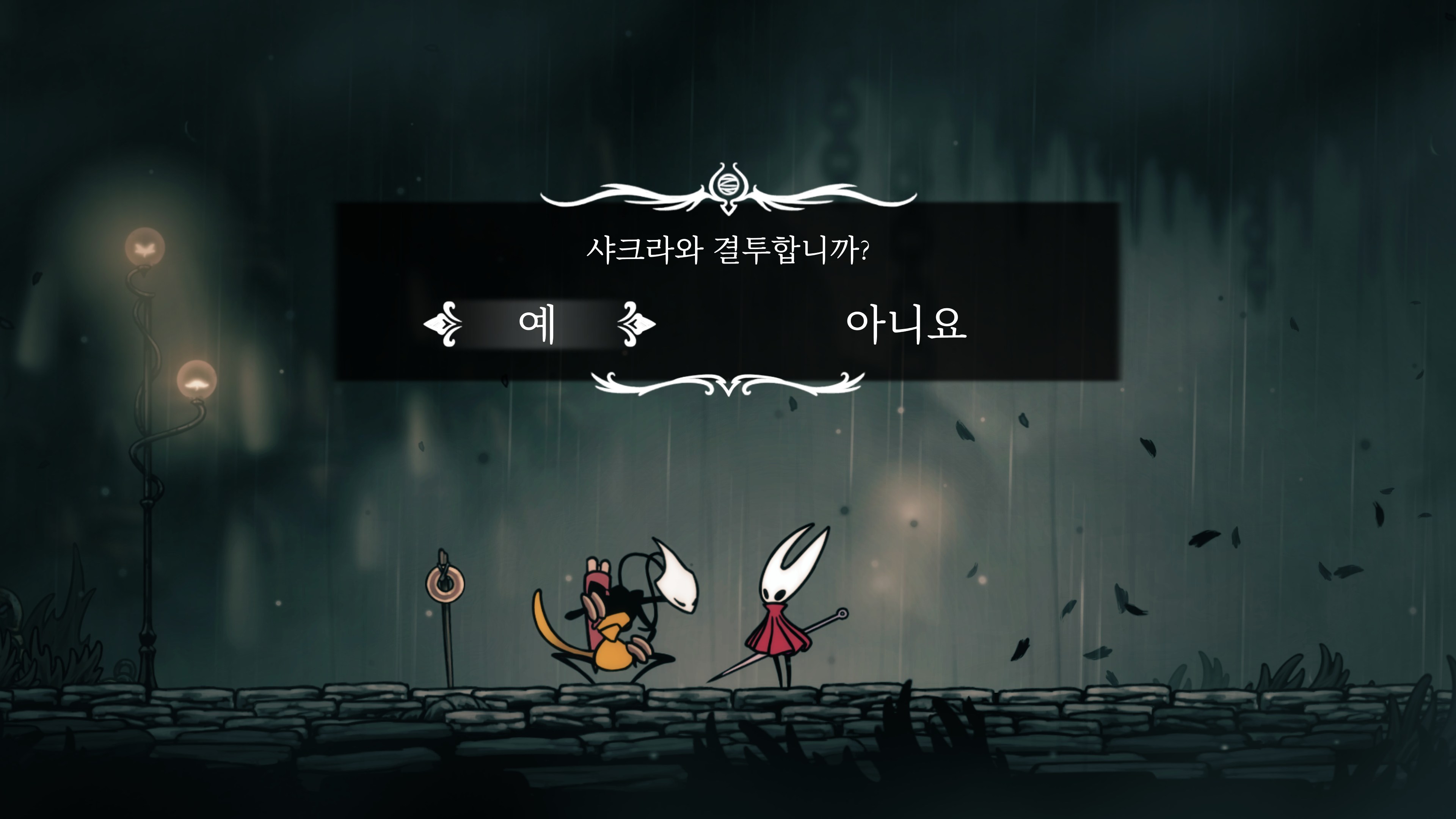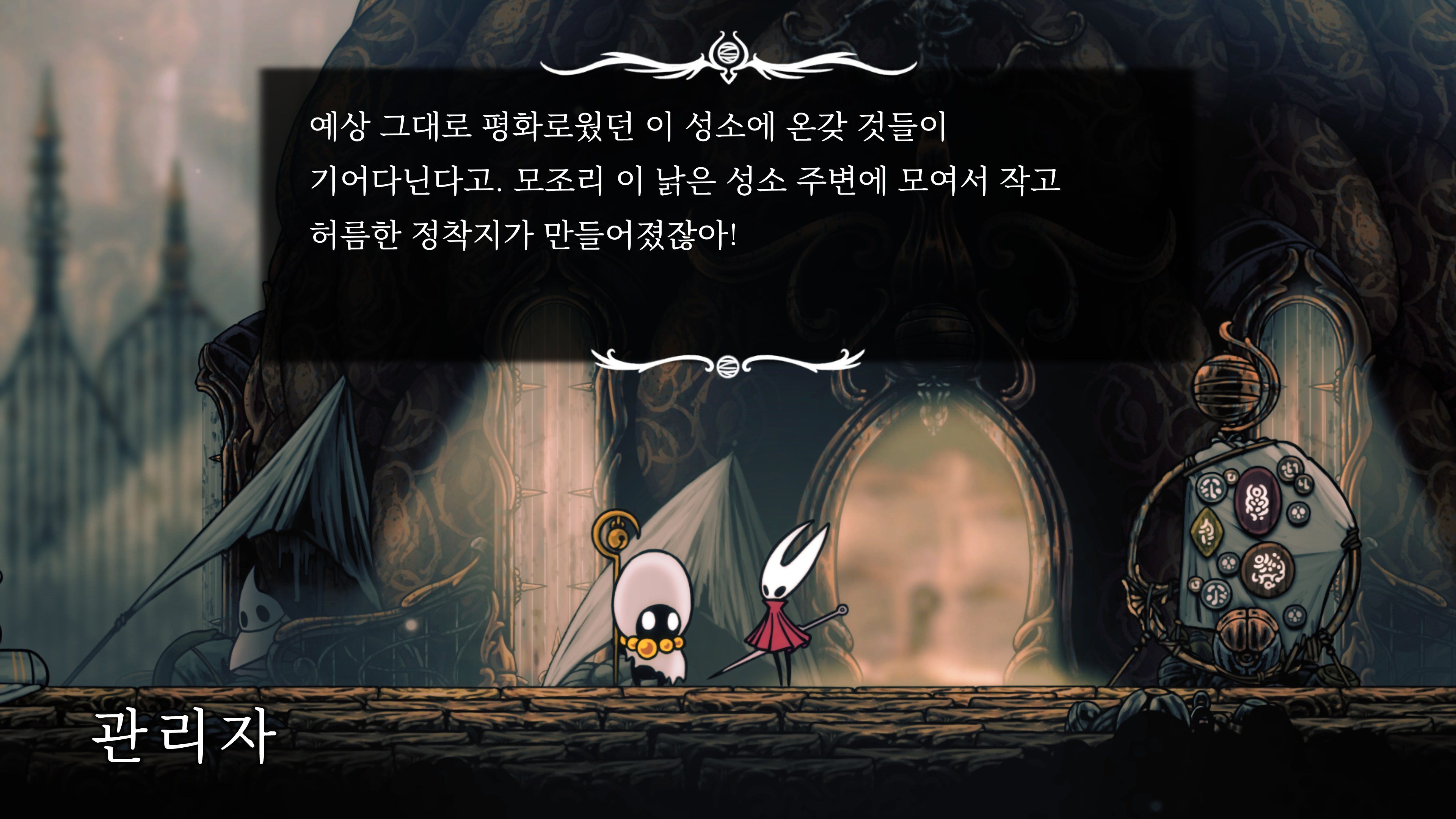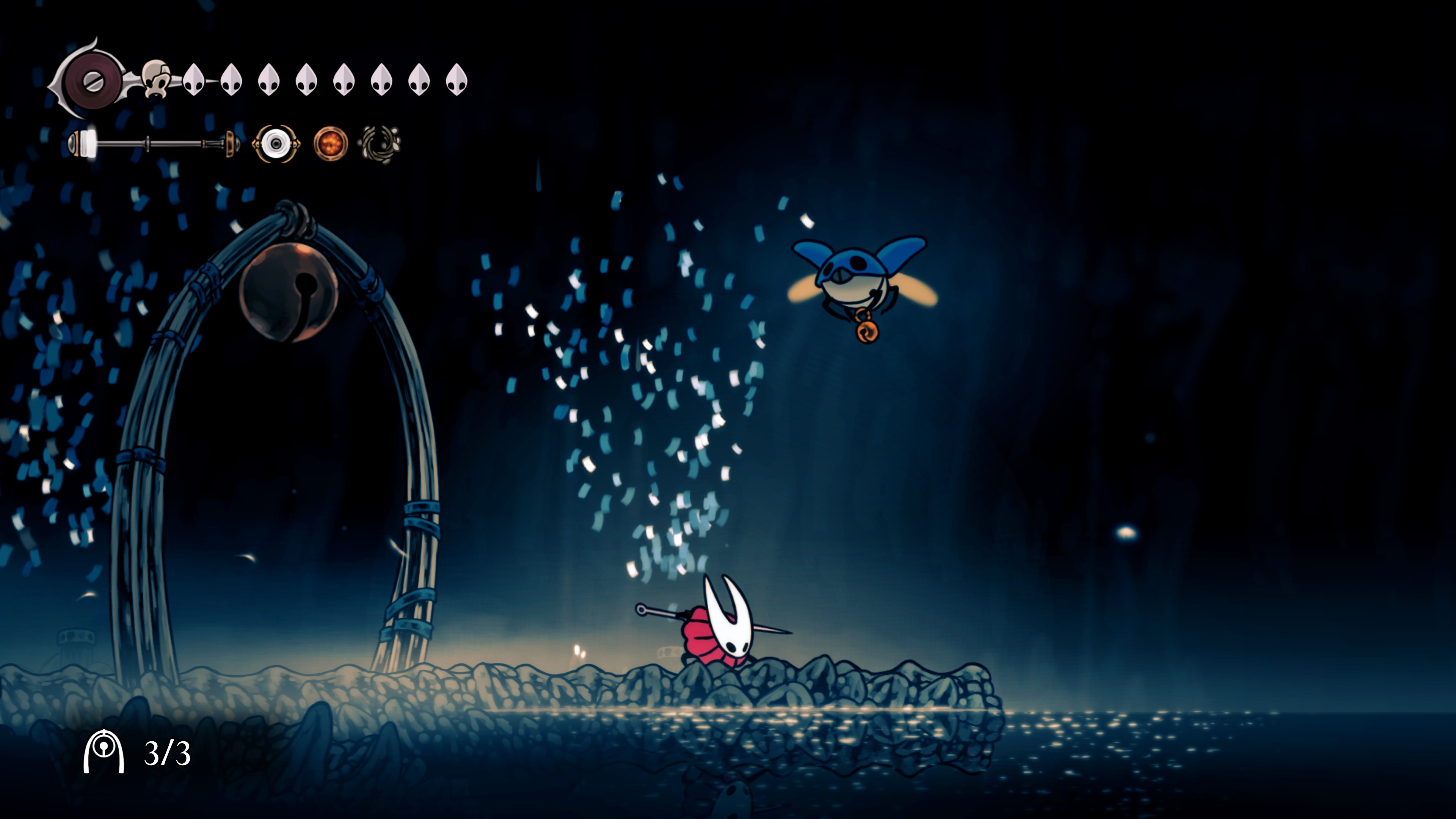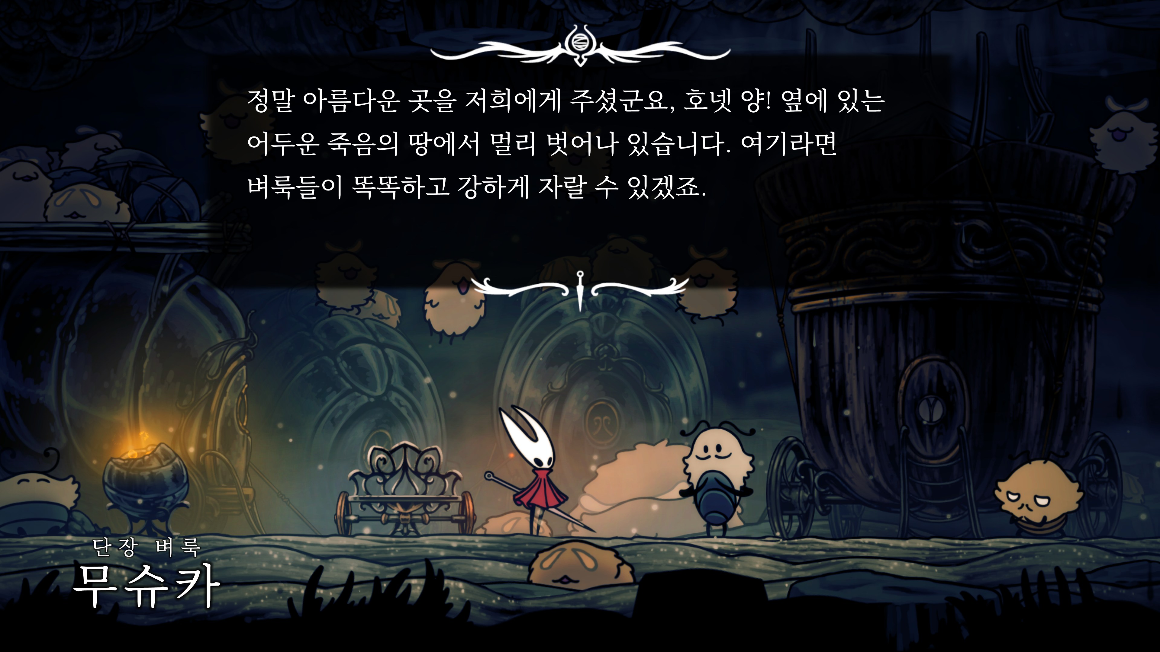 영원의 꽃 힘이 다 되어가는 순간, 할로우 나이트 기사가 나타나서 호넷과 레이스를 구출해 줬다.